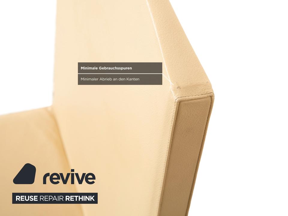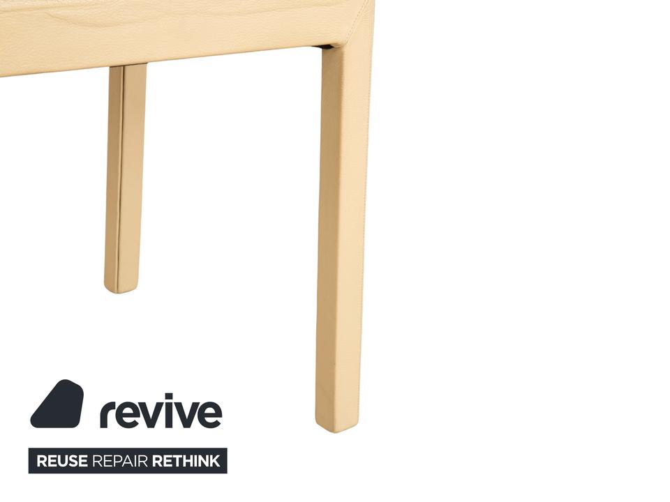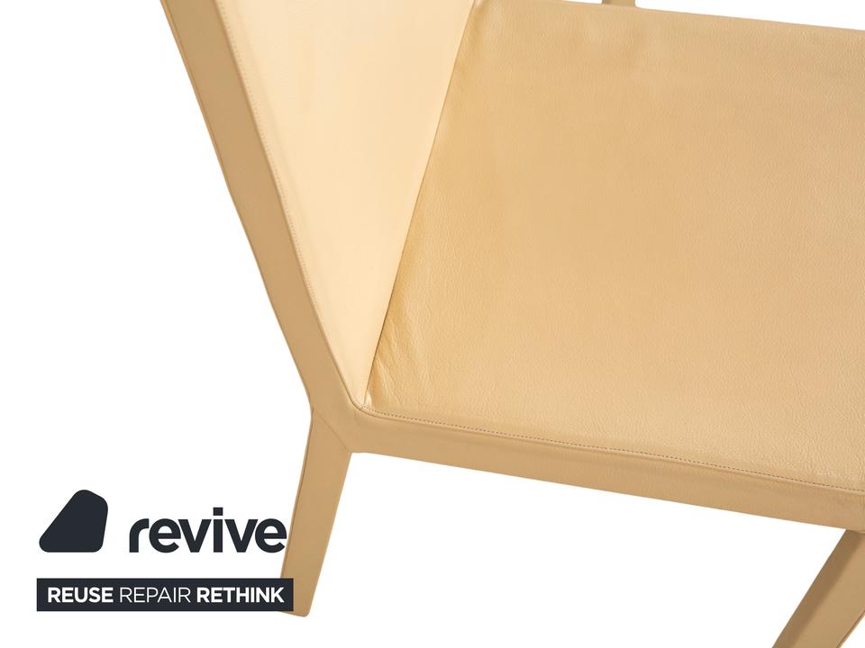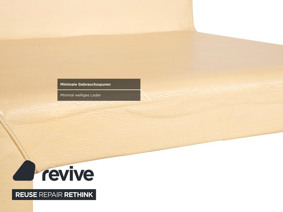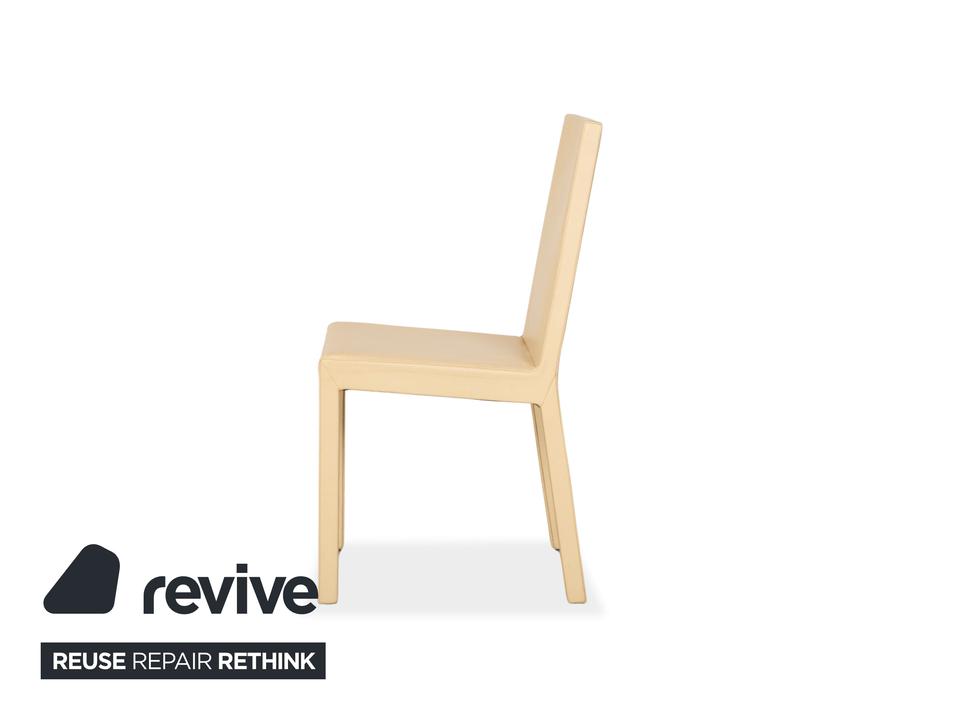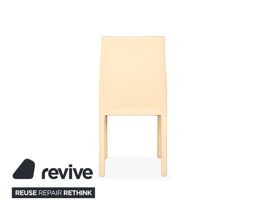 Die Garnitur besteht aus vier Stühlen von Cattelan Italia. Der Bezug aus echtem Leder in Creme-Elfenbein verleiht den Stühlen eine elegante Ausstrahlung und macht sie zugleich pflegeleicht und langlebig. Sitzfläche, Rückenlehne und Beine sind komplett mit Leder bezogen, was die klare Formensprache unterstreicht.