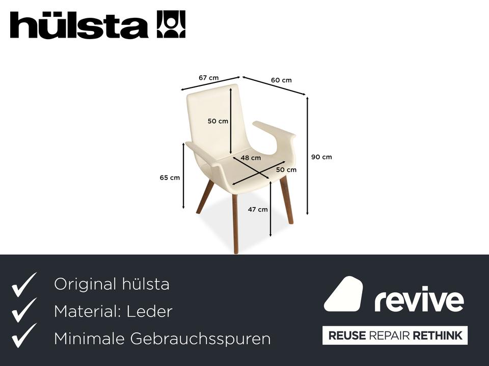Revive GmbH | Gebrauchte Designermöbel • Aufbereitet • Nachhaltig • Sofort Verfügbar Das Stuhl-Set D27 von Hülsta besteht aus insgesamt vier Stühlen, die mit einem cremefarbenen Echtleder bezogen sind und auf braunen Holzbeinen stehen. Verfügbar…