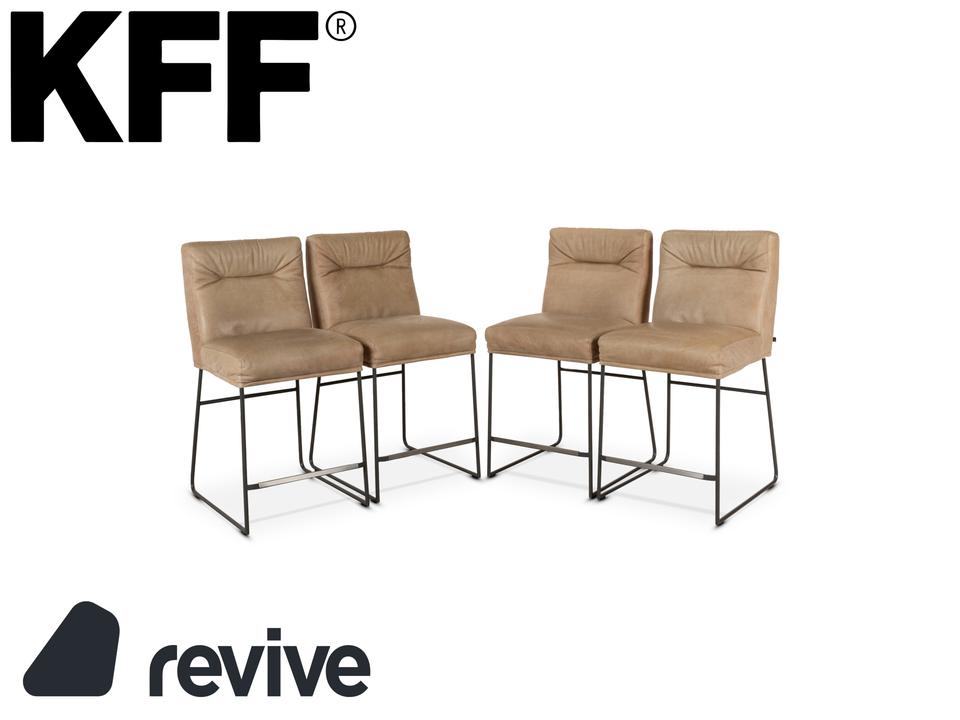 4er Garnitur KFF D-Light Leder Stuhl Beige Thekenstuhl Naturleder