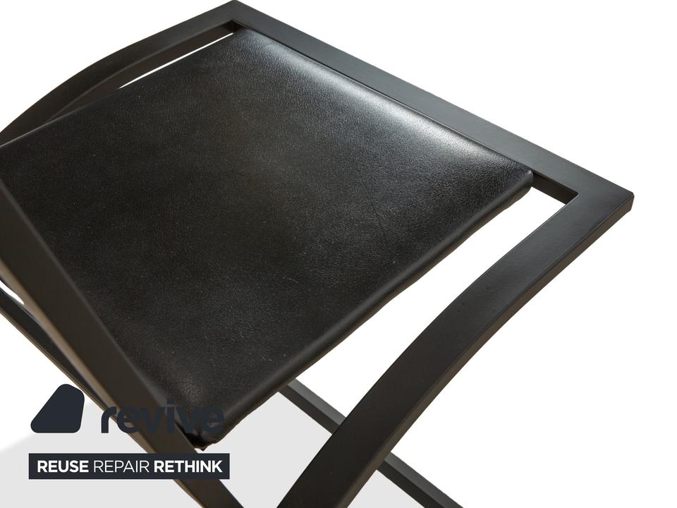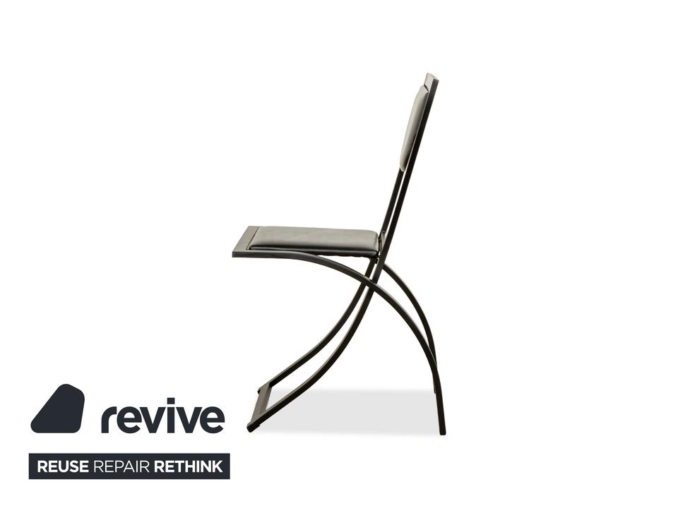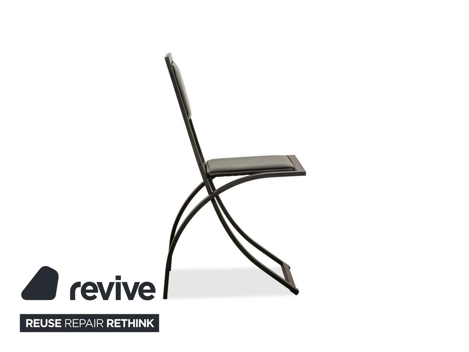 Das Stuhl-Set Sinus von KFF besteht aus insgesamt vier Stühlen mit einem Metallgestell und einer mit schwarzem Echtleder bezogenen Sitzfläche. Der Name ist bei diesem Stuhl Programm, denn er zeichnet sich durch sein kurviges Design aus.
