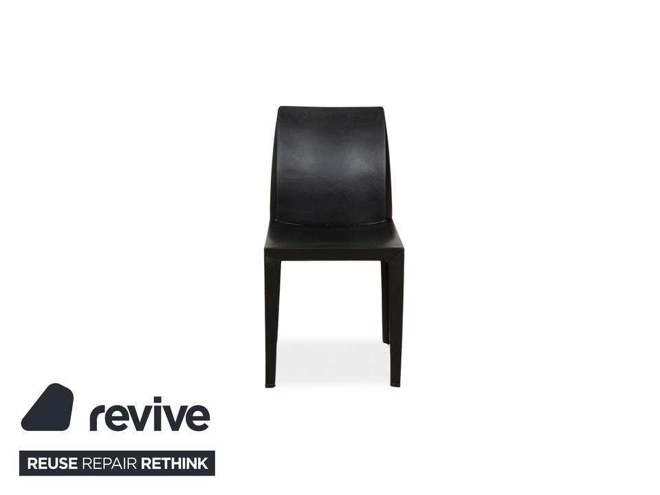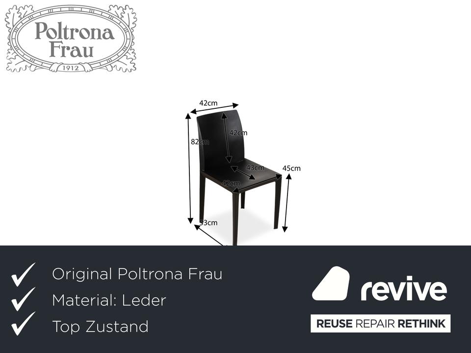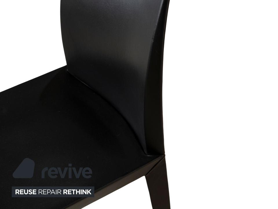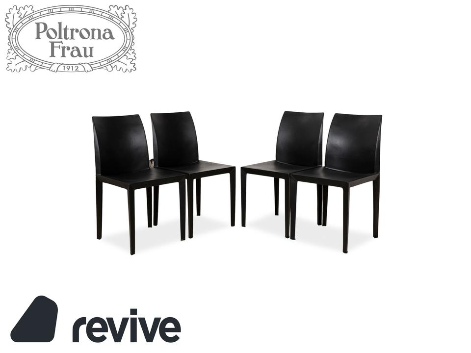 Die Stuhl-Garnitur von Poltrona Frau besteht aus vier Stühlen, welche mit schwarzem Echtleder vollummantelt sind. Die besondere Fertigung und schlichte Form zeichnet dieses Set aus.