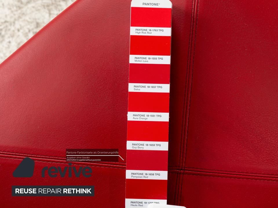 Die Stuhl Garnitur Arcadia von B&B Italia ist mit einem roten Echtleder bezogen und steht auf Holzfüßen. Sie zeichnet sich durch das moderne Design und die schlichte, zeitlose Design aus.