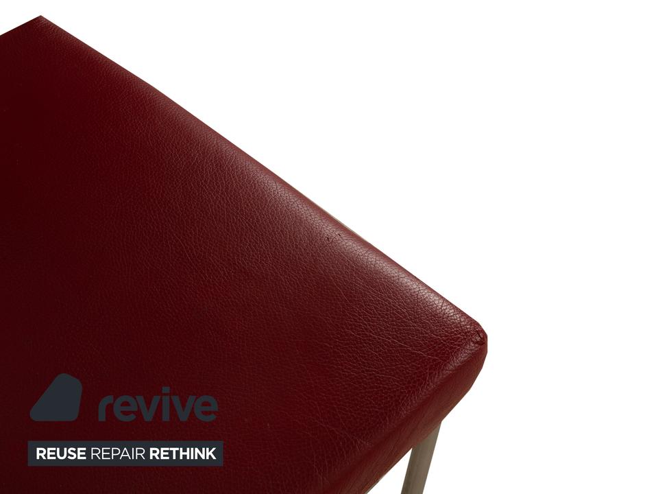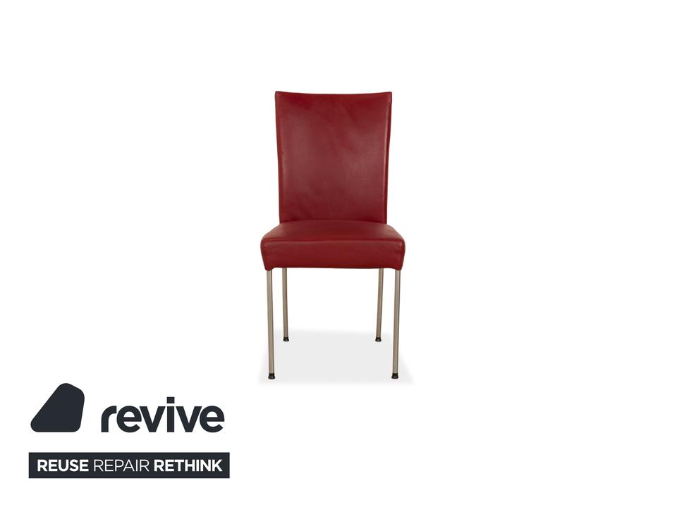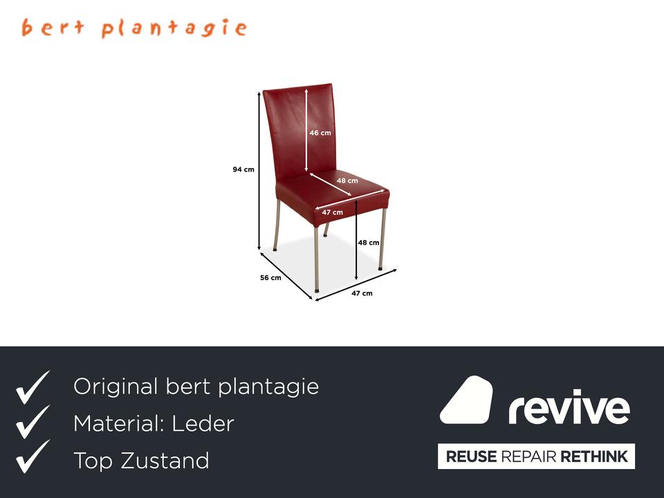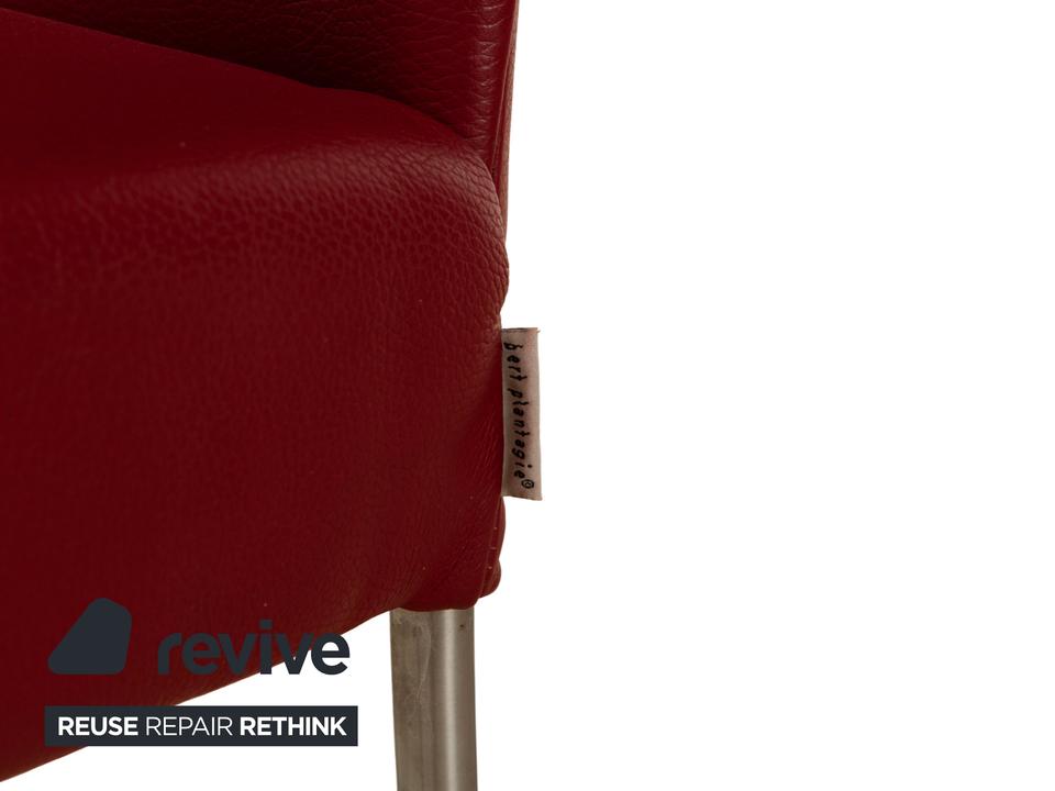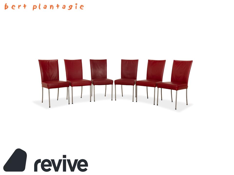 Die Stuhl Garnitur von bert plantagie ist mit einem intensiv-roten Echtleder bezogen und steht auf schmalen Beinen aus Metall. Das minimalistische, schlichte Design zeichnet sie aus.
