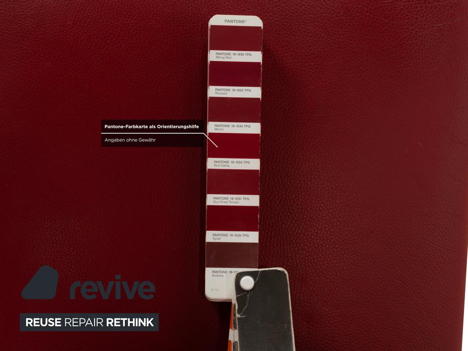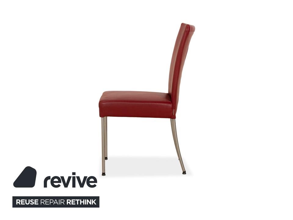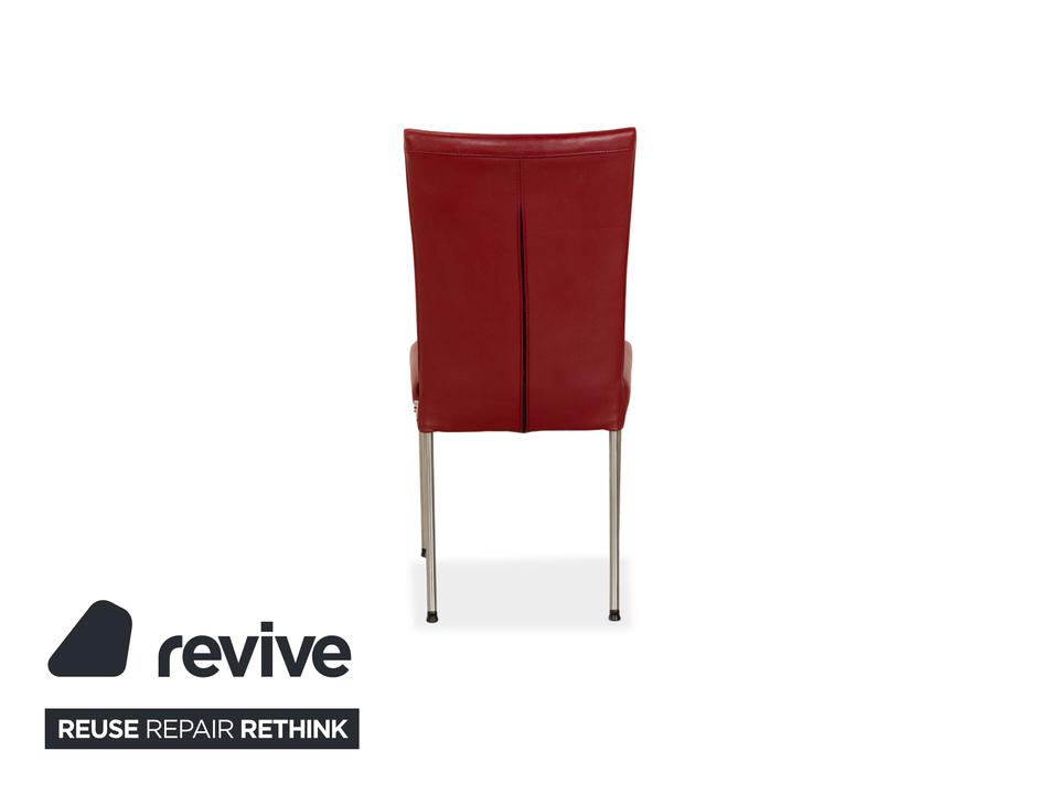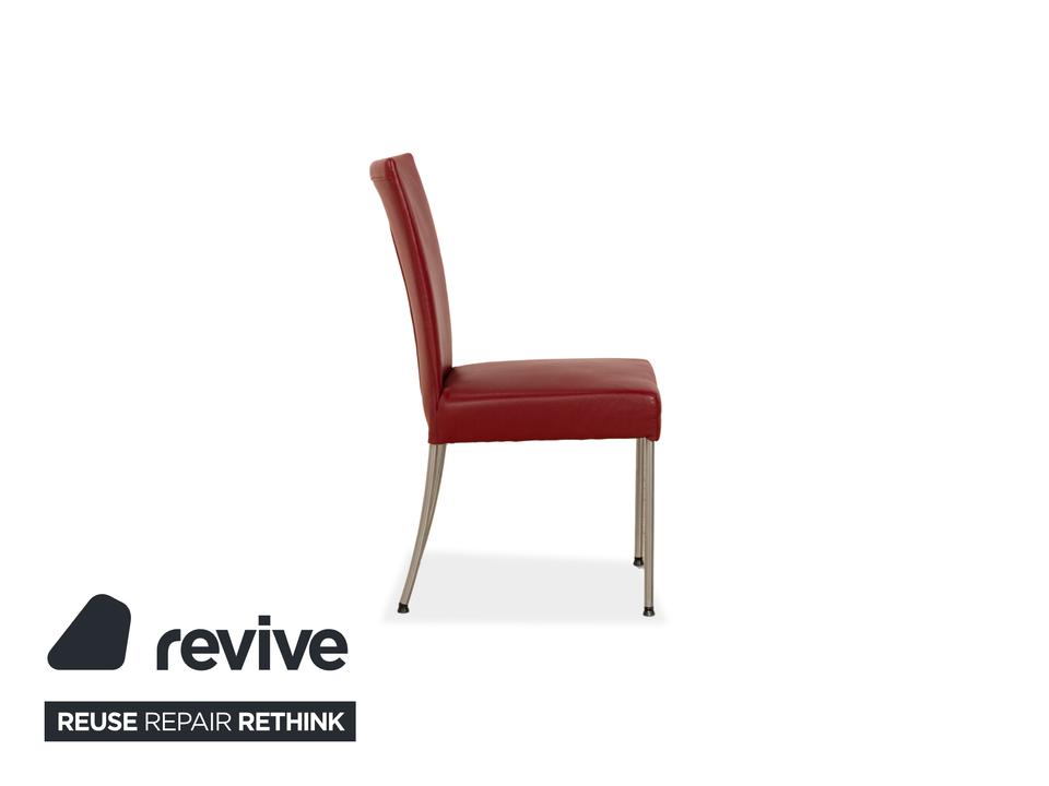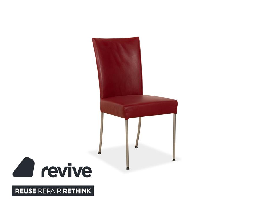 Die Stuhl Garnitur von bert plantagie ist mit einem intensiv-roten Echtleder bezogen und steht auf schmalen Beinen aus Metall. Das minimalistische, schlichte Design zeichnet sie aus.