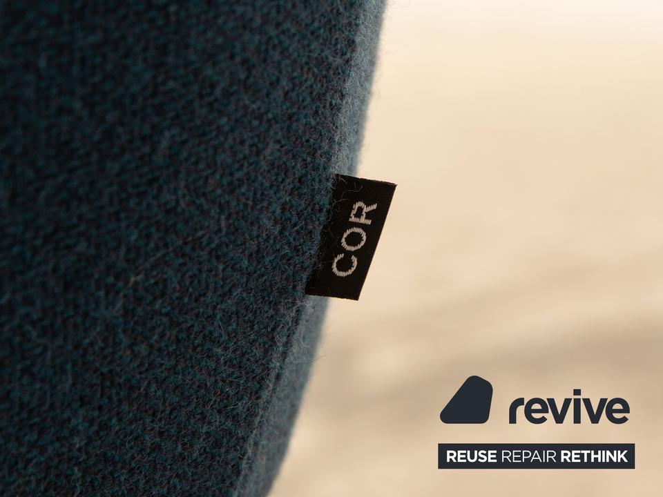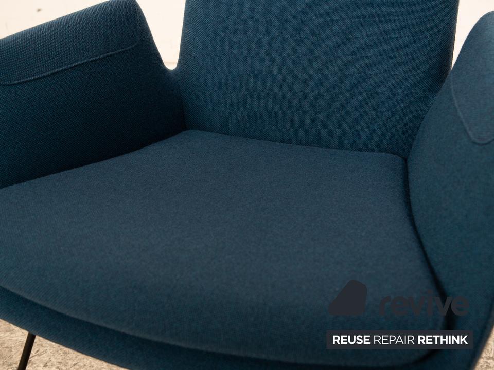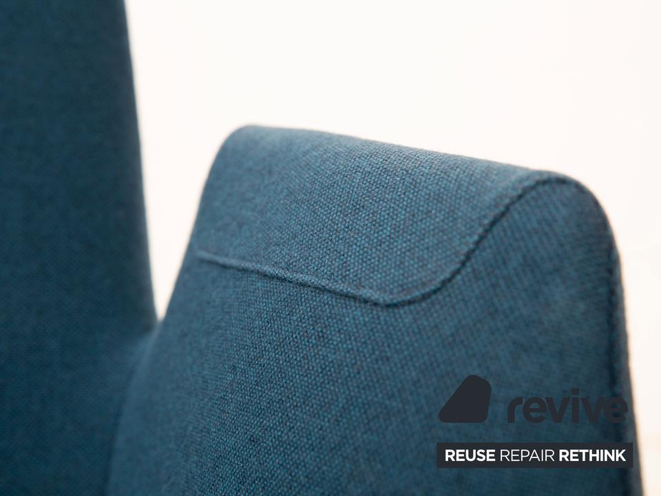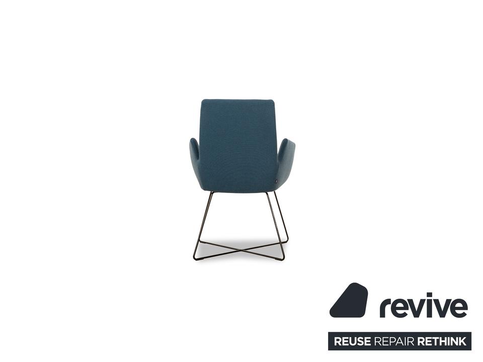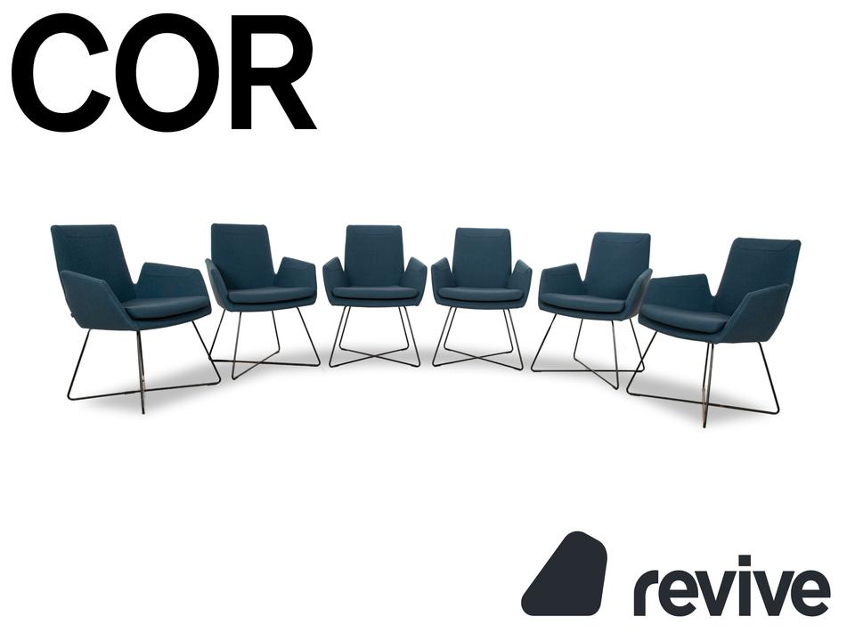 Die Stuhl Ganitur Cordia von Cor ist mit einem blauen Stoff bezogen und steht auf einem schmalen Metallgestell. Sie zeichnet sich durch die moderne Optik und das stilvolle, elegante Design aus.