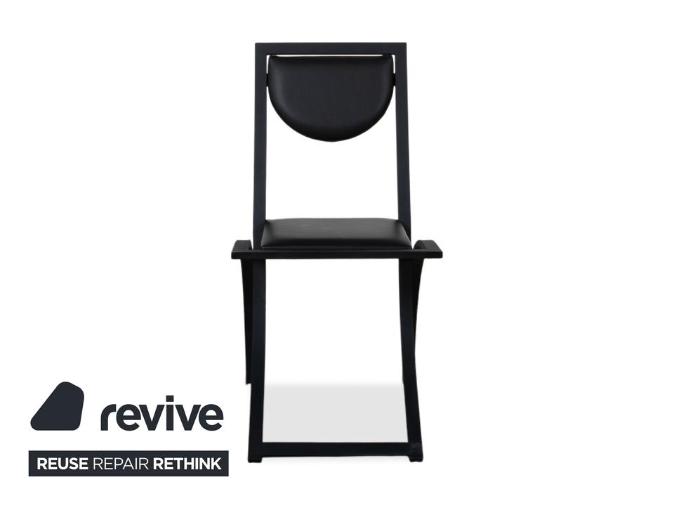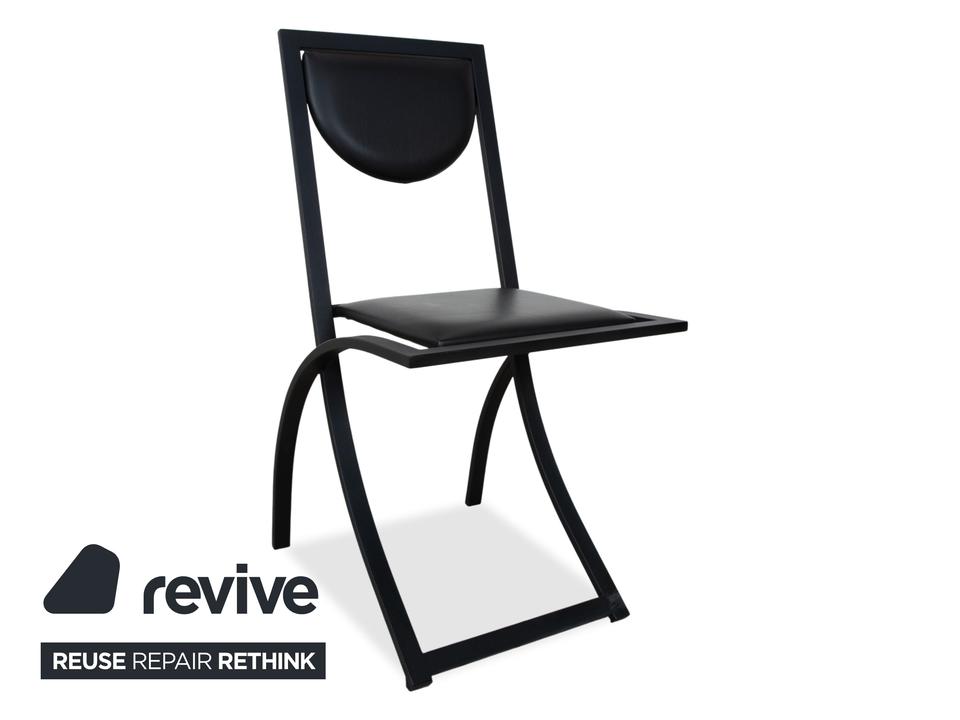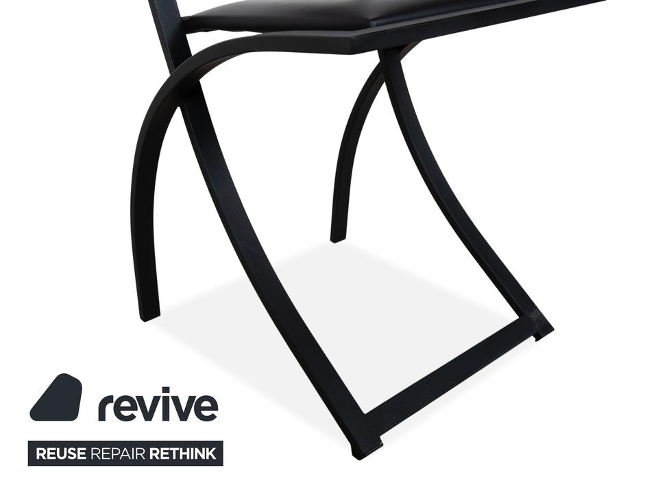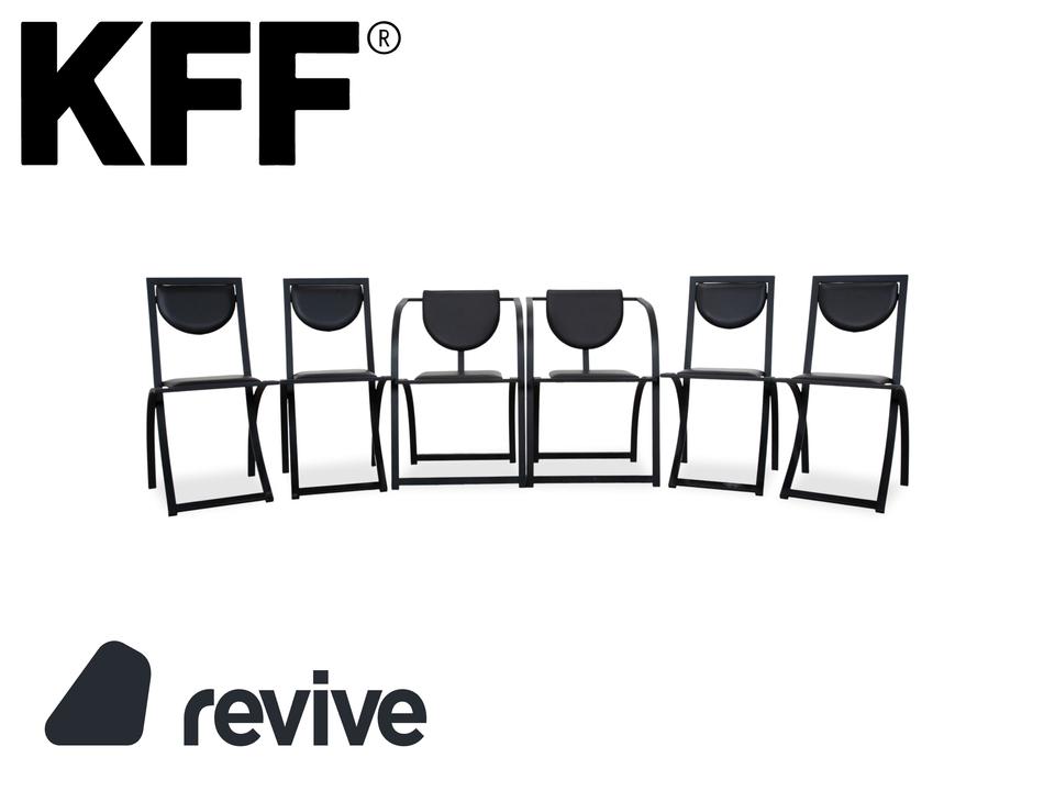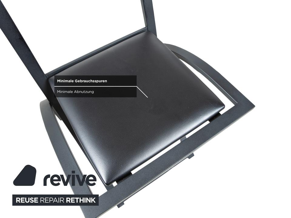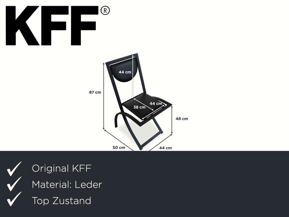Hier holst du dir mit dieser 6er Garnitur KFF Cosinus ein exzellentes Beispiel für deutsches Design in dein Esszimmer. Dieses Set besteht aus vier Stühlen ohne Armlehnen und zwei passenden Armlehnstühlen, die sich ideal an den Kopfenden einer Tafel platzieren lassen. Die Stühle, entworfen von Karl-Friedrich Förster, bestechen durch ihre markante, grafische Linienführung und die Kombination aus klar kantigen und runden Formen. Uns fasziniert besonders genau dieses Spiel mit geometrischen Formen: Die halbrunde Rückenlehne scheint förmlich im quadratischen Rahmen zu schweben, was den Stühlen trotz ihrer stabilen Konstruktion eine überraschende visuelle Leichtigkeit verleiht. Das minimalistische, schwarze Gestell unterstreicht den skulpturalen Charakter der Garnitur und macht sie zu einem zeitlosen Statement für Liebhaber puristischer Ästhetik.