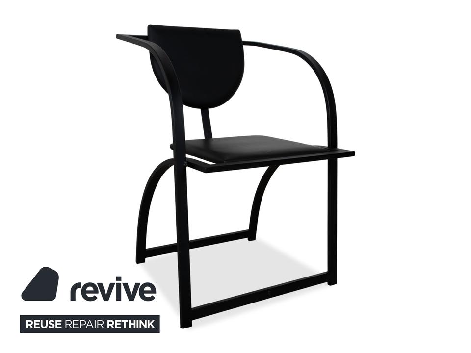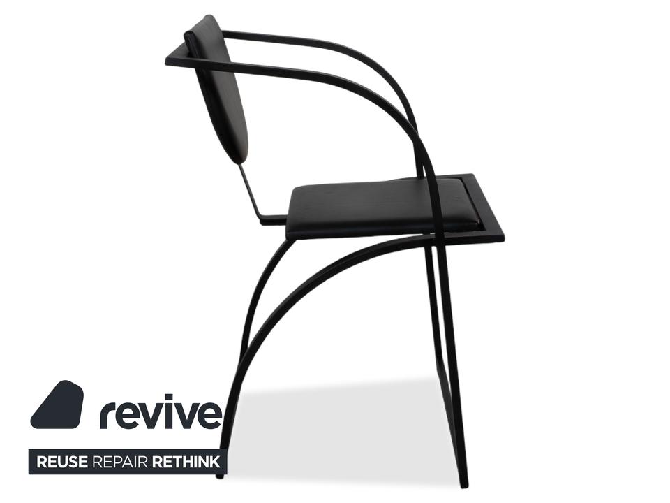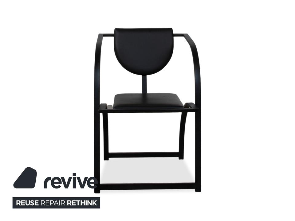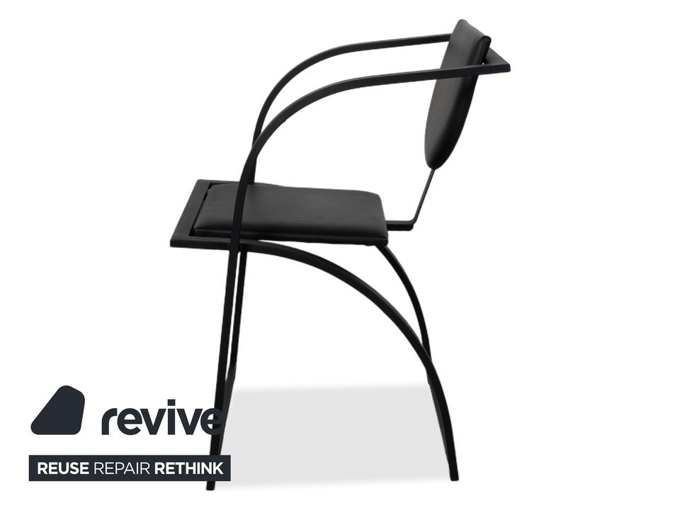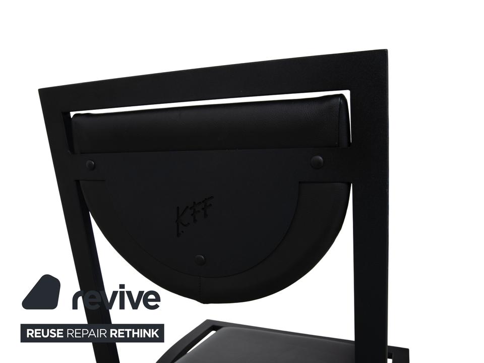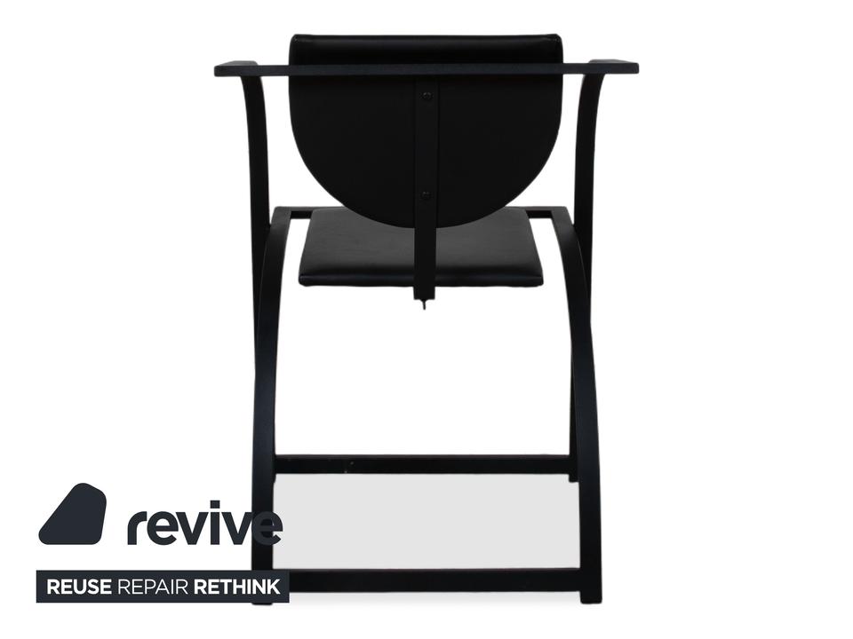 Hier holst du dir mit dieser 6er Garnitur KFF Cosinus ein exzellentes Beispiel für deutsches Design in dein Esszimmer. Dieses Set besteht aus vier Stühlen ohne Armlehnen und zwei passenden Armlehnstühlen, die sich ideal an den Kopfenden einer Tafel platzieren lassen. Die Stühle, entworfen von Karl-Friedrich Förster, bestechen durch ihre markante, grafische Linienführung und die Kombination aus klar kantigen und runden Formen. Uns fasziniert besonders genau dieses Spiel mit geometrischen Formen: Die halbrunde Rückenlehne scheint förmlich im quadratischen Rahmen zu schweben, was den Stühlen trotz ihrer stabilen Konstruktion eine überraschende visuelle Leichtigkeit verleiht. Das minimalistische, schwarze Gestell unterstreicht den skulpturalen Charakter der Garnitur und macht sie zu einem zeitlosen Statement für Liebhaber puristischer Ästhetik.