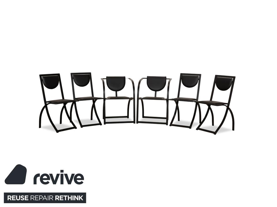 Die 6er Garnitur KFF Sinus besteht aus zwei gleichen, etwas kleineren und vier gleichen, etwas größeren Stühlen. Das tiefe Schwarz der Stühle wirkt zeitlos und modern. Geprägt von hochwertigem Leder trotzen diese Stühle von Langlebigkeit und Komfort.