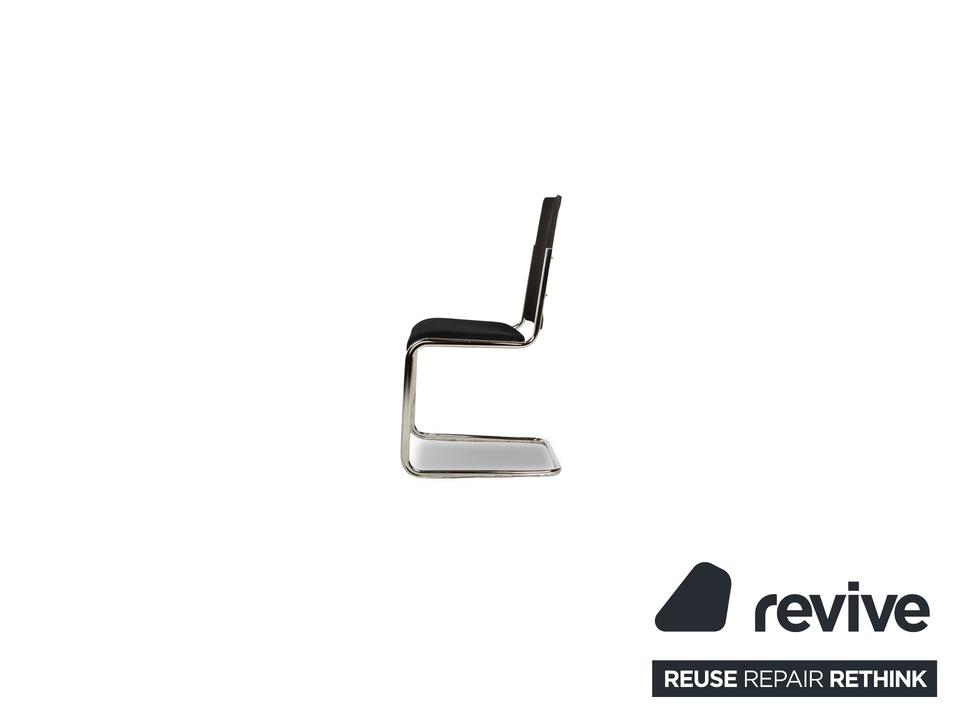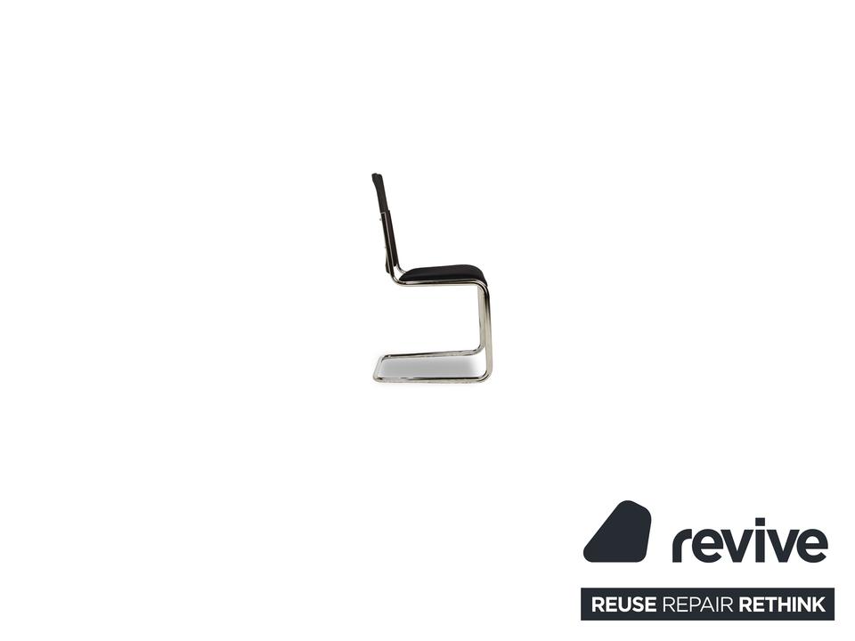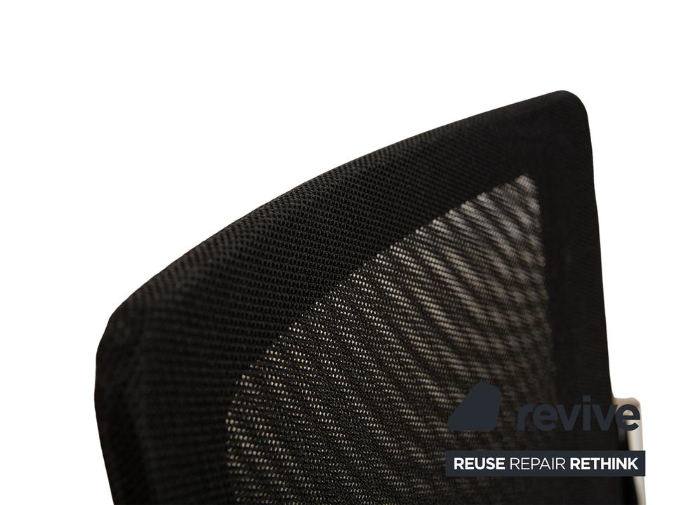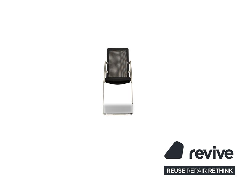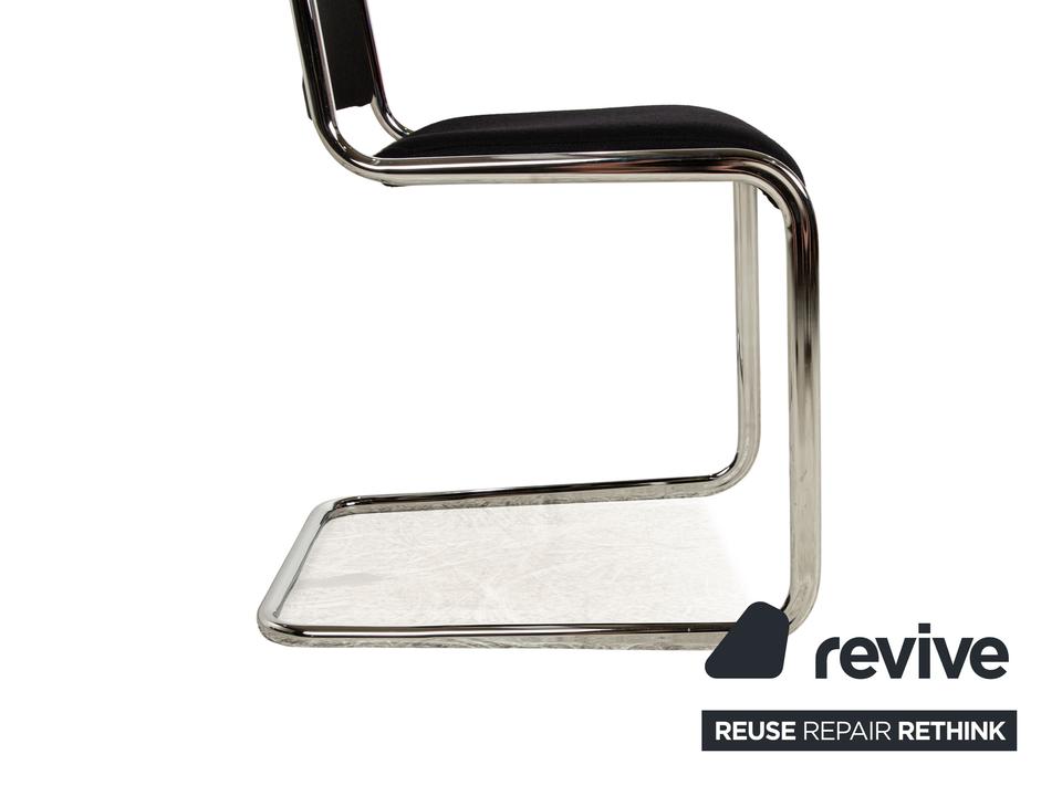 Die Stuhl Garnitur von Tecta besteht aus sechs Stühlen und steht auf einem schmalen Metallgestell. Die Rückenlehne ist mit einem schwarzen Mesh und die Sitzfläche mit einem schwarzen Stoff bezogen. Sie zeichnet sich durch das stilvolle Design und die zeitlose Optik aus.