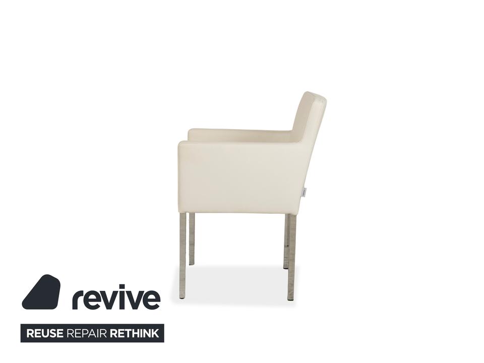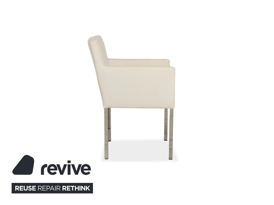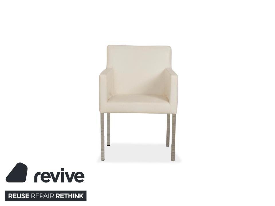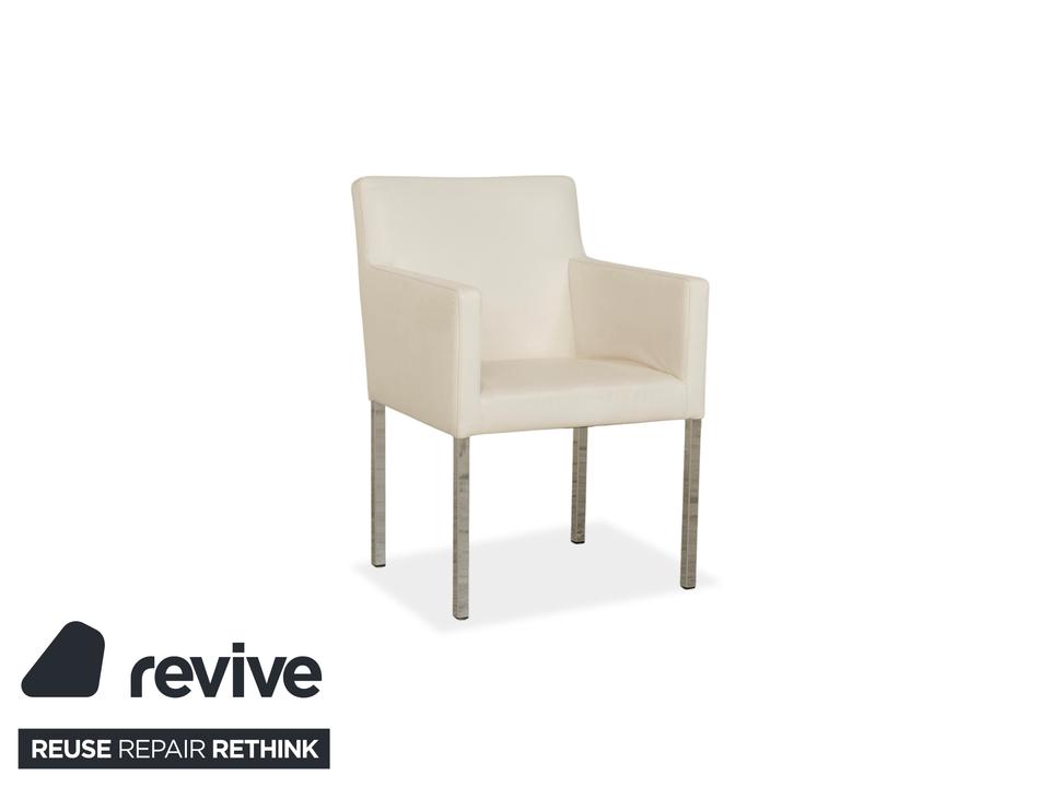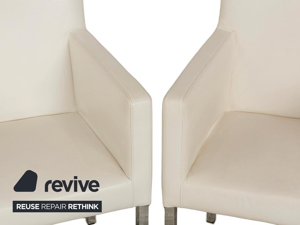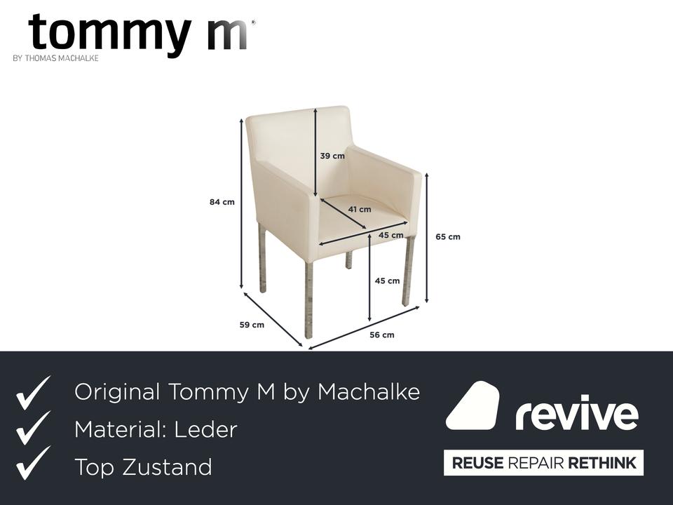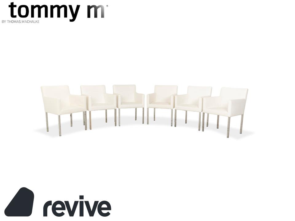 Das Stuhl-Set von Tommy M by Machalke besteht aus insgesamt sechs Armlehnstühlen und ist eine stilvolle Ergänzung für moderne Wohnräume. Die Stühle sind mit cremefarbenen Leder bezogen und stehen auf schmalen Metallbeinen. Ein zeitloser, schlichter Look machen sie aus.