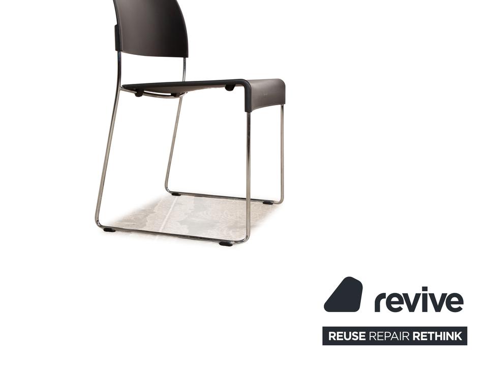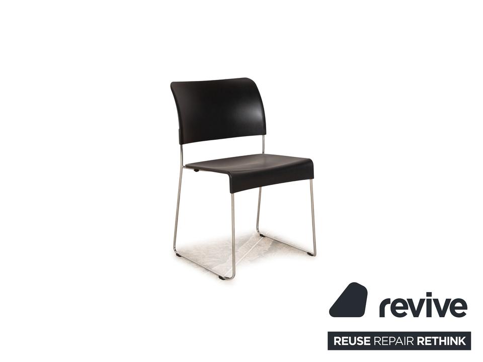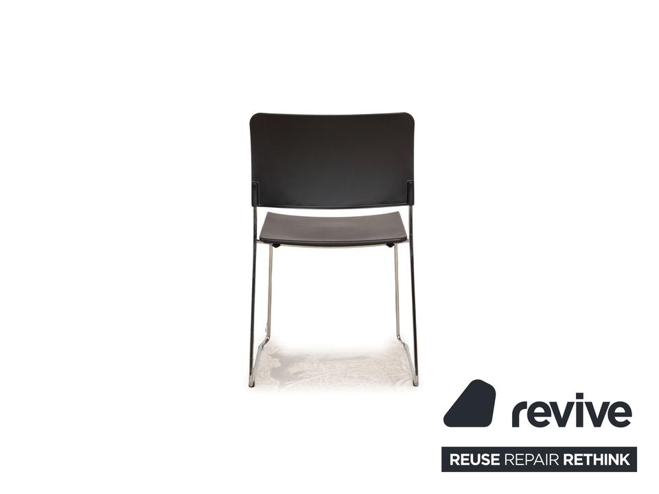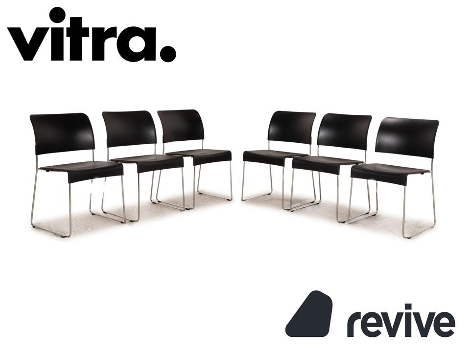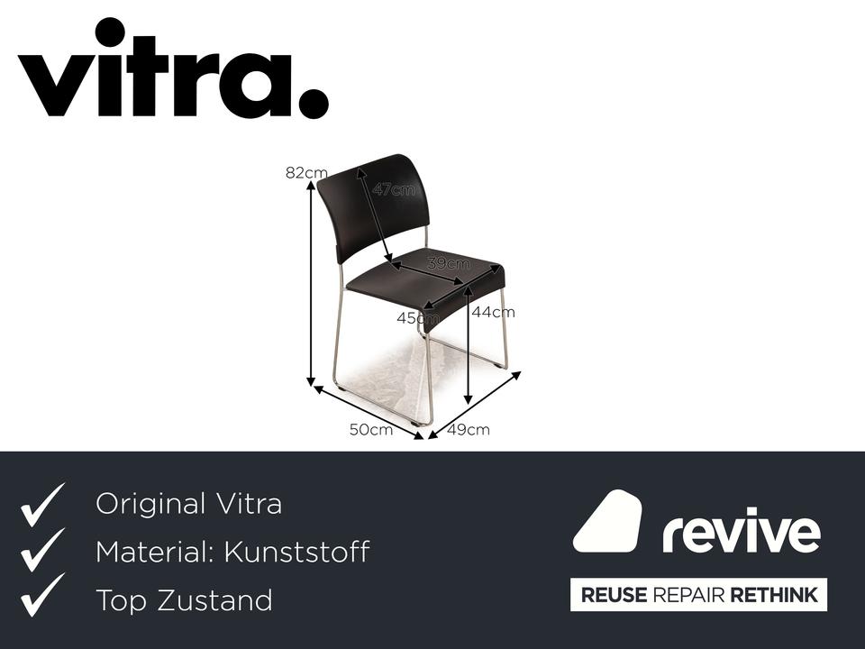 Die SIM Stuhl Garnitur von Vitra überzeugt mit ihrem zeitlosen, schlichten Design und der abgerundeten Sitzkante.
