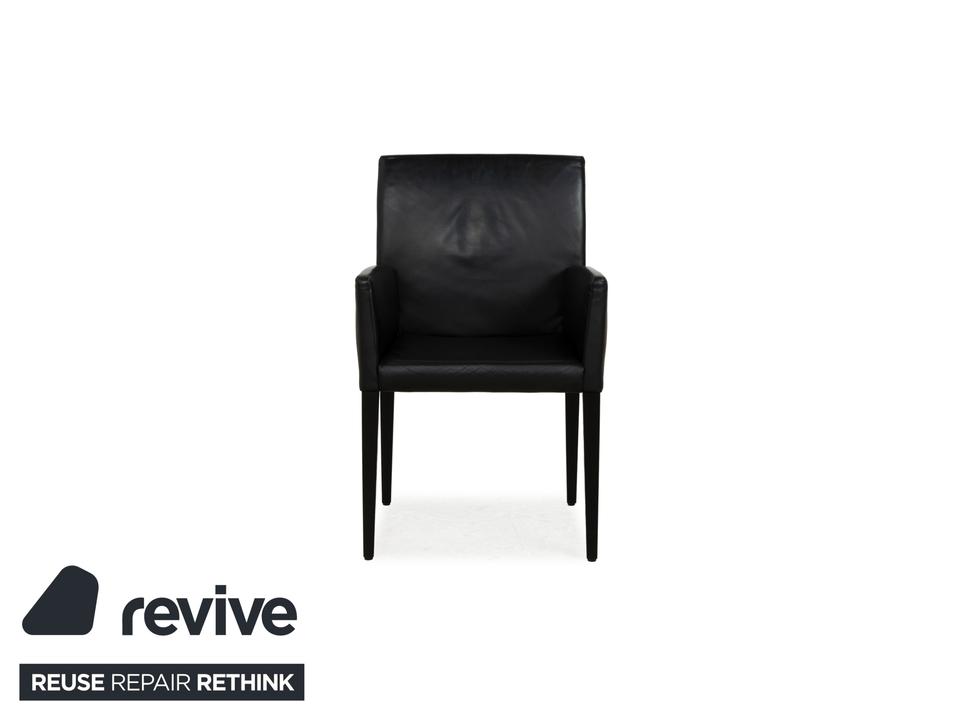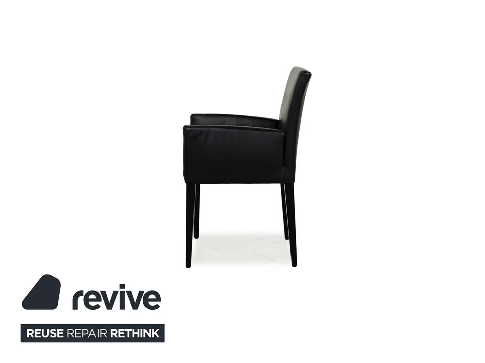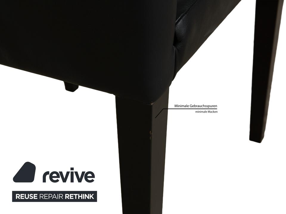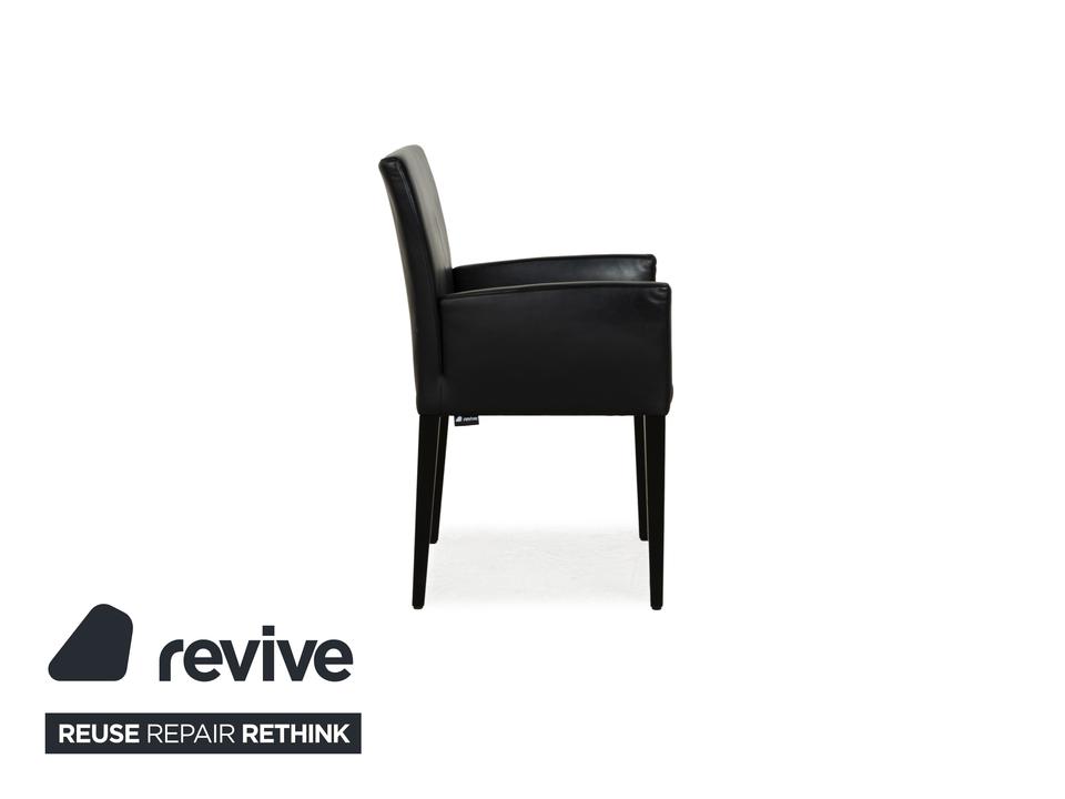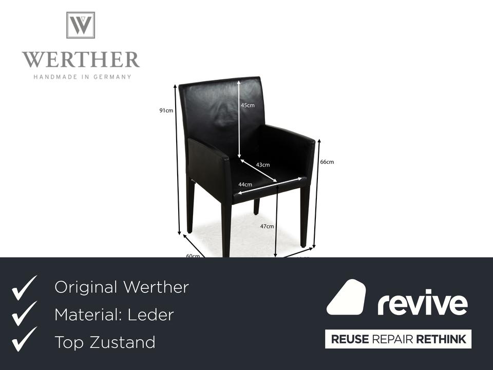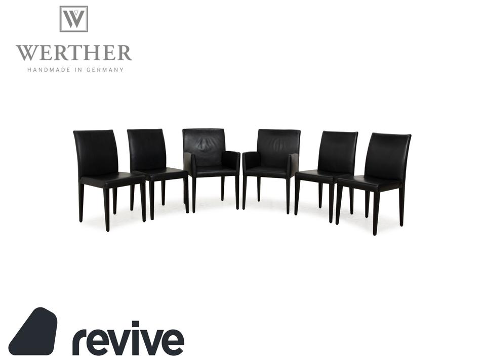 Die Stuhl-Garnitur Classic von Werther, bestehend aus insgesamt vier Stühlen, überzeugt durch ihr klassisches, zeitloses Design. Ein mit schwarzem Leder bezogener Korpus auf schwarzen, sich minimal verjüngenden Holzbeinen montiert. So wird dieses Set zu einem leicht kombinierbaren Element im modernen Esszimmer.