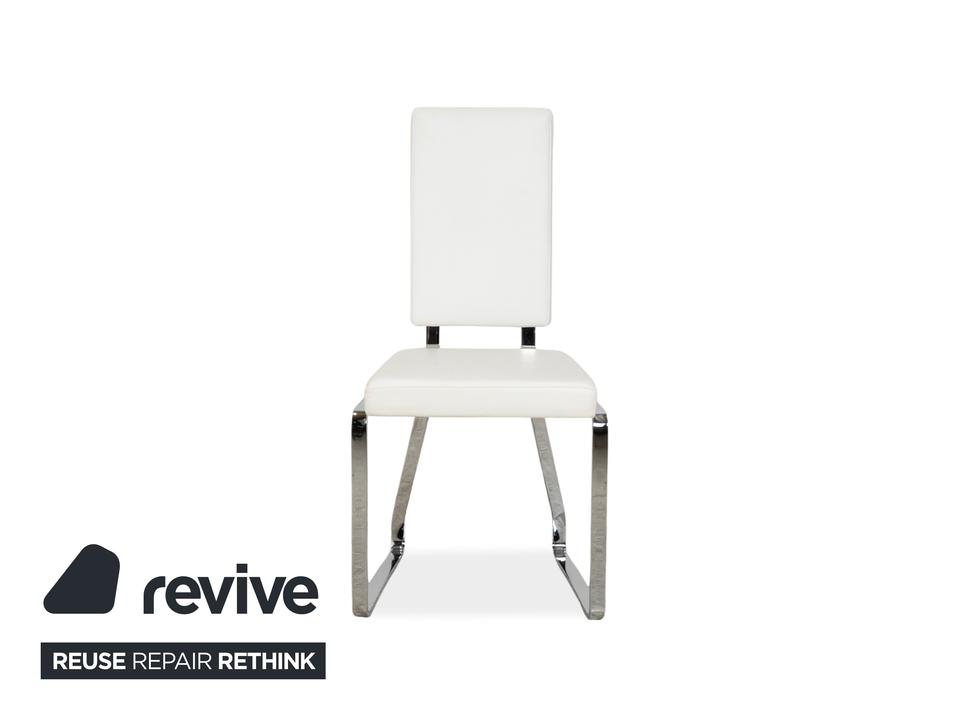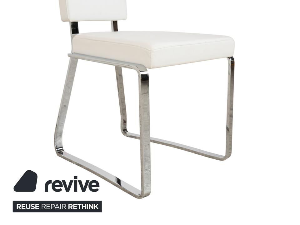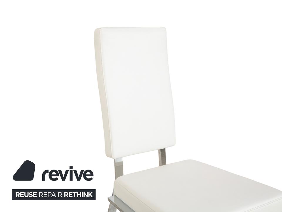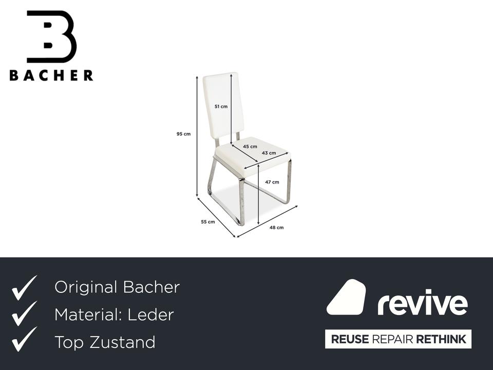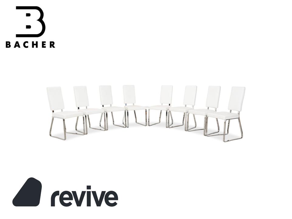 Mit dieser großen Garnitur von Bacher bist du sofort startklar für die nächste Dinnerparty. Es ist gar nicht so leicht, ein passendes Set aus gleich acht hochwertigen Stühlen zu finden – hier bekommst du sie alle auf einen Schlag. Das Design ist modern und wunderbar leicht: Die Sitzschalen sind in feines Leder in einem hellen Creme-Weiß gehüllt, was deinen Essbereich sofort freundlich und edel wirken lässt.Getragen werden die Stühle von einem glänzenden Chrom-Gestell in Kufenform (Sled Base). Das sieht nicht nur schick aus, sondern sorgt durch die leichte Federung oft auch für ein dynamisches, angenehmes Sitzgefühl. Die hohen Rückenlehnen bieten dir und deinen Gästen auch bei langen Abenden optimalen Halt. Ein beeindruckendes Ensemble, das perfekt an große Tische passt und Modernität mit klassischer Eleganz verbindet.