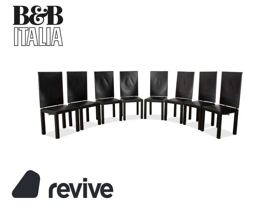 Die B&B Italia Arcadia Lederstühle (Set aus 8 Stück) vereinen zeitloses Design mit höchstem Sitzkomfort. Entworfen von Paolo Piva für B&B Italia, präsentieren sich die Stühle in edlem, schwarzem Lederbezug und einem schlanken Metallgestell. Die elegante Linienführung und die hohe Rückenlehne bieten sowohl ergonomischen Halt als auch stilvolle Raffinesse. Diese Garnitur eignet sich perfekt für große Essbereiche oder Konferenzräume, in denen Design und Komfort gleichermaßen gefragt sind. Das hochwertige Leder und die präzise Verarbeitung stehen für die erstklassige Qualität, für die B&B Italia bekannt ist – ein modernes Statement für jedes Interieur.