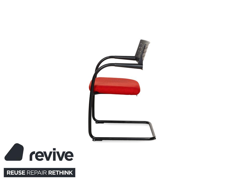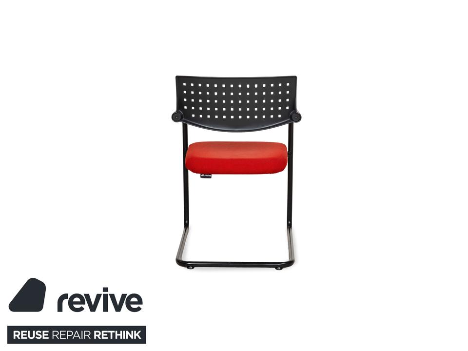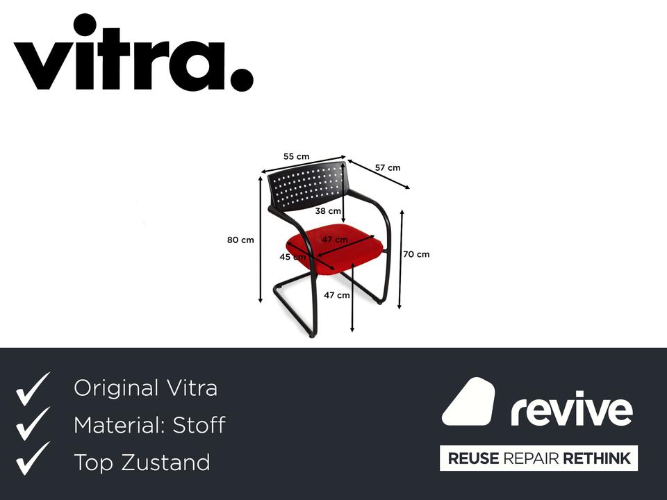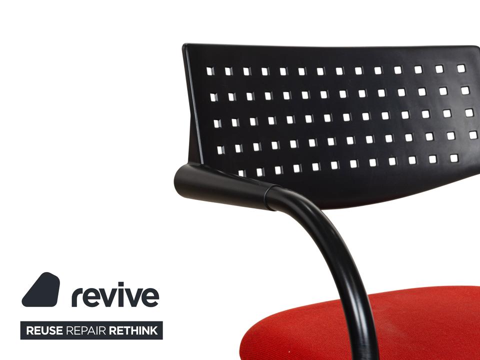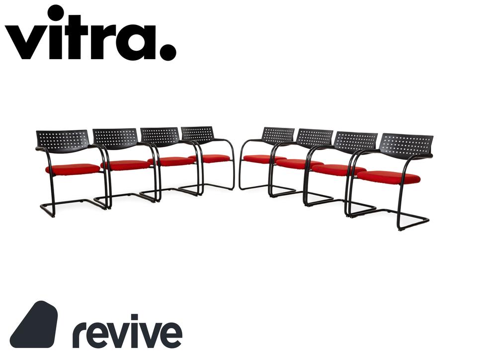 Diese Vitra Visavis bestehend aus 8 Stühlen legt ein einzigartiges und interessantes Erscheinungsbild an den Tag. Die Kombination aus dem schwarzen Gestell mit der roten Sitzfläche bietet einen hervorragenden Akzent. Zudem bringt die hohe Qualität der Stühle Stabilität, Komfort und selbstverständlich Langlebigkeit mit sich.