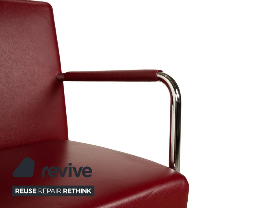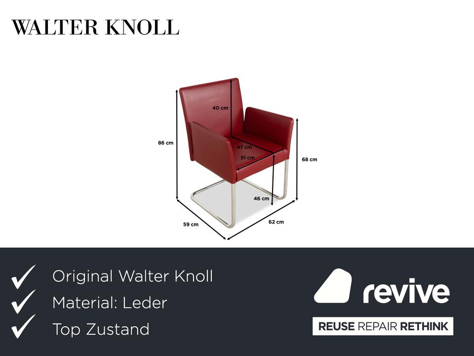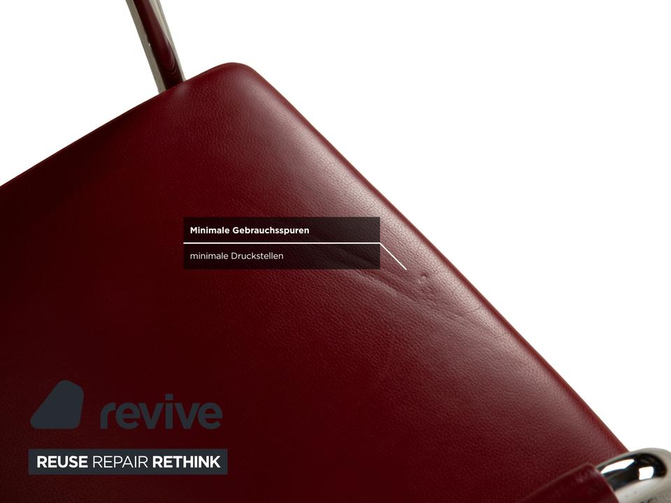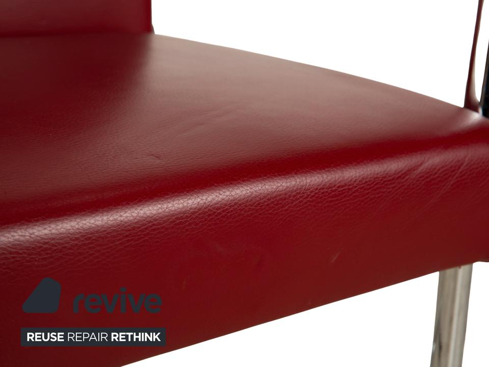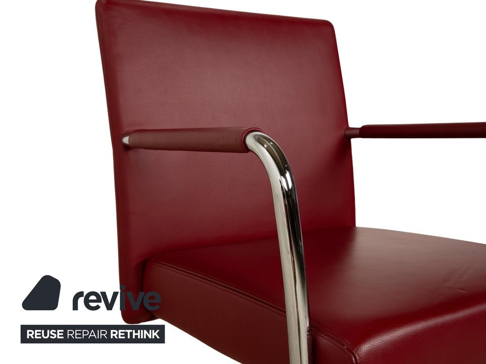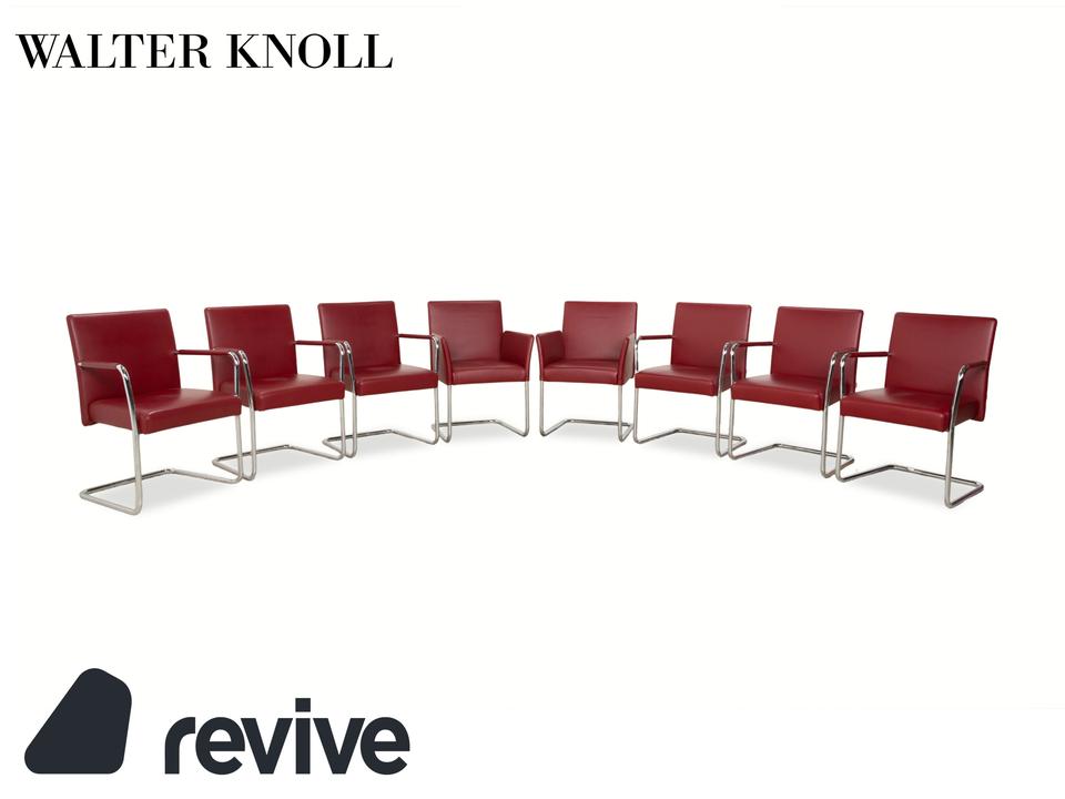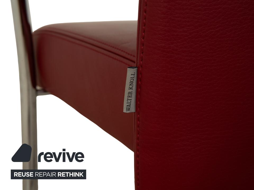 Die Walter Knoll Jason 8er Garnitur setzt sich aus acht identischen Stühlen zusammen. Allesamt zeichnen sich durch ein tiefes Rot und ein als hervorragender Akzent dienendes, silbernes Gestell aus. Das Gestell sorgt außerdem für die Freischwinger Funktion, was den Komfort erhöht.