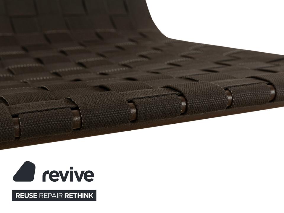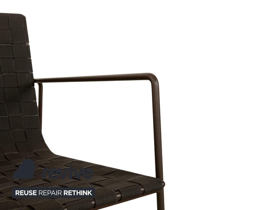 Der Andreu World Trenza Sessel vereint minimalistisches Design mit hohem Sitzkomfort. Die Sitz- und Rückenfläche besteht aus robustem, schwarzem Bandgeflecht.Das schlanke Metallgestell mit filigranen Armlehnen sorgt für eine leichte, moderne Optik und macht den Stuhl vielseitig einsetzbar.