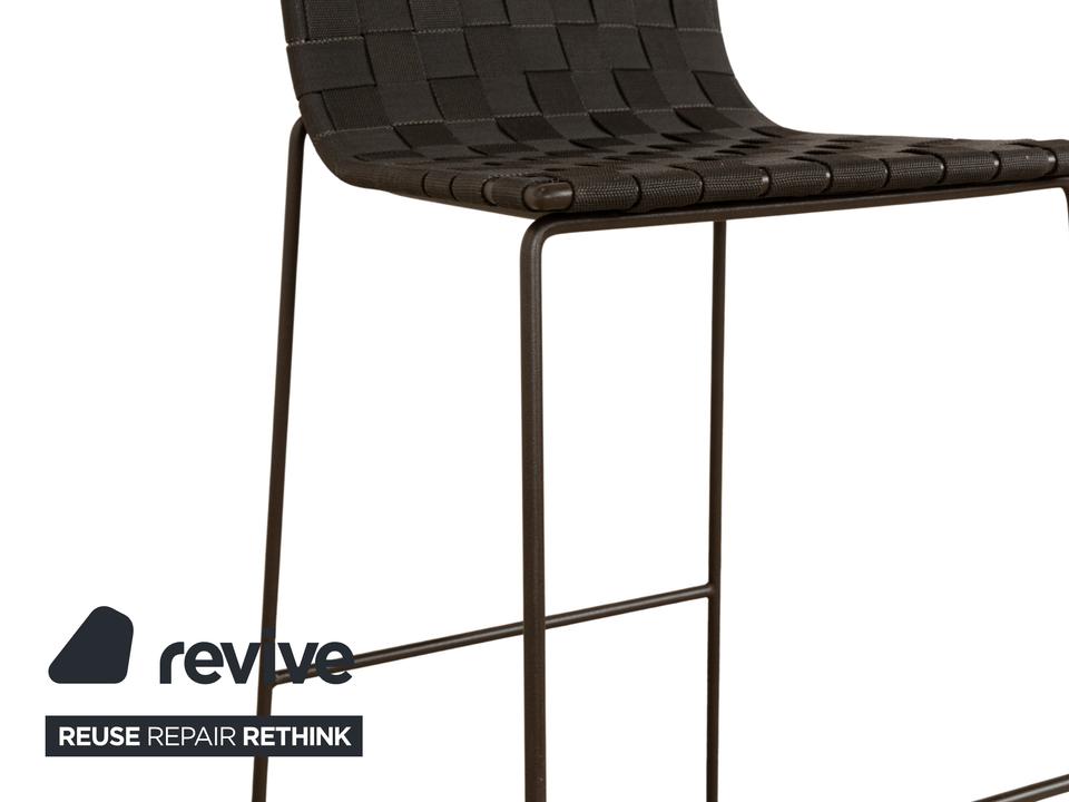 Der Andreu World Trenza Outdoor Hochstuhl ist gefertigt aus einem dünnen Metallgestell und Stoffgeflecht. Dadurch gewährt er Stabilität, Komfort und Langlebigkeit – unabhängig vom Wetter.