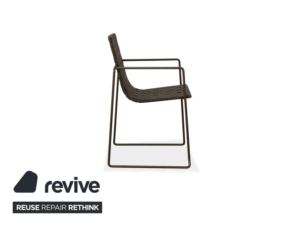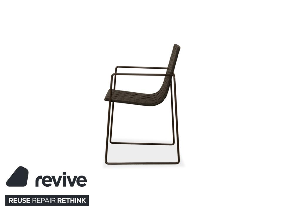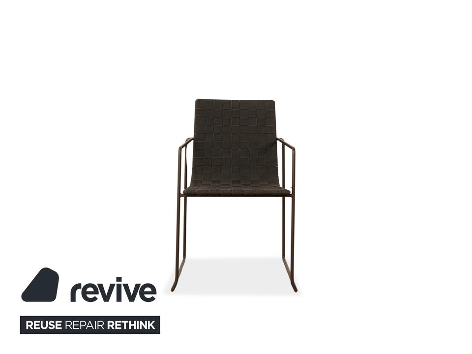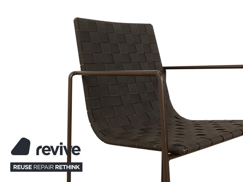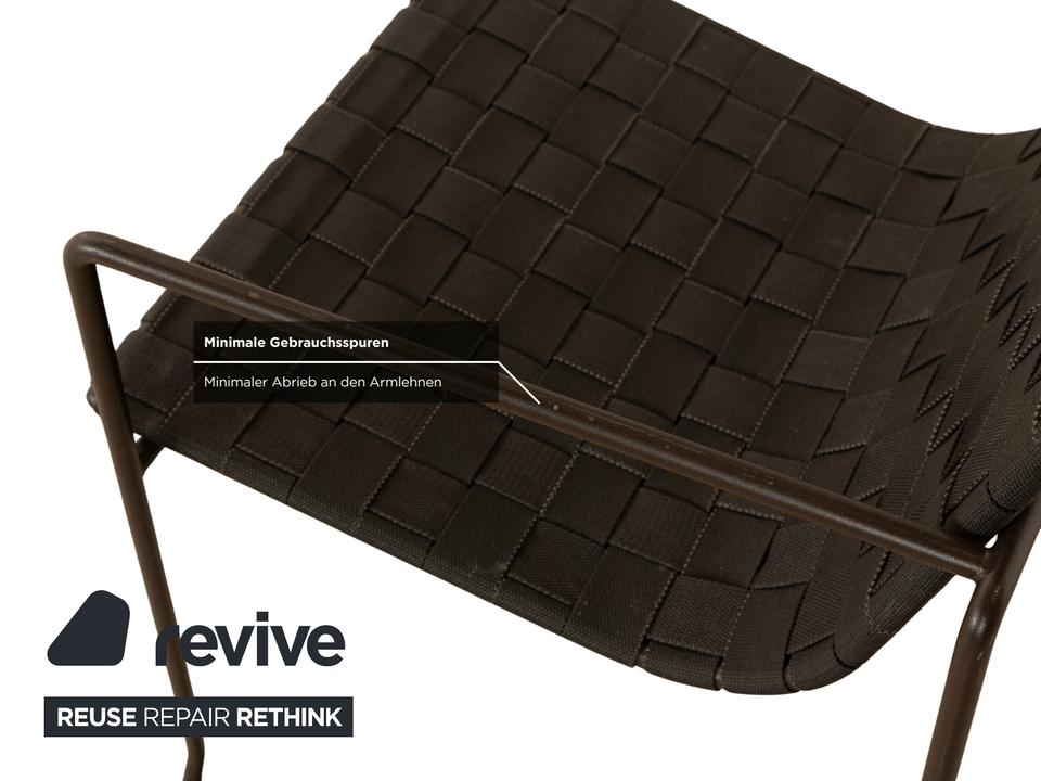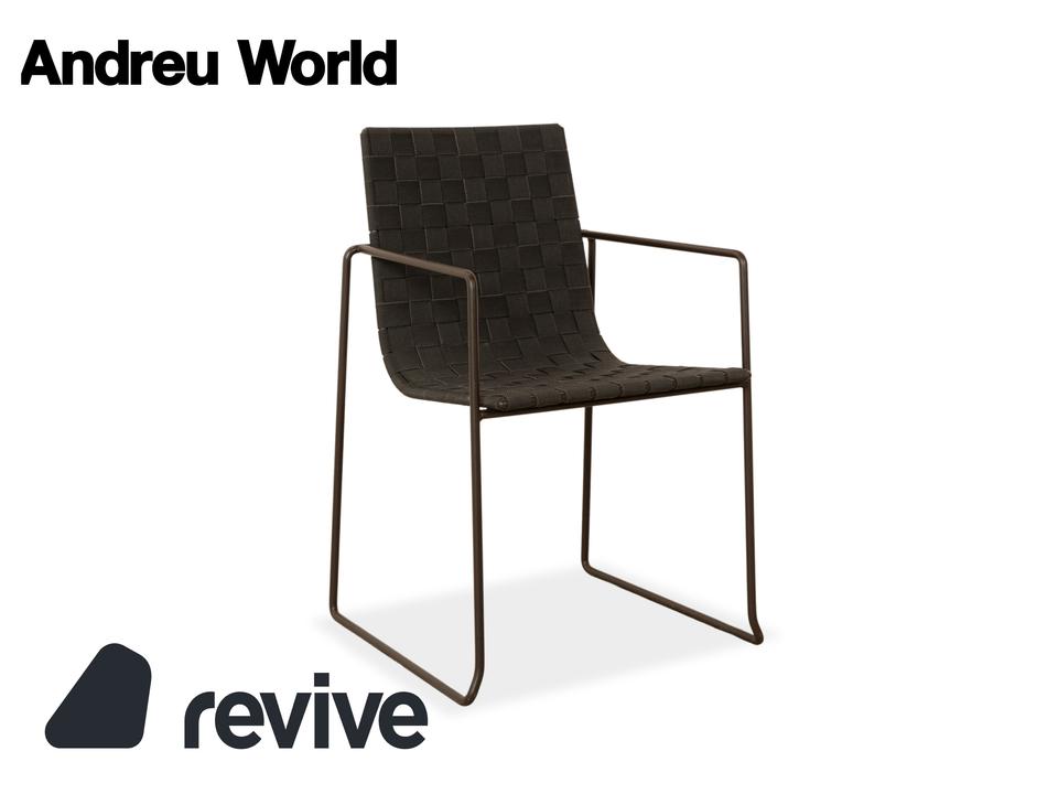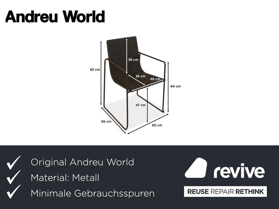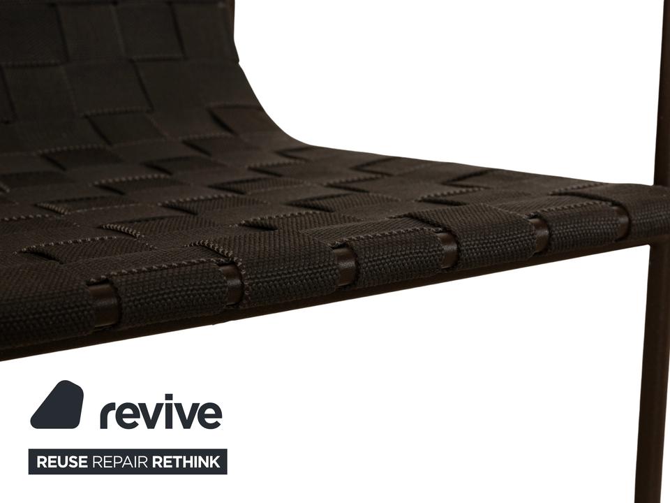 Der Andreu World Trenza Stuhl vereint minimalistisches Design mit hohem Sitzkomfort. Die Sitz- und Rückenfläche besteht aus robustem, schwarzem Bandgeflecht.