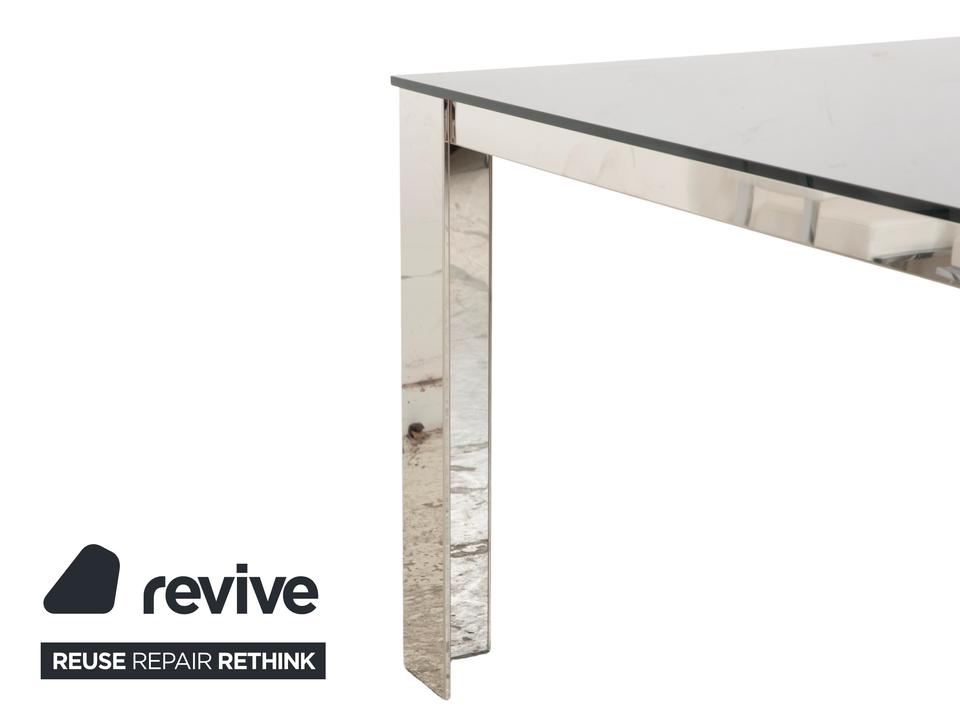 Wenn du einen Esstisch suchst, der Modernität und Leichtigkeit ausstrahlt, ist dieses Modell von Bacher eine Punktlandung. Der deutsche Hersteller ist bekannt für hochwertige Tische, die Design und Funktion verbinden. Hier hast du eine klare Glasplatte, die auf einem absolut puristischen Gestell aus glänzendem Chromstahl ruht.Das Besondere sind die vier breiten, flachen Beine, die an den Ecken positioniert sind. Sie geben dem Tisch eine architektonische Strenge, lassen ihn aber durch die spiegelnde Oberfläche fast im Raum verschwinden. Das Glas sorgt für Transparenz und Offenheit – ideal, um auch kleinere Essbereiche großzügig wirken zu lassen. Ein zeitloses Möbelstück, das sich jedem Einrichtungsstil unterordnet und trotzdem als elegantes Centerpiece fungiert.