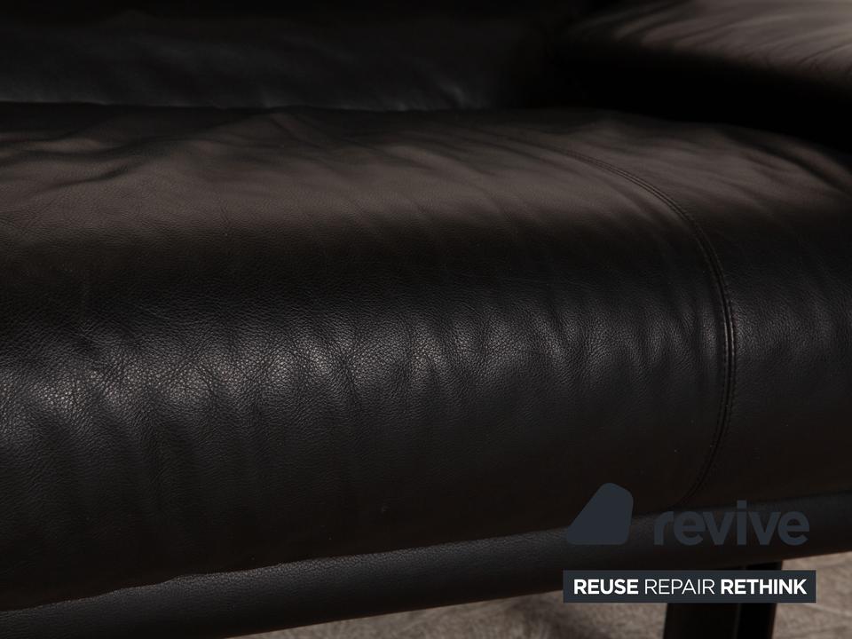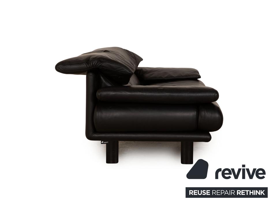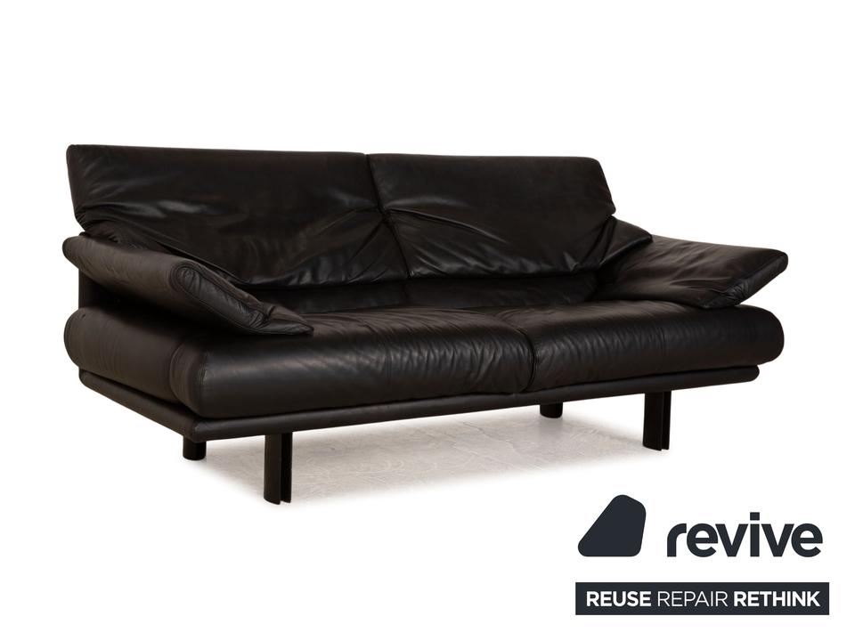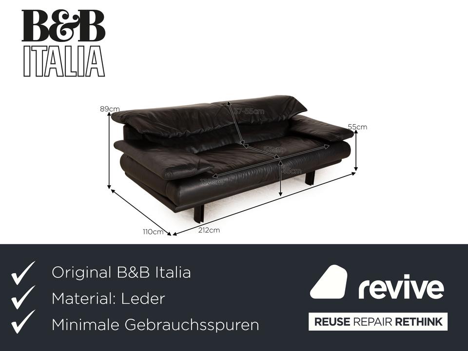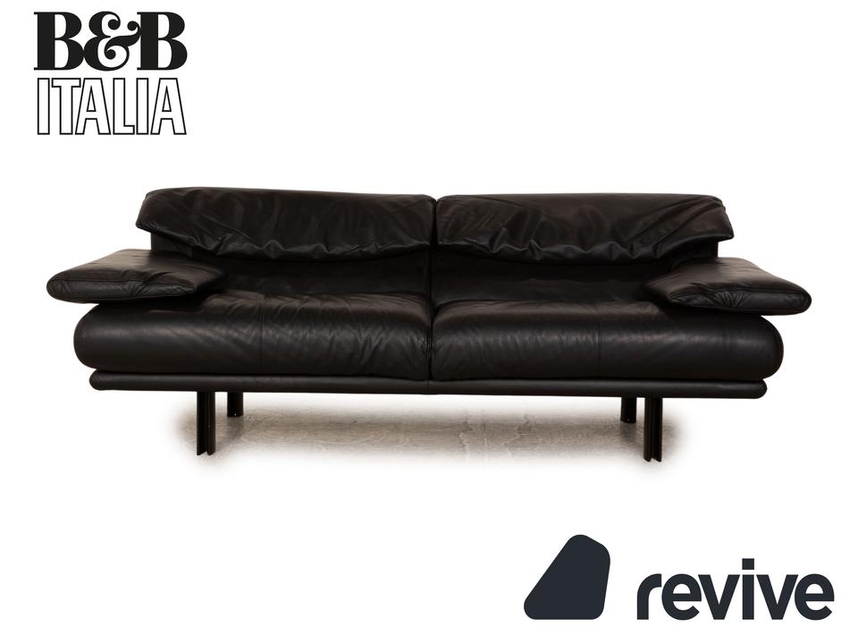 Das Alanda Sofa von B&B Italia ist mit einem schwarzen Echtleder bezogen und steht auf schmalen Füßen. Die verstellbare Rückenlehne und die abgerundeten Kanten zeichnen den Zweisitzer aus.