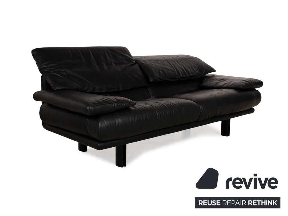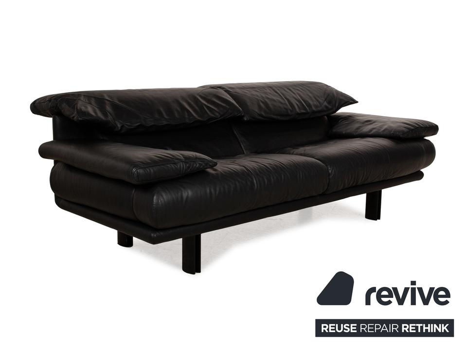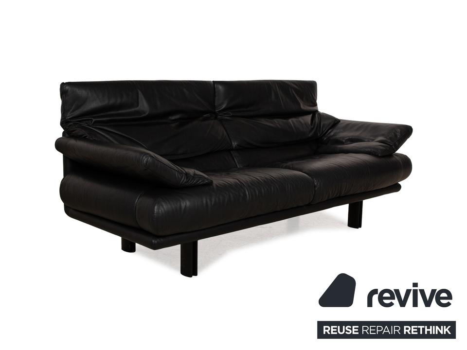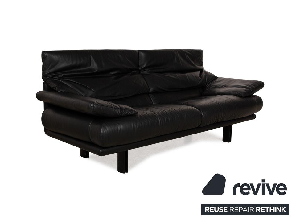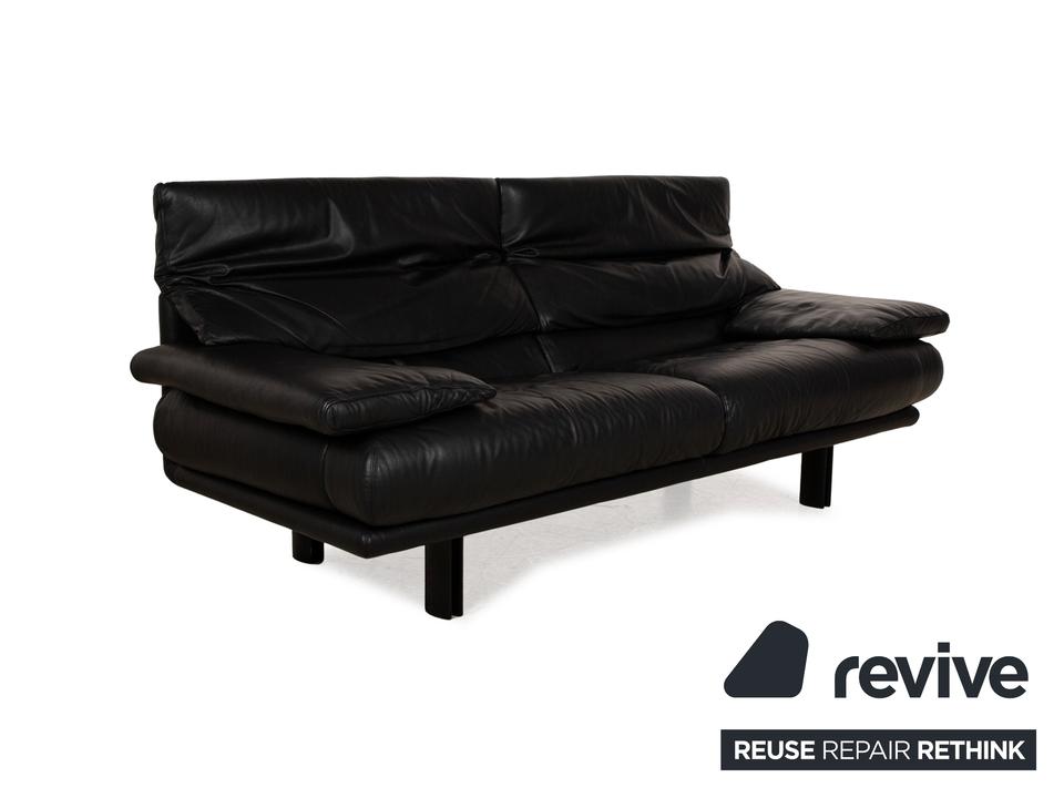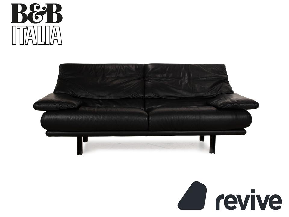 Das Alanda Sofa von B&B Italia ist mit einem schwarzen Echtleder bezogen und steht auf schwarzen Füßen. Der Zweisitzer überzeugt mit seinem schlichten Design und der klassischen Optik.