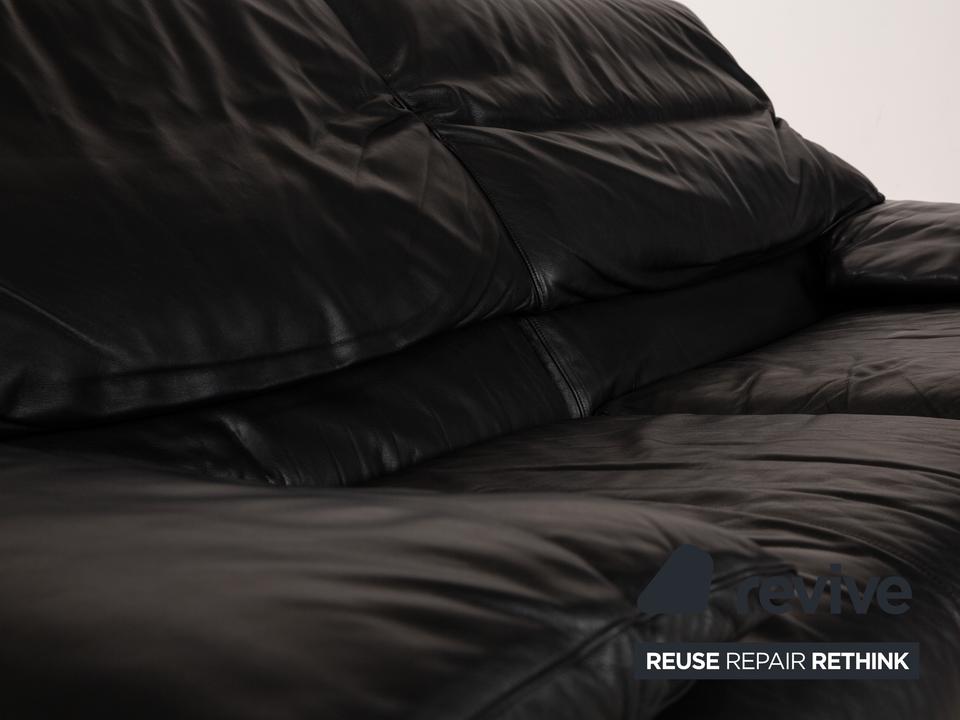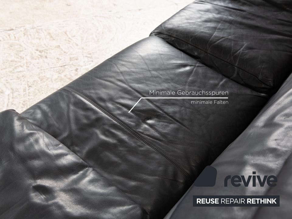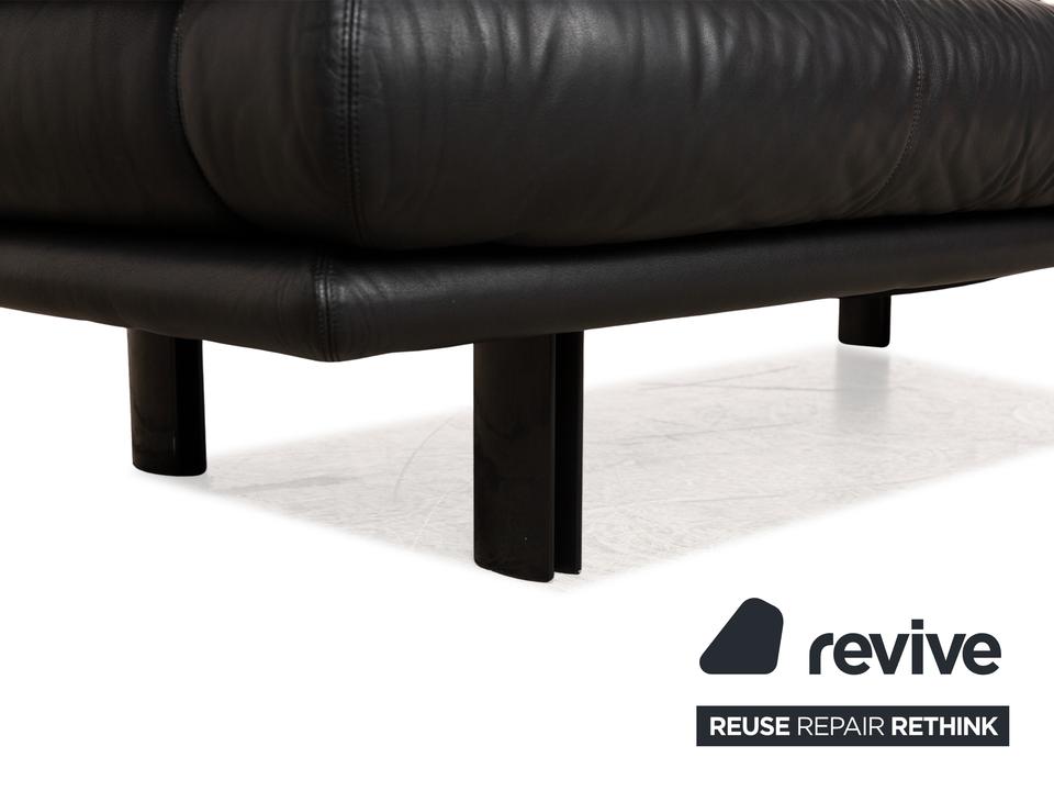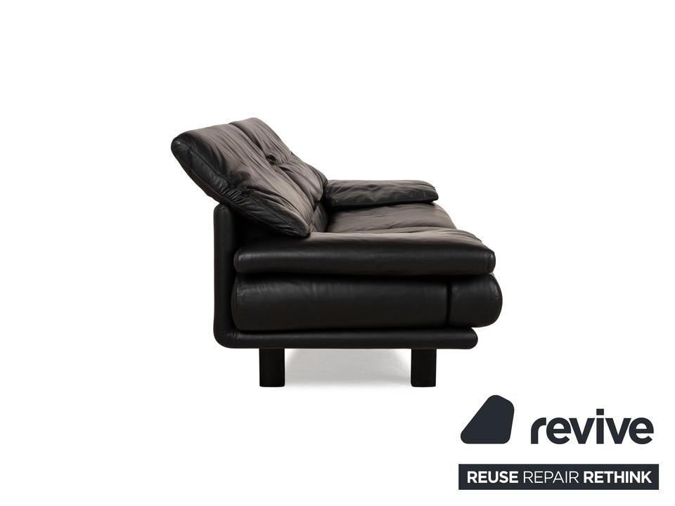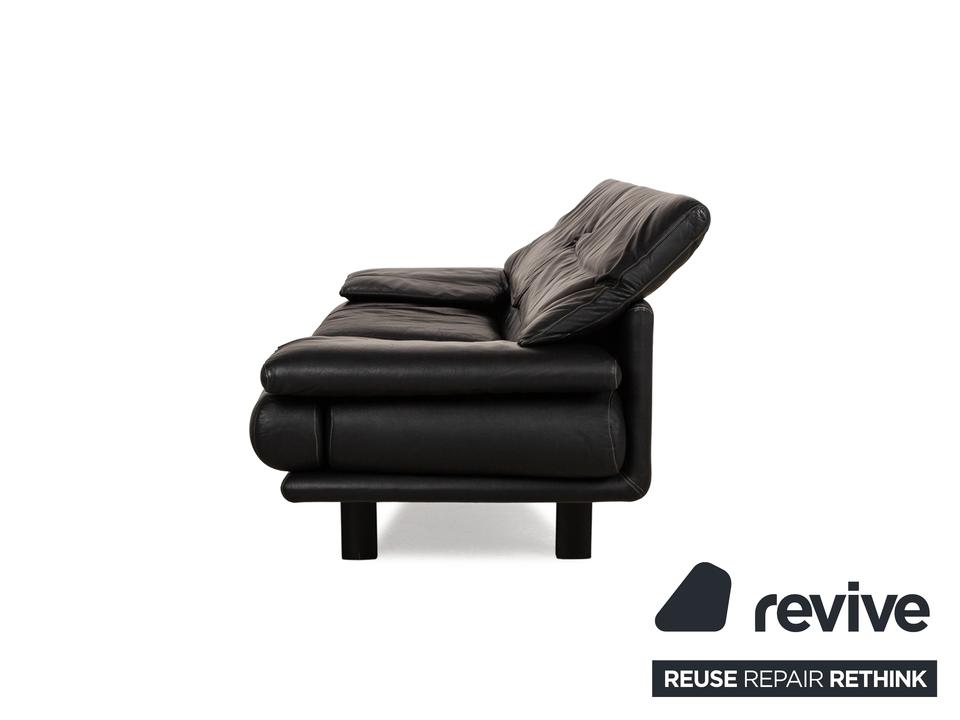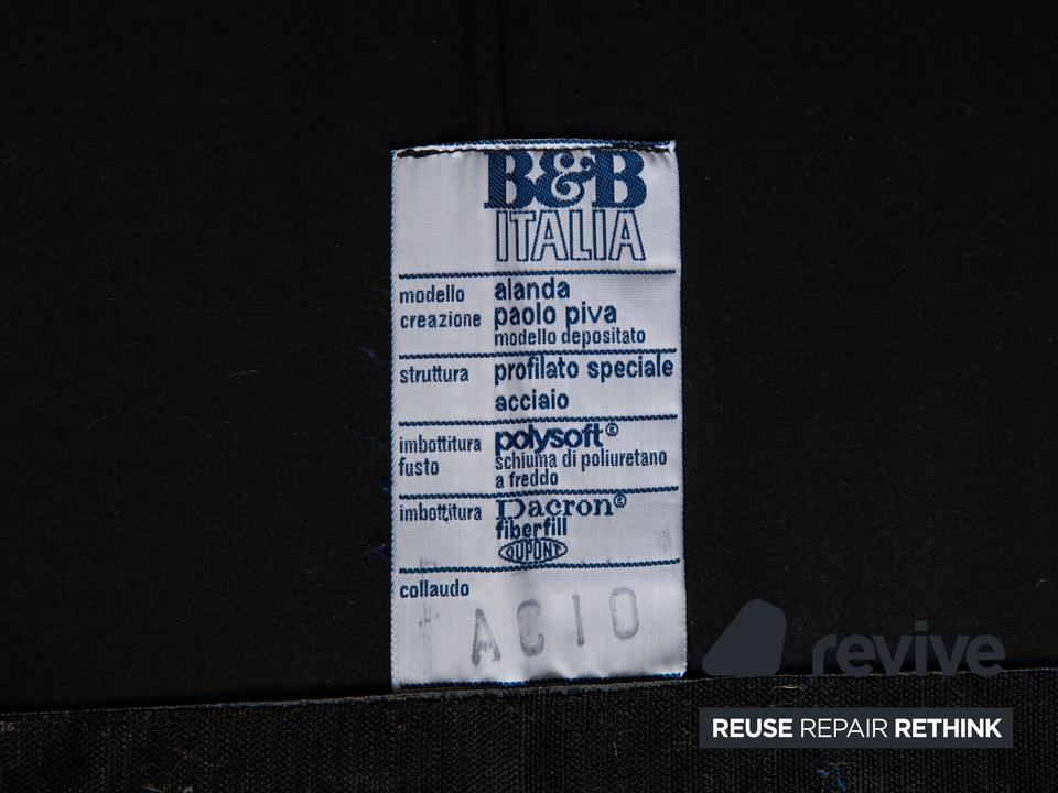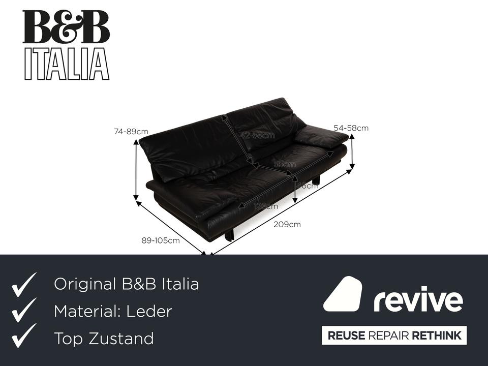 Das Alanda Sofa von B&B Italia ist mit einem schwarzen Echtleder bezogen und steht auf schwarzen Füßen. Der Zweisitzer überzeugt mit seinem schlichten Design und der klassischen Optik.