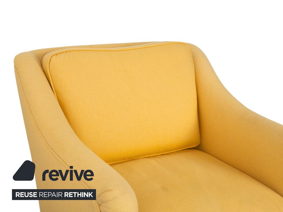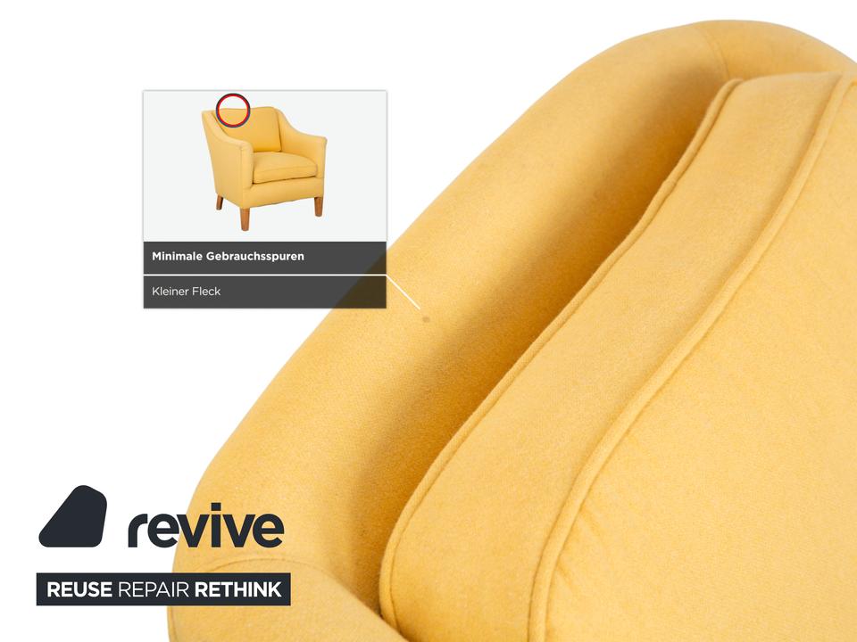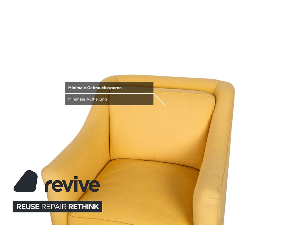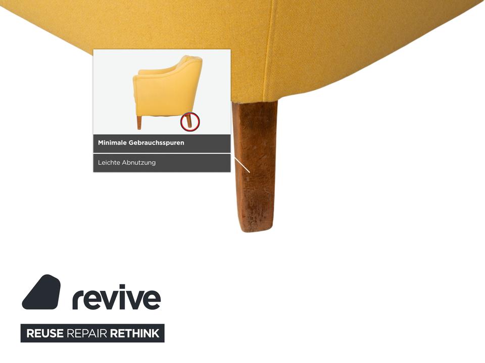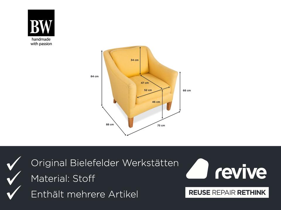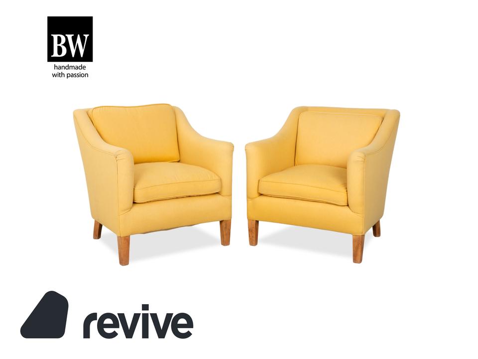 Mit diesen Sesseln der renommierten Bielefelder Werkstätten (BW) holst du dir ein Stück klassische, deutsche Handwerkskunst in dein Zuhause. Die Marke steht für zeitlose Eleganz und eine Verarbeitungsqualität, die man sieht und spürt.Der Bezug ist in einem wunderschönen, warmen Gelb gehalten, das sofort eine sonnige und freundliche Atmosphäre in den Raum zaubert, ohne aufdringlich zu wirken. Die Formsprache ist traditionell und doch modern interpretiert: Die sanft geschwungenen Armlehnen umarmen den Sitzenden förmlich und gehen harmonisch in den Rücken über.Für exzellenten Sitzkomfort sorgen das dicke, lose Sitzkissen und das separate Rückenkissen, die eine gemütliche, aber gestützte Position ermöglichen. Getragen wird der Sessel von hellen Holzfüßen, die leicht konisch zulaufen und einen natürlichen, bodenständigen Kontrast zum frischen Stoff bilden. Ein perfekter Solitär für eine gemütliche Leseecke oder als farbiger Akzent im Wohnzimmer.