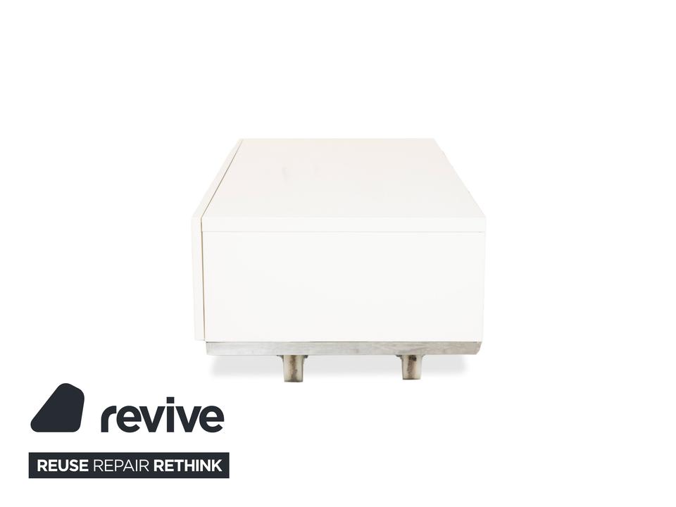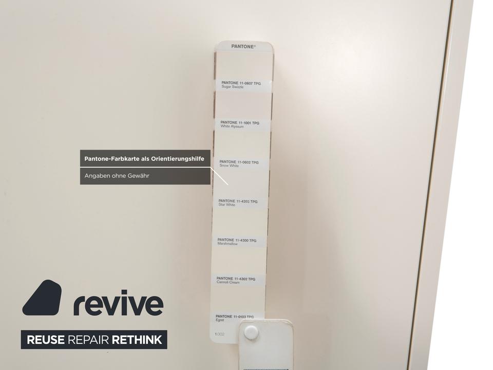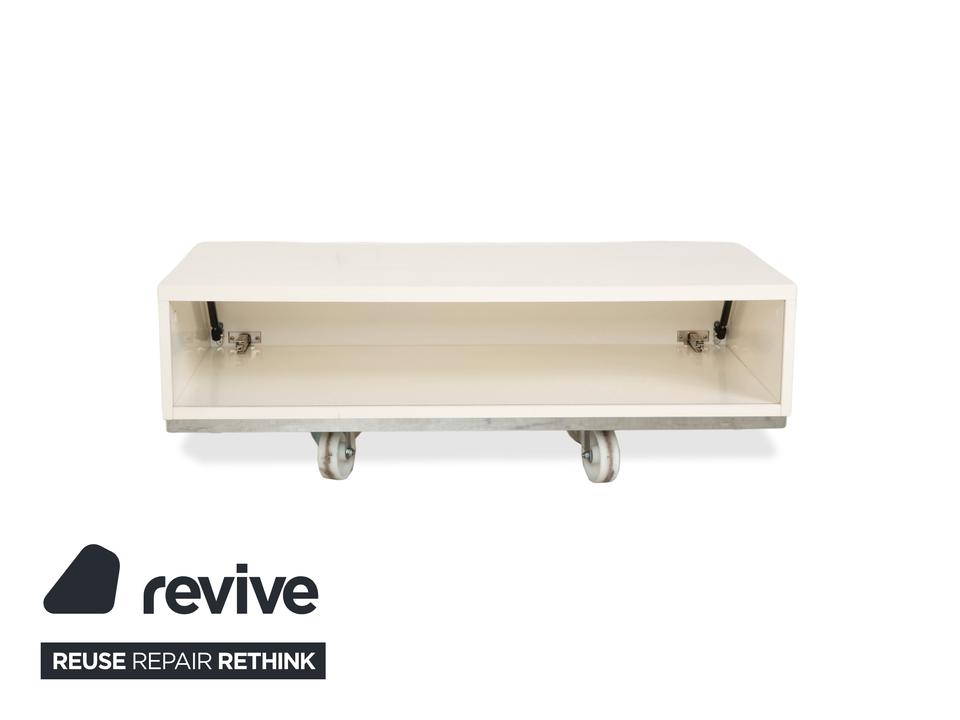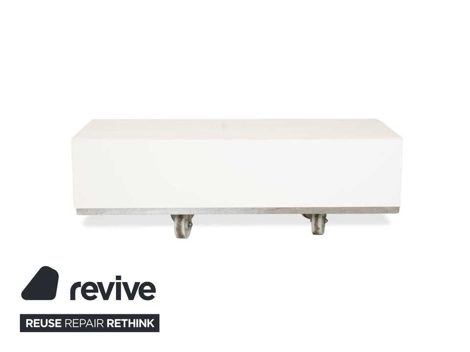 Mit dem „Lugano“ Sideboard von BoConcept holst du dir dänischen Minimalismus in Reinkultur ins Haus. Dieses Möbelstück besticht durch seine radikale Schlichtheit: Keine Griffe, keine Schnörkel – einfach eine klare, perfekte Form, die Ruhe und Ordnung ausstrahlt.Die Farbe ist ein sanftes Weiß-Creme, das dem geradlinigen Design die Strenge nimmt und sehr wohnlich wirkt. Durch die niedrige Höhe (Lowboard-Charakter) eignet es sich hervorragend als modernes TV- oder Medienmöbel, da es den Raum nicht dominiert, sondern optisch offen hält. Der Korpus ruht auf einem dezenten, leicht abgesetzten Sockel (oft in Grau oder Silber), was dem massiven Block eine gewisse Leichtigkeit verleiht. Ein Möbelstück für alle, die „Weniger ist mehr“ nicht nur sagen, sondern auch leben wollen – perfekt, um Technik und Krimskrams elegant verschwinden zu lassen.