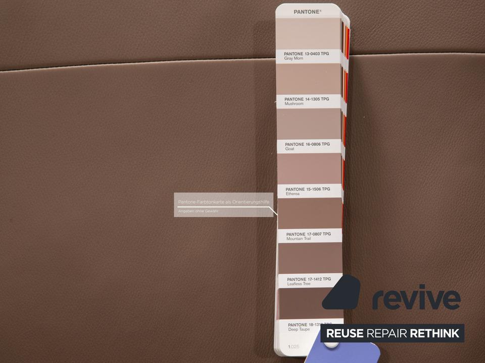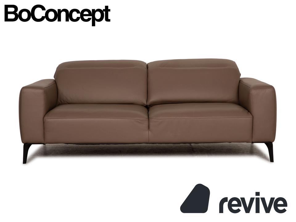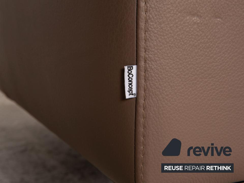 Das Zürich Sofa von BoConcept ist mit einem braunen Echtleder bezogen und steht auf schwarzen Füßen. Das minimalistische, moderne Design und die abgerundeten Kanten zeichnen den Zweisitzer aus.