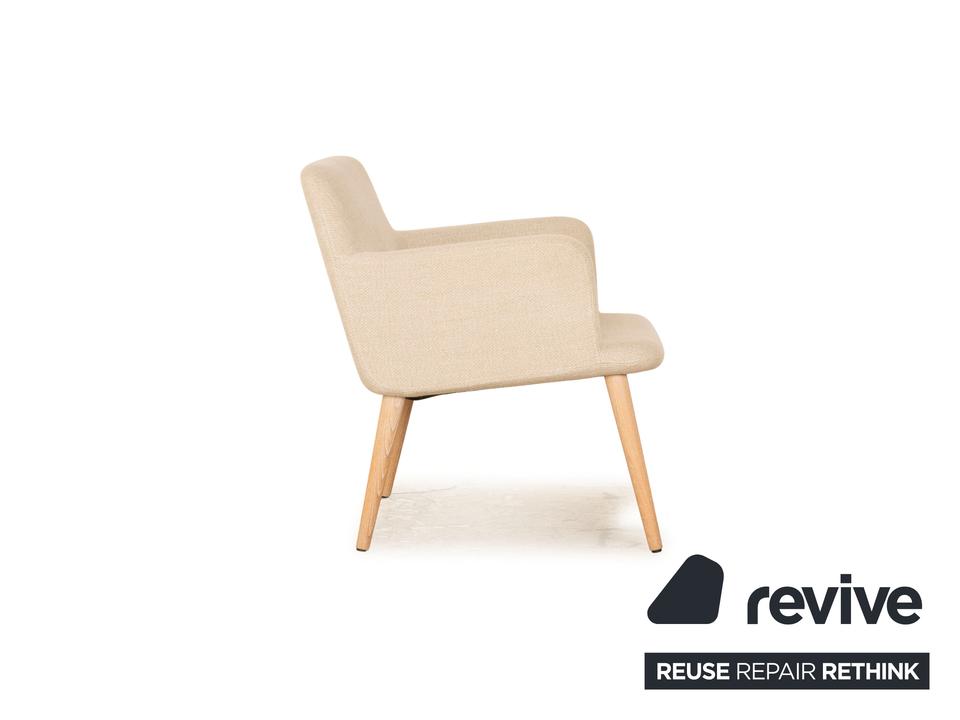Der C3 Sessel von Bolia ist mit einem cremefarbenen Stoff bezogen und steht auf Holzfüßen. Das schlichte, zeitlose Design zeichnen ihn aus.