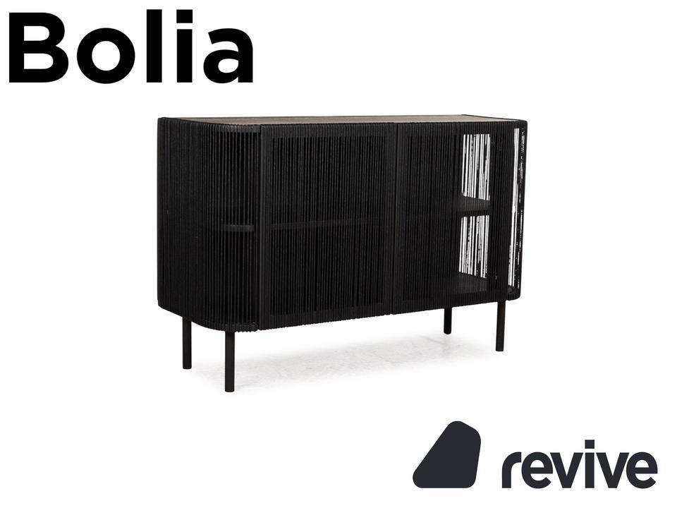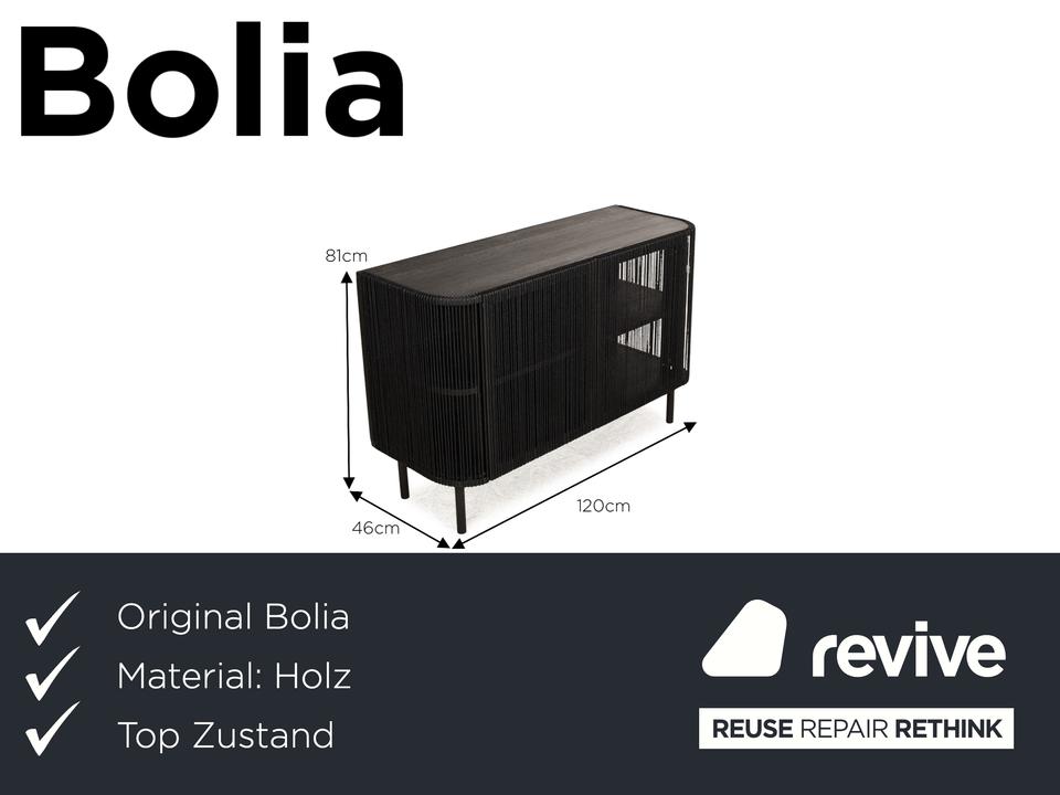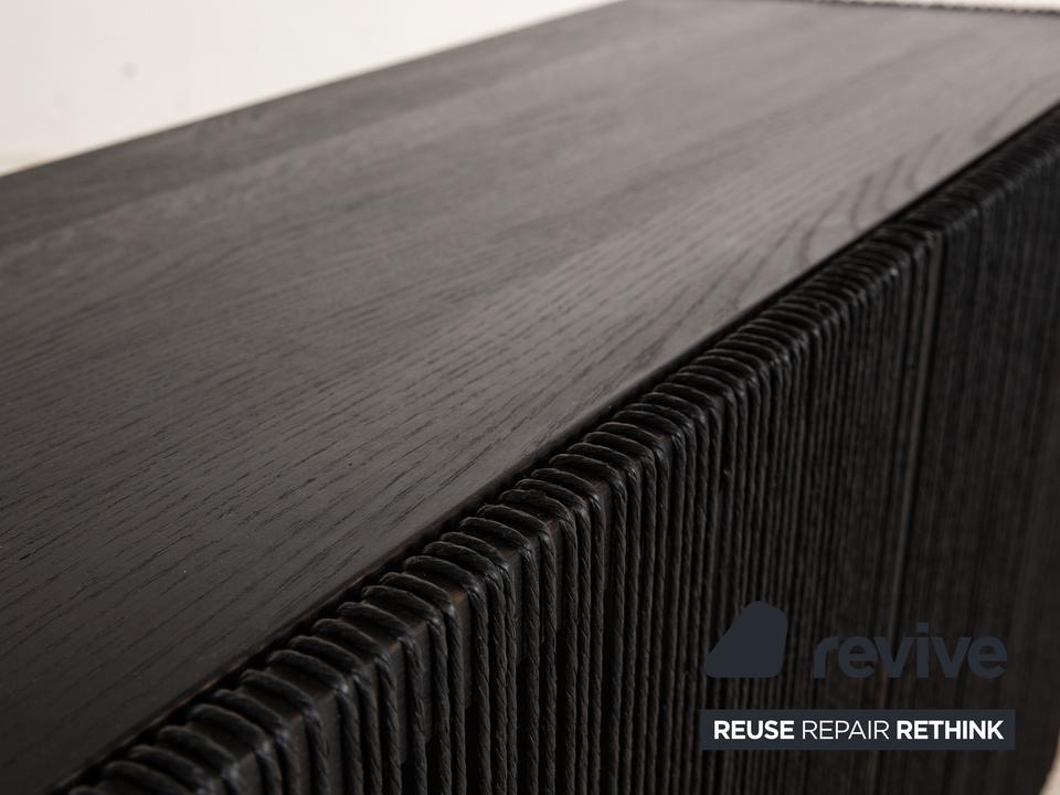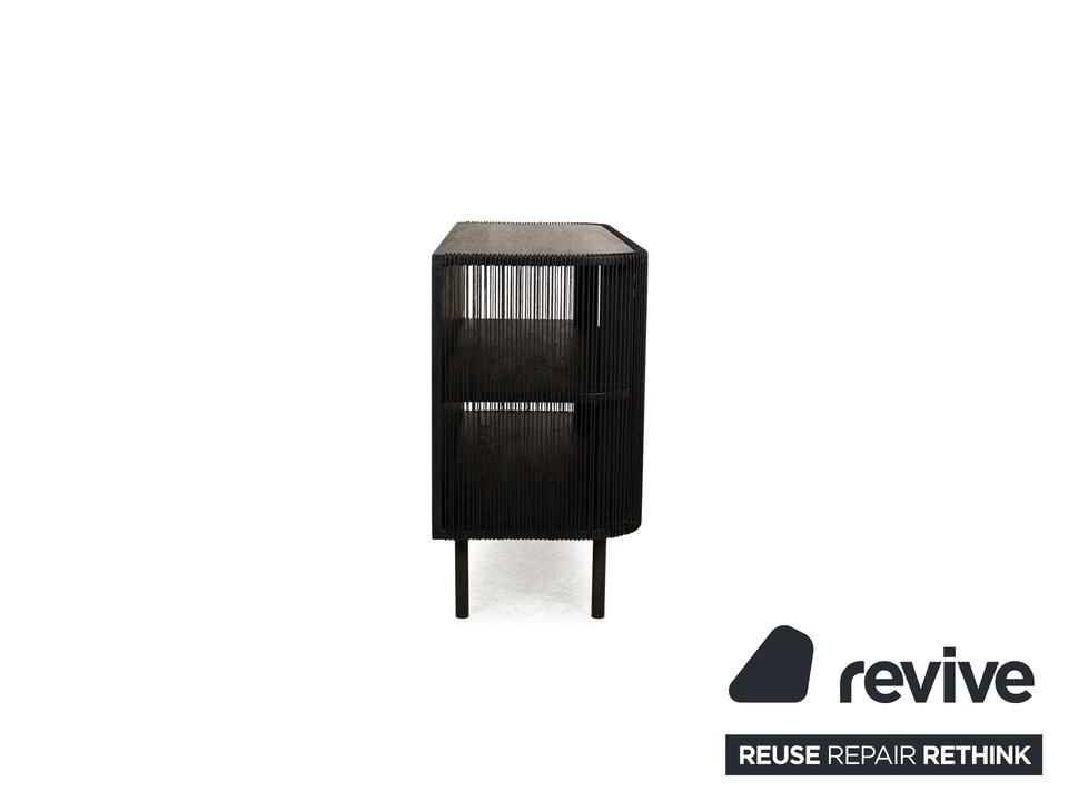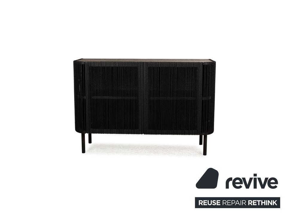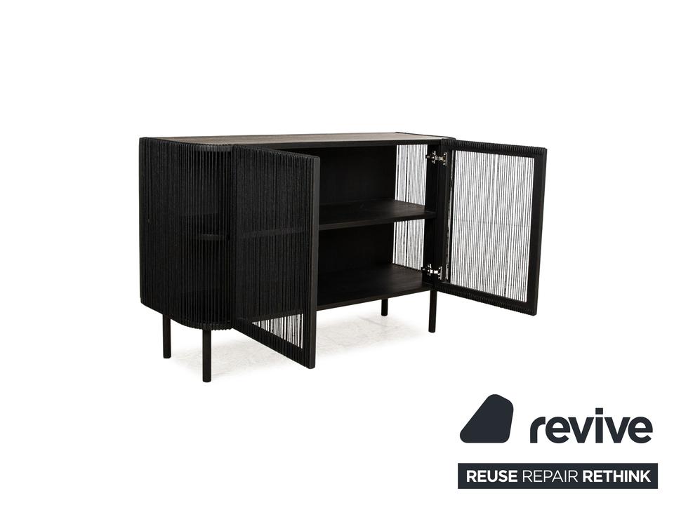 Das Sideboard Cord von Bolia besteht aus schwarzem Holz und steht auf schmalen Füßen. Es zeichnet sich durch das moderne Design und die stilvolle Optik aus.