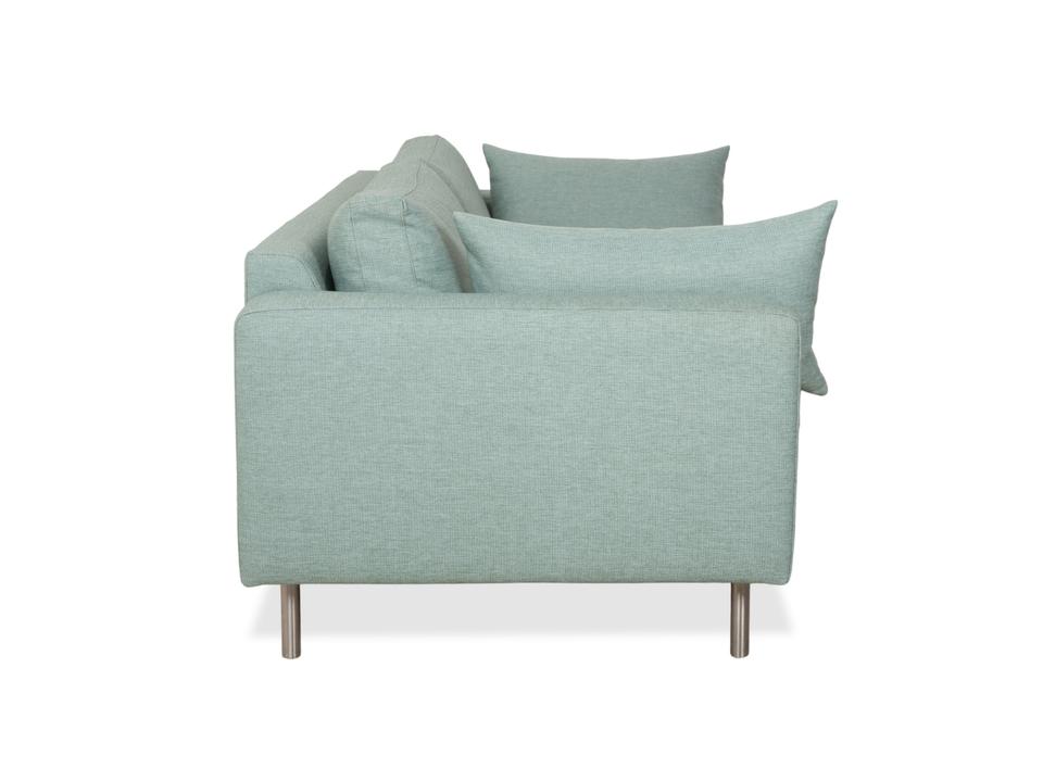 Dieses elegante Bolia Scandinavia Sofa in einem soften Grün-Blau-Ton verbindet skandinavisches Design mit hohem Komfort. Die klaren Linien, der hochwertige Stoffbezug und die filigranen Metallfüße verleihen dem Dreisitzer eine moderne, zeitlose Ausstrahlung. Die weichen Rückenkissen und die angenehm gepolsterten Sitzflächen sorgen für ein entspanntes Sitzerlebnis – perfekt für Wohnzimmer, Lounge-Bereiche oder moderne Apartments.