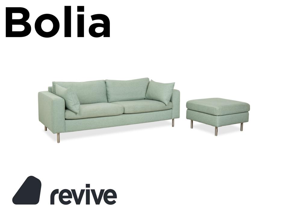 Revive GmbH | Gebrauchte Designermöbel • Aufbereitet • Nachhaltig • Sofort Verfügbar Das Bolia Scandinavia Set, bestehend aus einem Dreisitzer Sofa und dem passenden Hocker, ist in einem eleganten grün-blauen Stoffbezug gehalten und bilden ein ha…