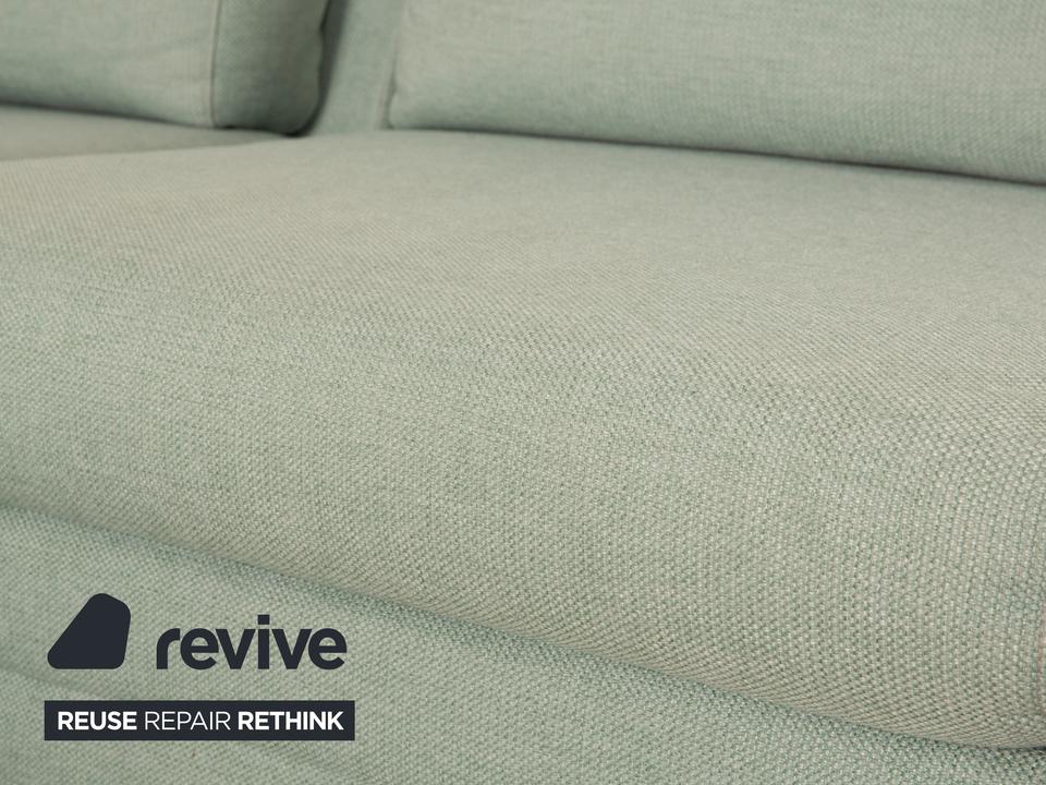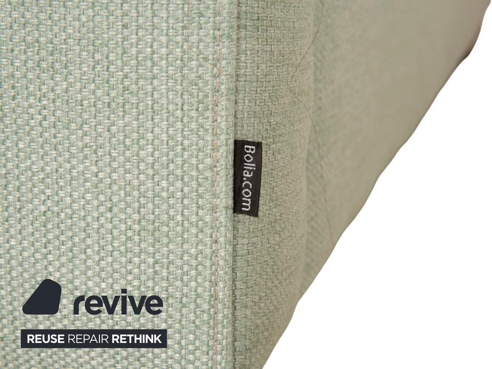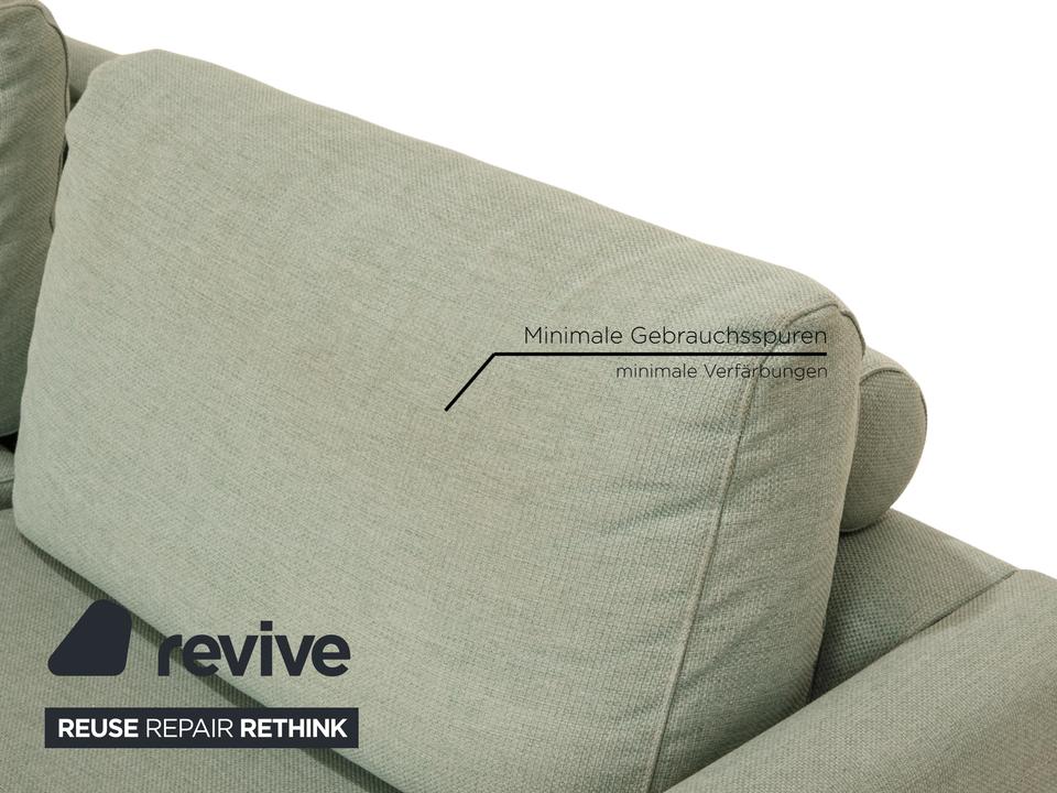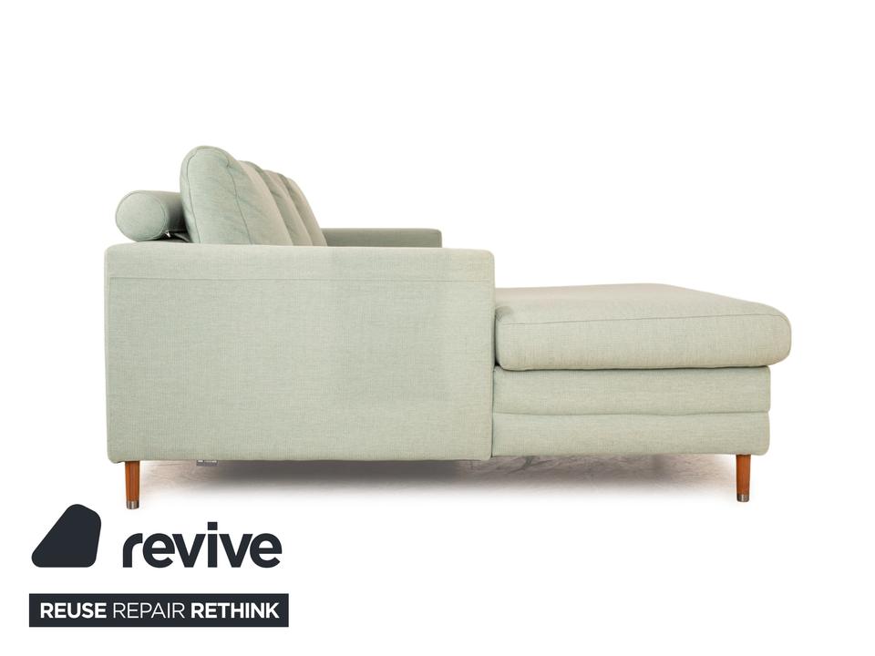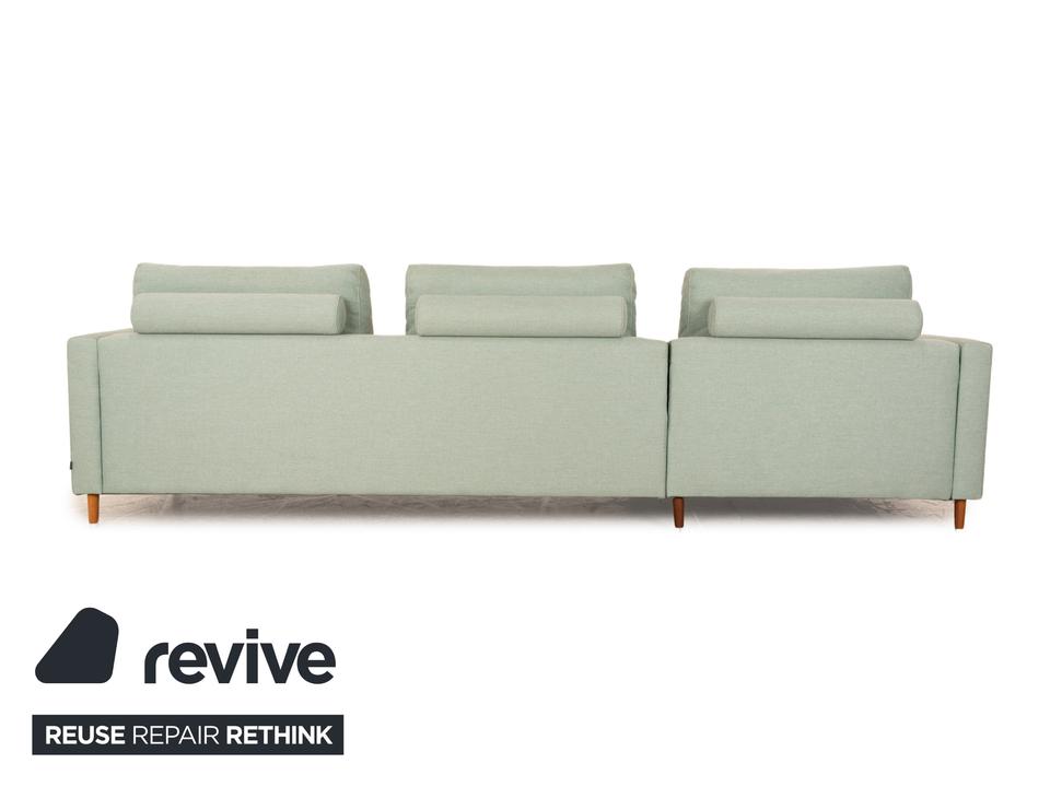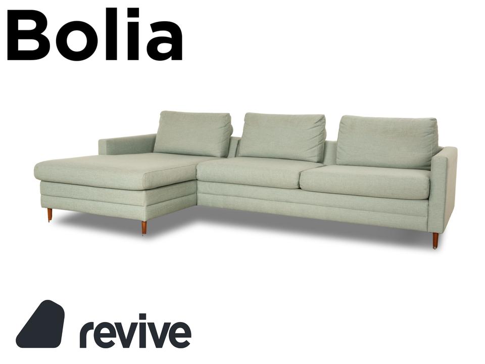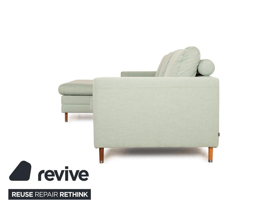 Das Ecksofa Scandinavia von Bolia ist mit einem grünen Stoff bezogen und steht auf Metallfüßen. Es zeichnet sich durch das schlichte, zeitlose Design und die moderne Optik aus.