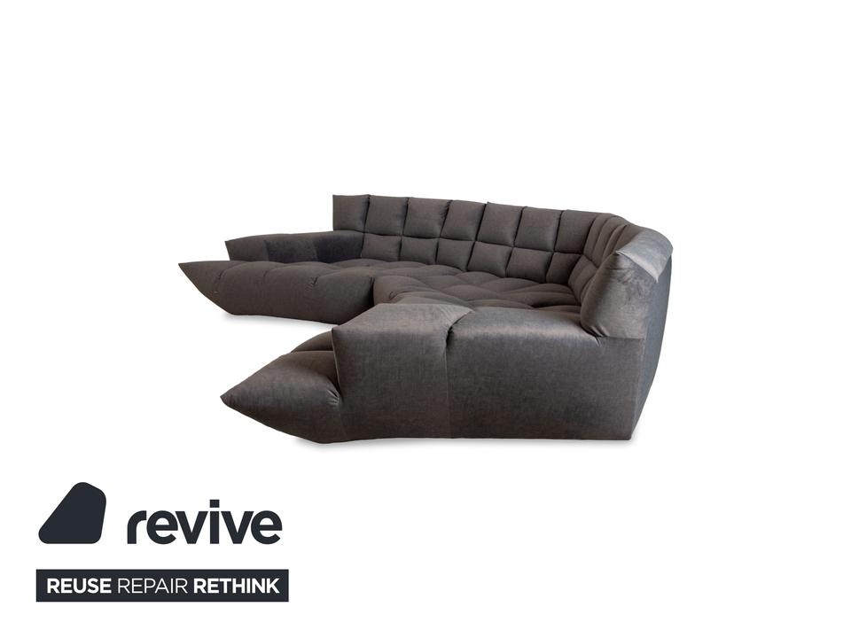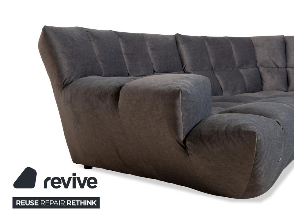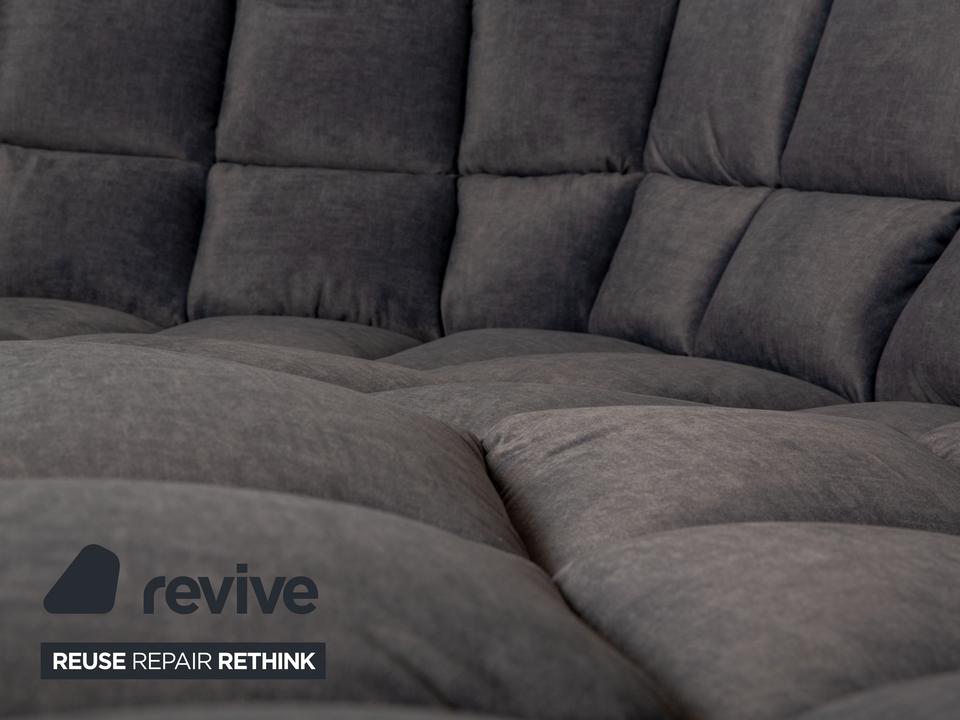 Das Ecksofa Cloud 7 von Bretz ist mit einem grauen Stoff neu bezogen worden und ist bodentief. Es zeichnet sich durch die gesteppten Polster und das massive, moderne Design aus.