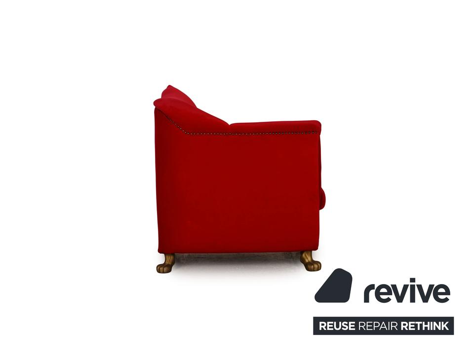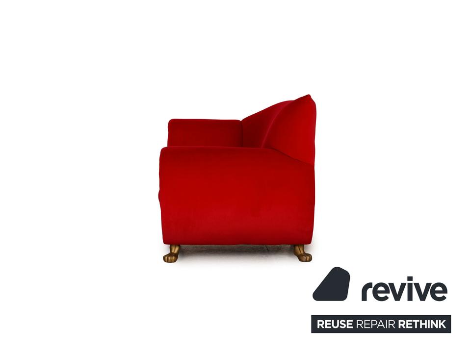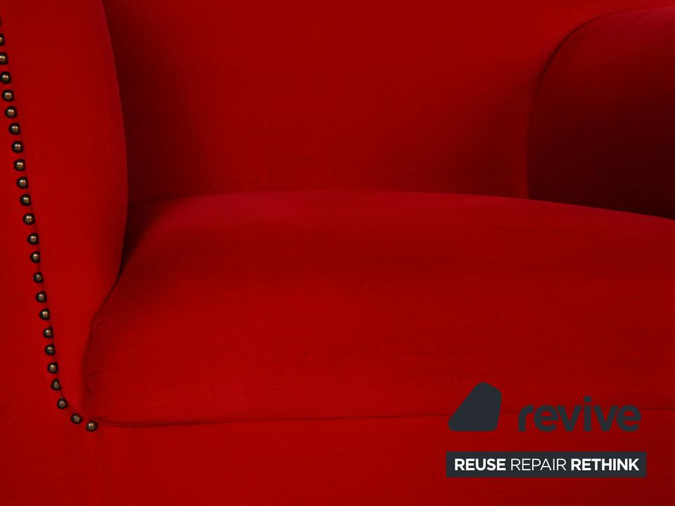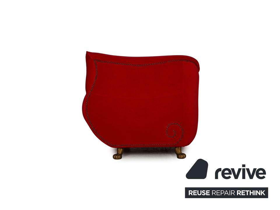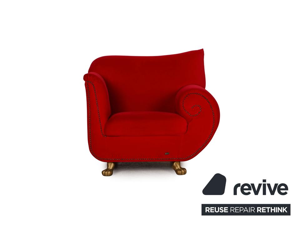 Der Sessel Gaudi von Bretz ist mit einem roten Samtstoff bezogen und steht auf bronzefarbenen Füßen. Er zeichnet sich durch das extravagante Design und die gedrehten, geschwungenen Lehnen aus.