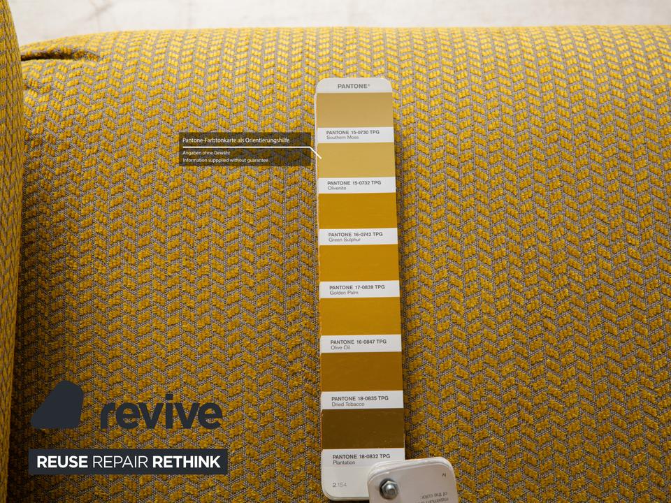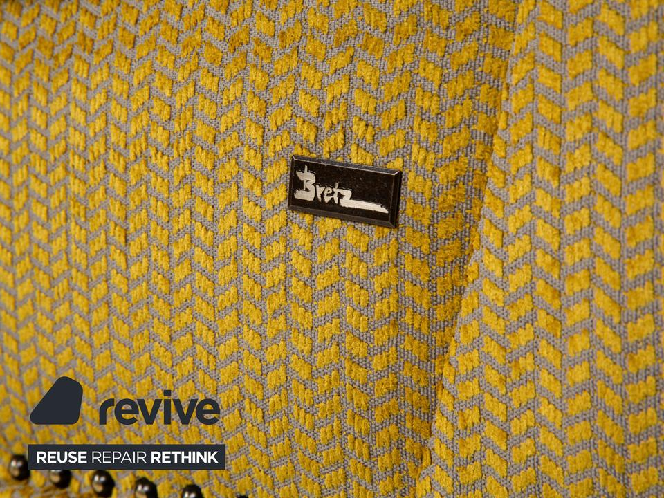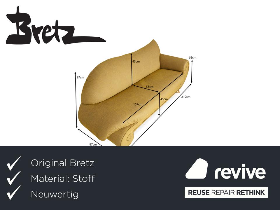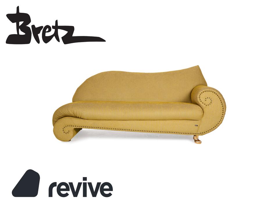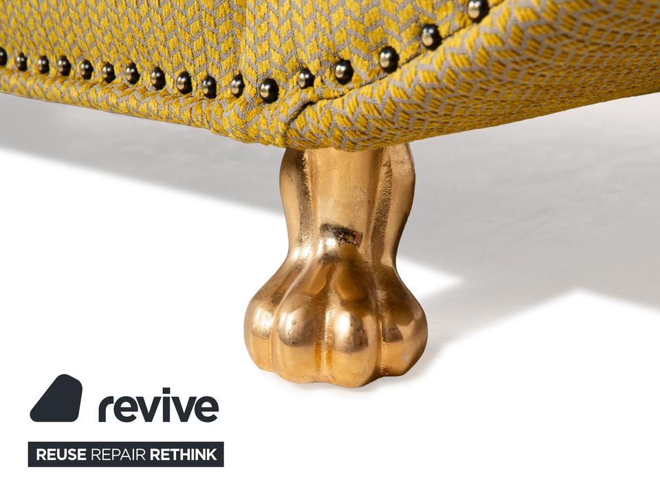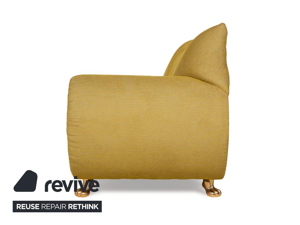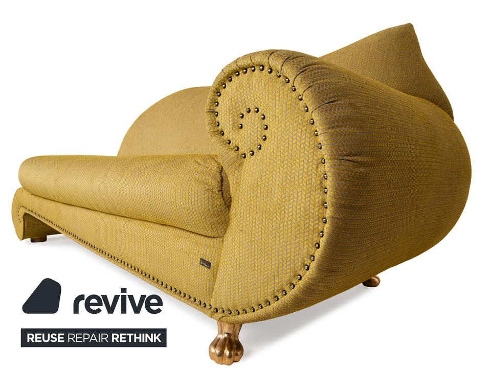 Mit dem Gaudi Sofa von Bretz, mit hochwertigem Stoff (CALIMERA FR 850 von Höpke) in gelb-grünem Muster neu bezogen worden, zeigst du Charakter. Kurven und Extravaganz sorgen für einen Hingucker in jedem Raum und die weiche Polsterung lädt zum Entspannen ein. Der Dreisitzer steht auf einem golden lackierten Fuß im Form einer Löwentatze und ist ein echtes Highlight im modernen Wohnzimmer. Bezugsmaterial: SynthetikfaserBreite in cm: 142,Gewicht: 570 g/lfm,Scheuertouren: 48.000,Lichtechtheit: 5Reibechtheit: nass 4–5, trocken 4–5