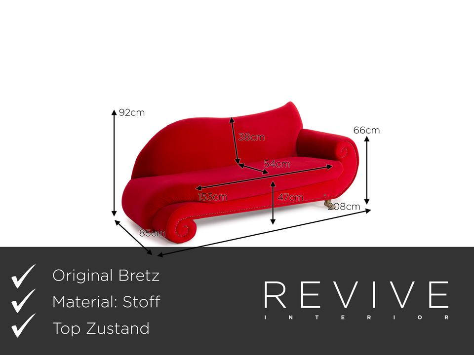 Bretz Gaudi Samt Stoff Sofa Rot Dreisitzer Couch ✨
