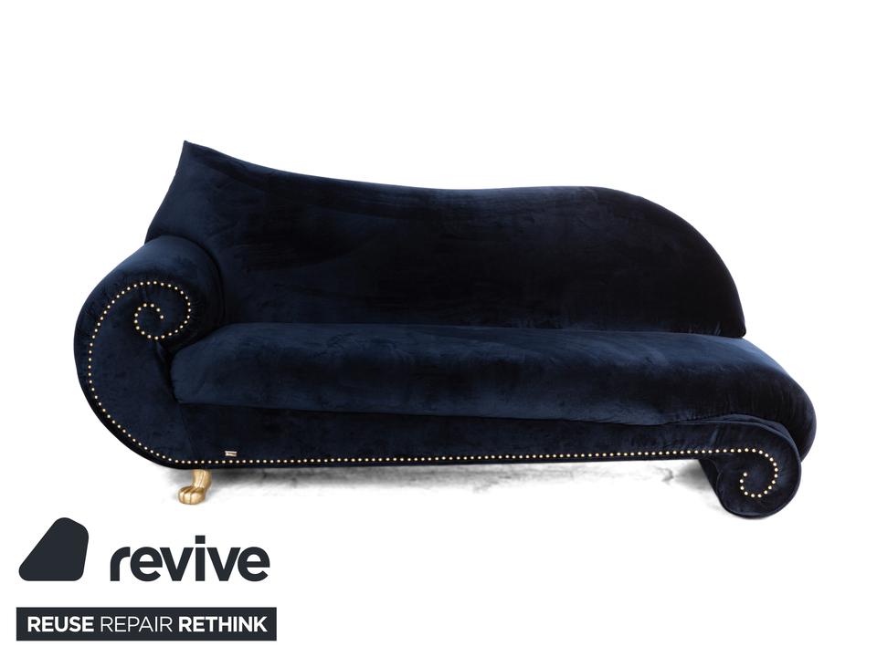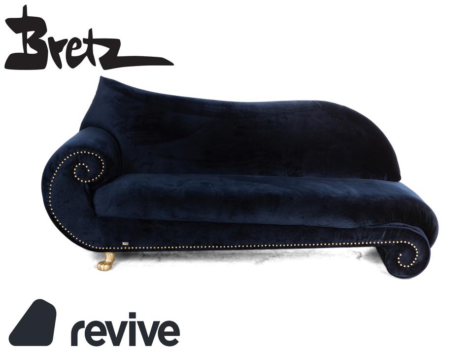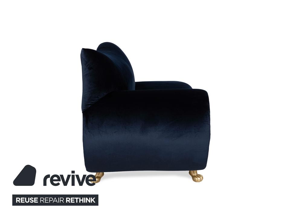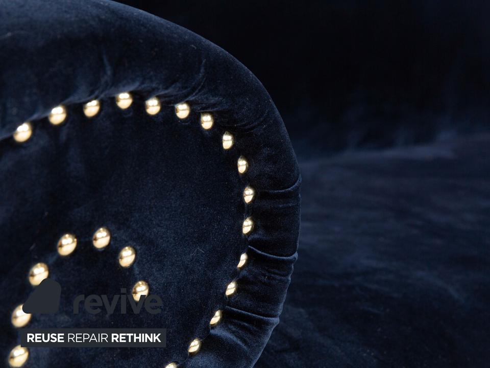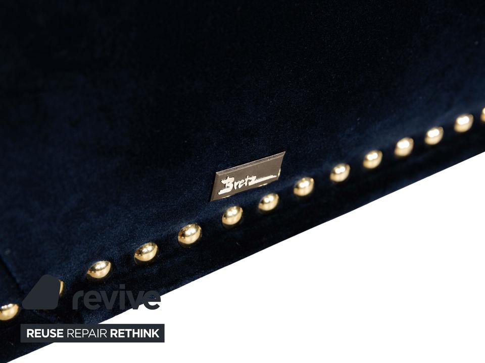Das Bretz Gaudi Dreisitzer Sofa wirkt edel, was vor allem durch den tiefen Blauton und die goldenen Akzente, geprägt wird. Der hochwertige Stoff sorgt für eine entspannte Optik und maximalen Komfort. Ein perfektes Sofa für ein edles Zimmer.