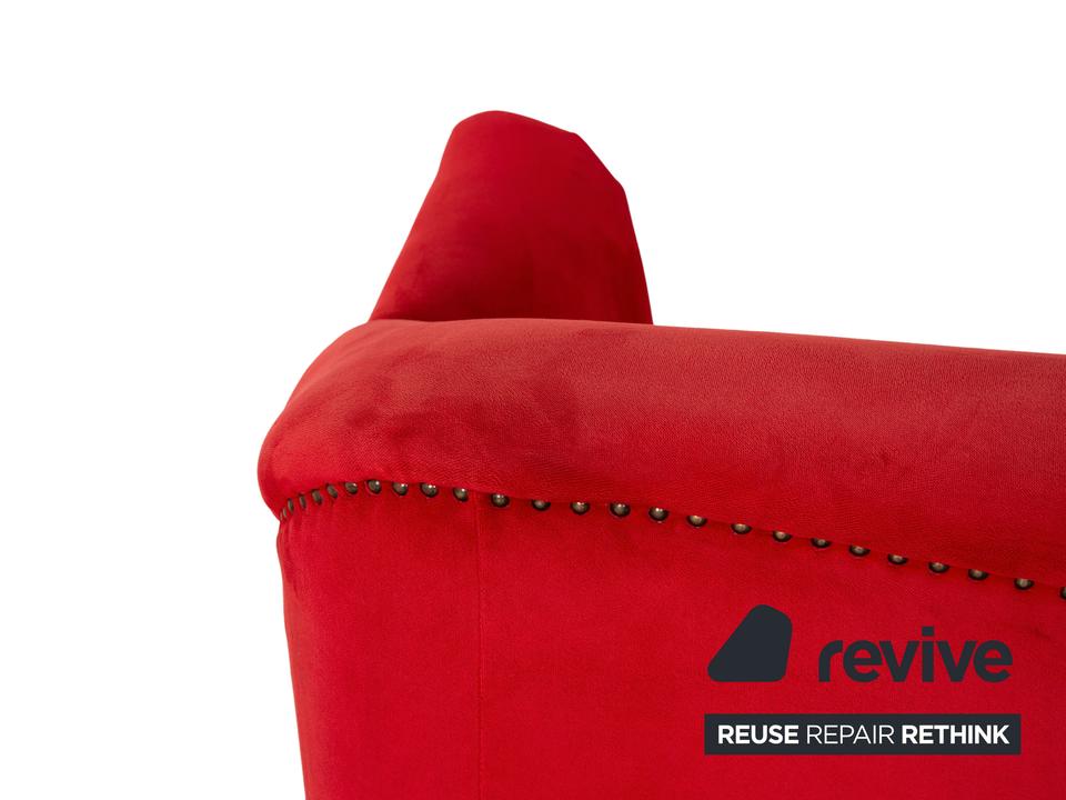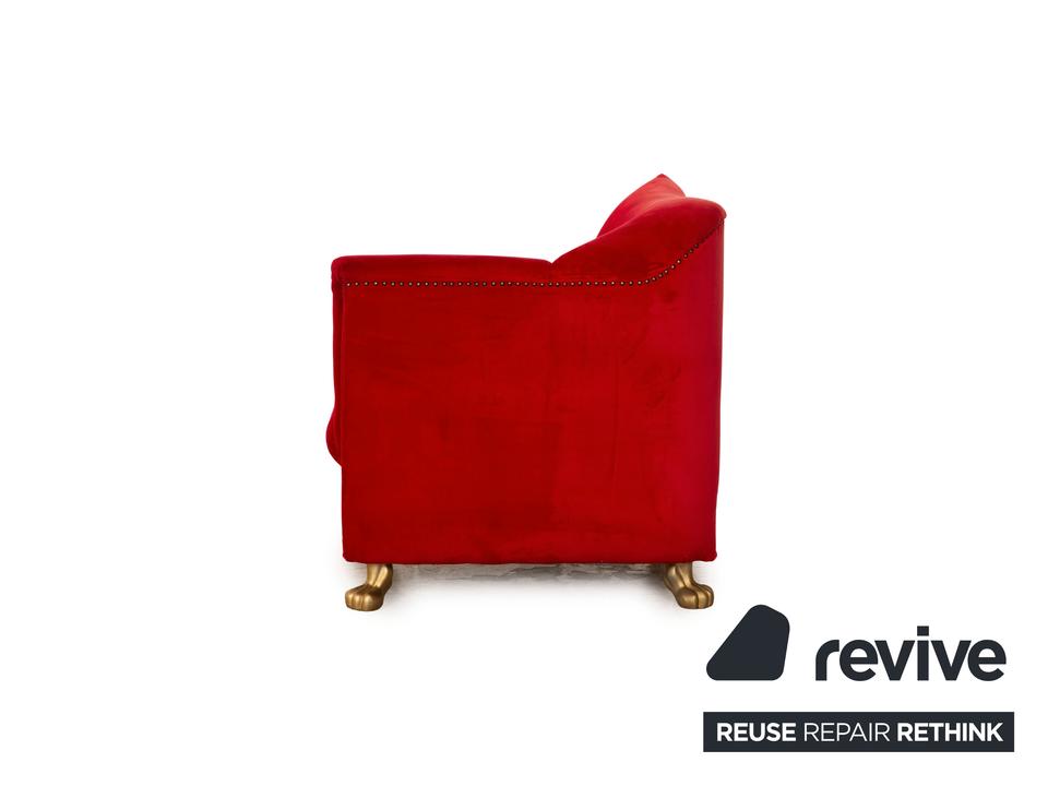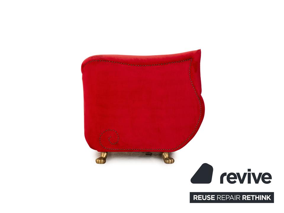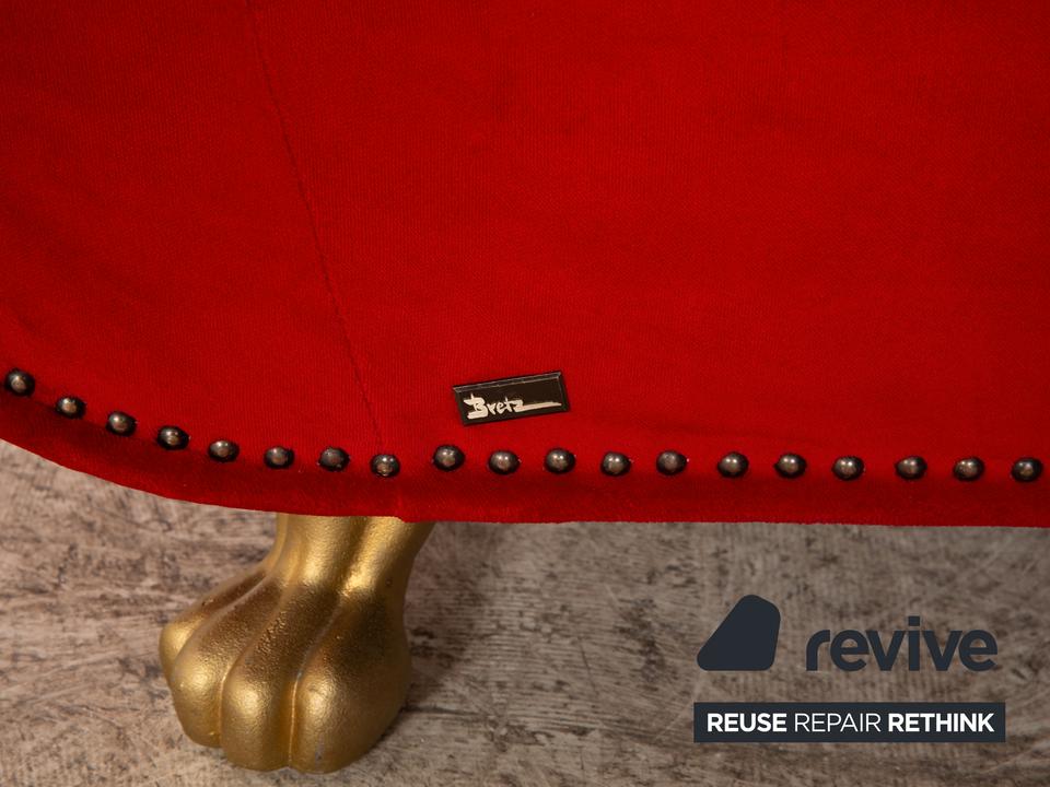 Der Gaudi Sessel von Bretz ist mit einem roten Stoff bezogen und steht auf goldenen Füßen. Der angesagte Retrolook und die abgerundeten Kanten zeichnen ihn aus.