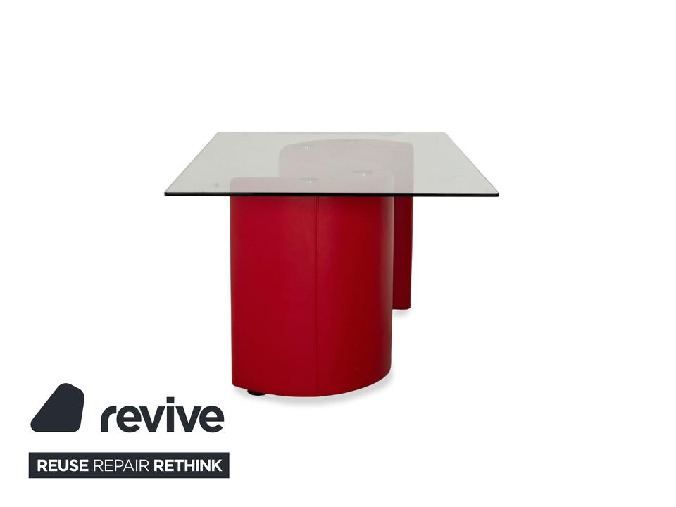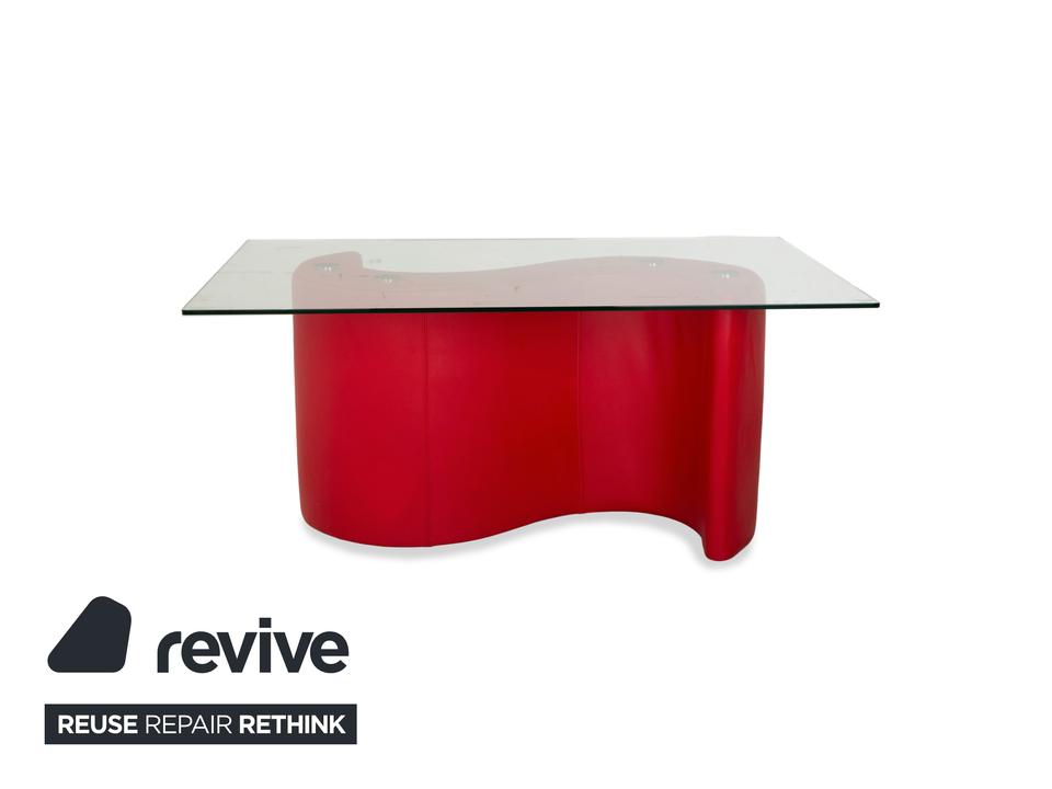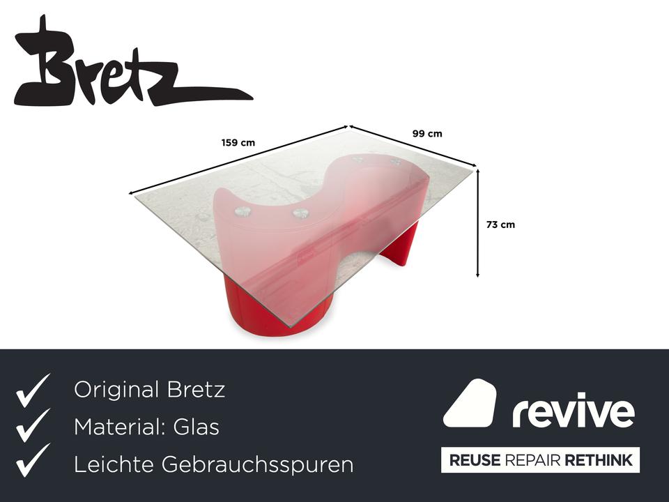Der Bretz Esstisch erscheint als einzigartiger Tisch – geprägt vom roten, geschwungenen Fuß und einer stabilen Glasplatte. Er bietet ausreichend Platz, perfekt für ein entspanntes Essen mit den Liebsten.