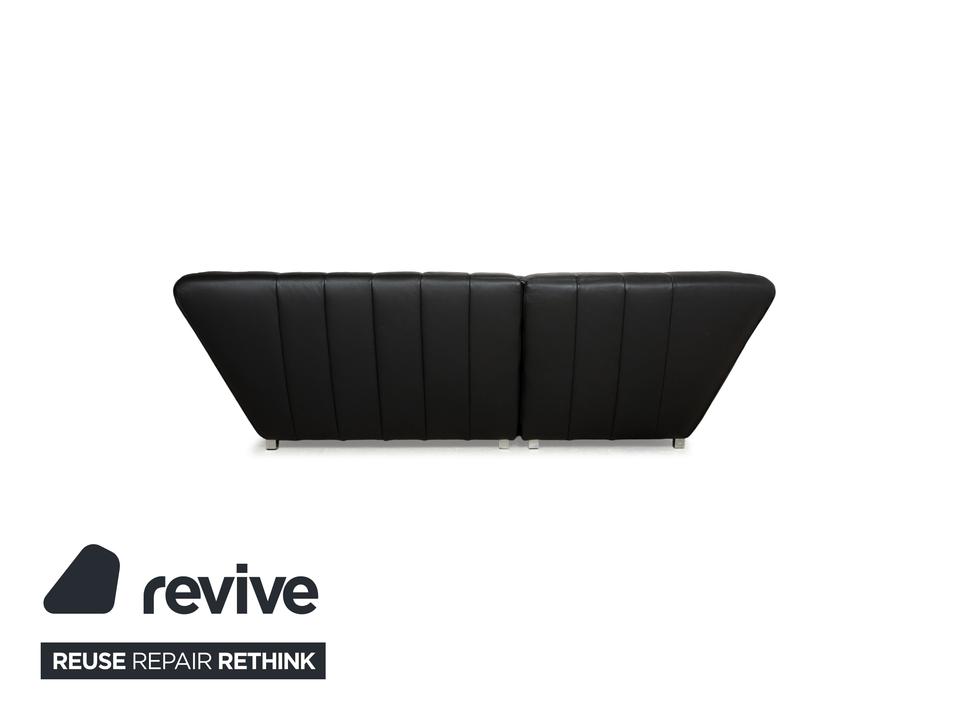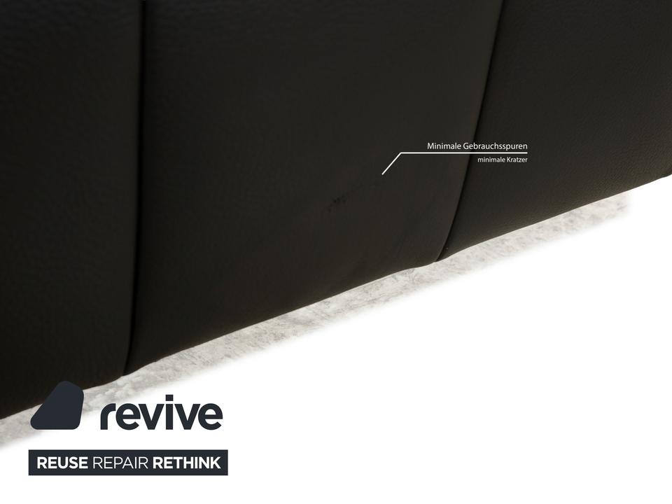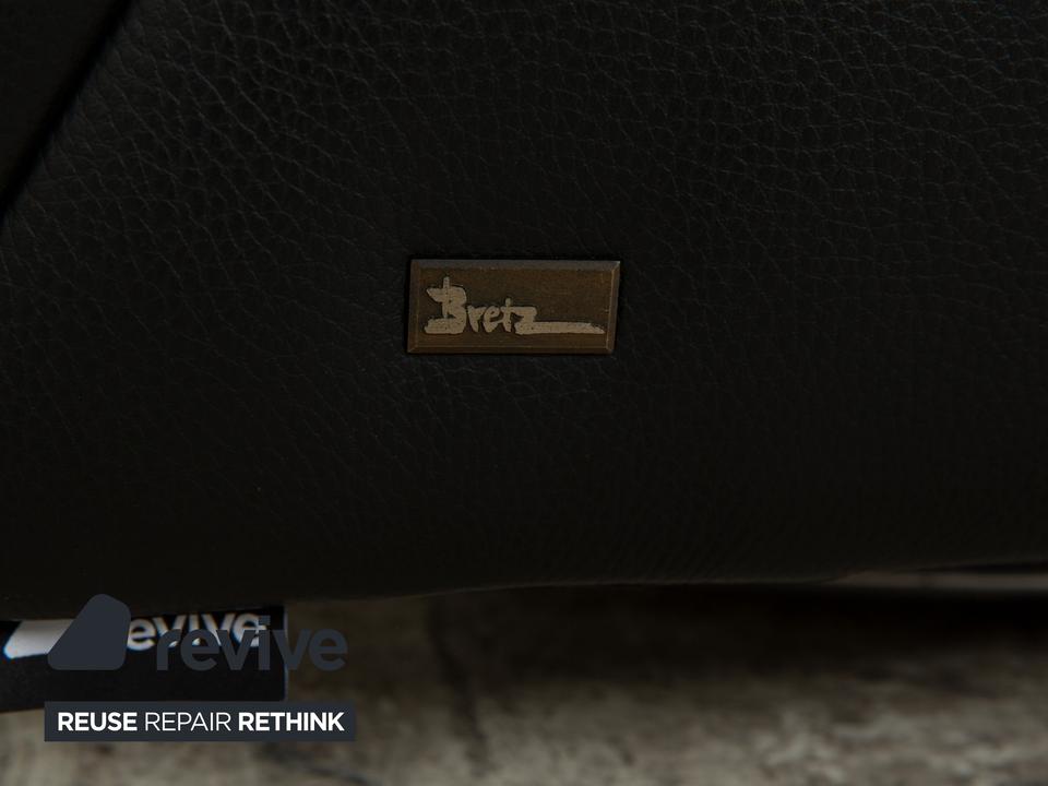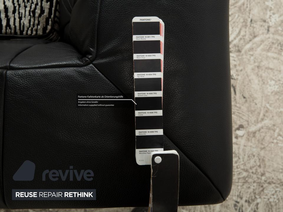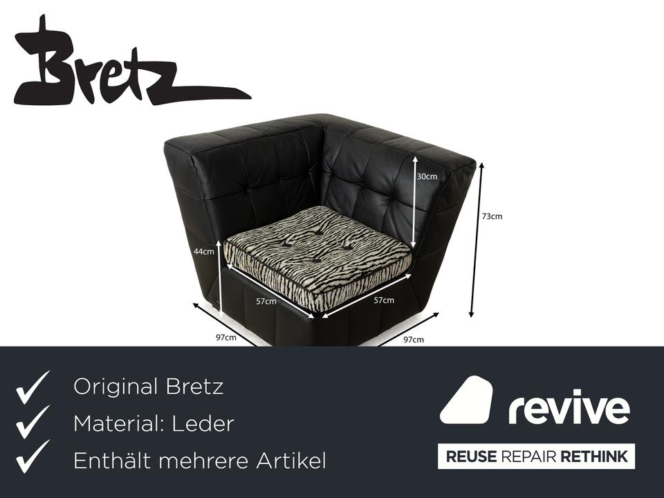 Die Sofa-Garnitur Tiziana von Bretz, bestehend aus einem Ecksofa und dem dazu passenden Sessel mit Drehfunktion, ist mit schwarzem Leder bezogen und steht auf schmalen Metallfüßen. Sie zeichnet sich durch ihr unkonventionelles, ausladendes Design aus. Die mit schwarz-weißem Stoff in Zebramuster bezogenen Sitzpolster bilden einen spannenden Kontrast zur gesteppten Bezugsfläche des Korpus. Mit diesem Set kommt ein echter Hingucker ins moderne Wohnzimmer!