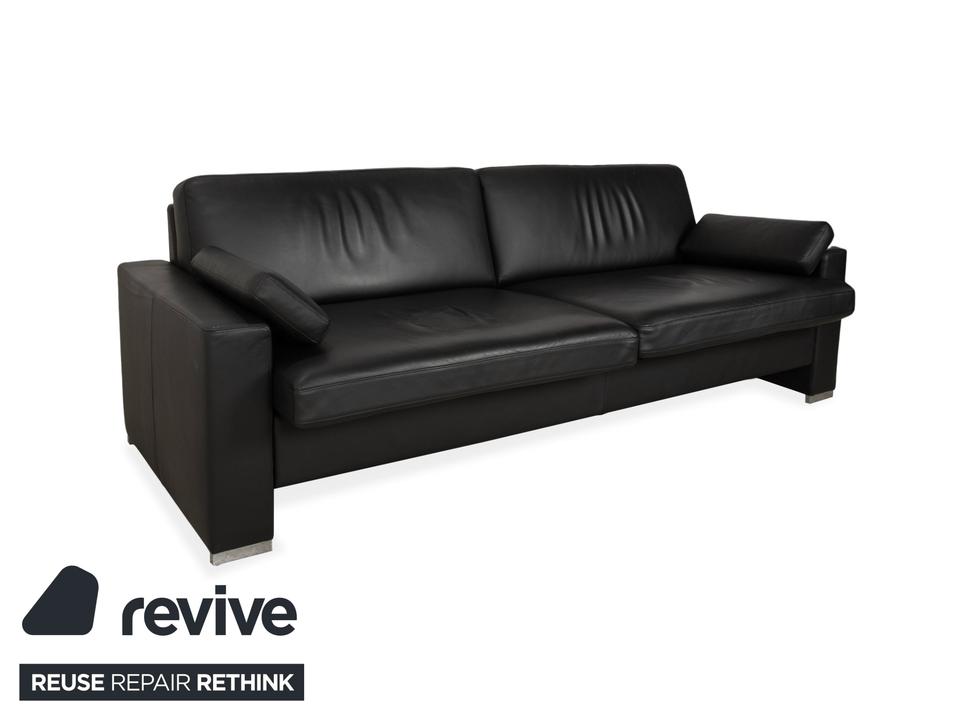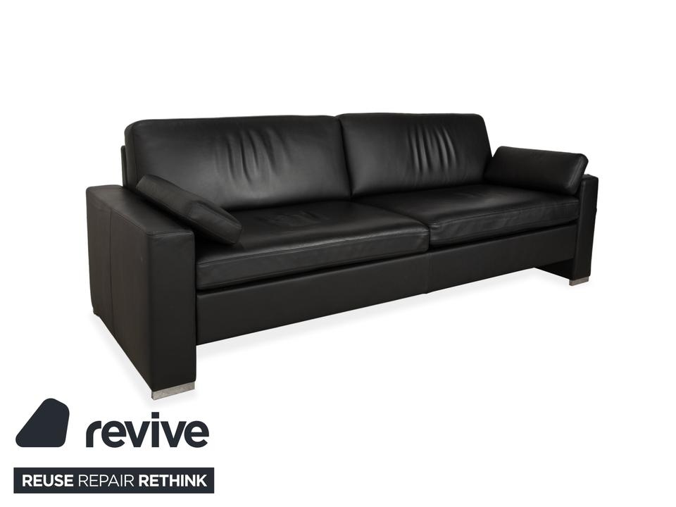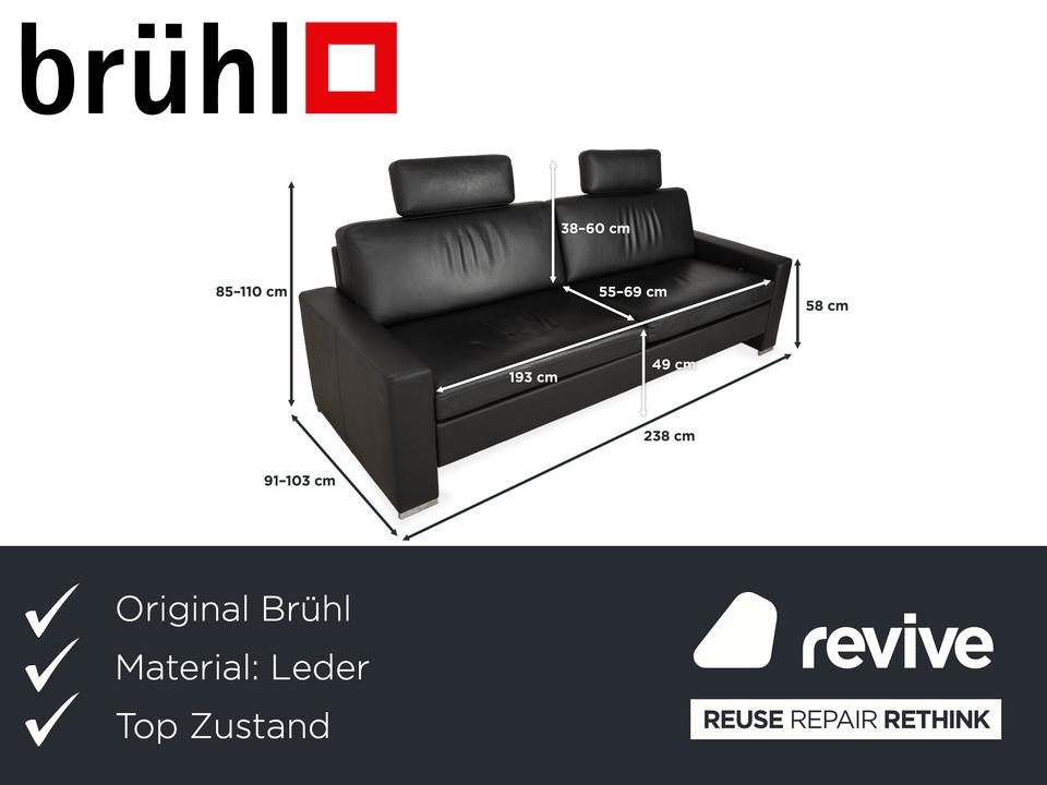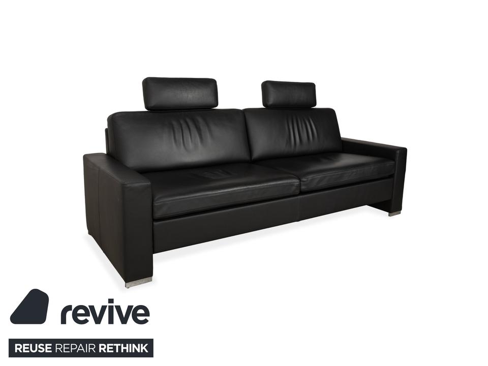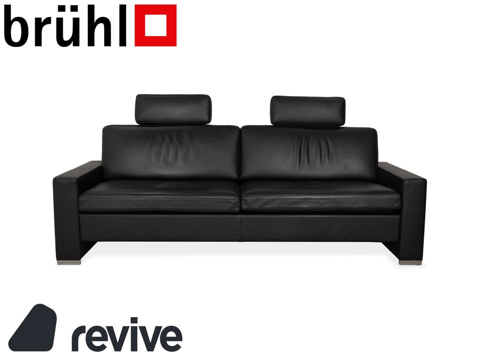 Brühl Alba Leder Dreisitzer Schwarz manuelle Funktion Sofa Couch