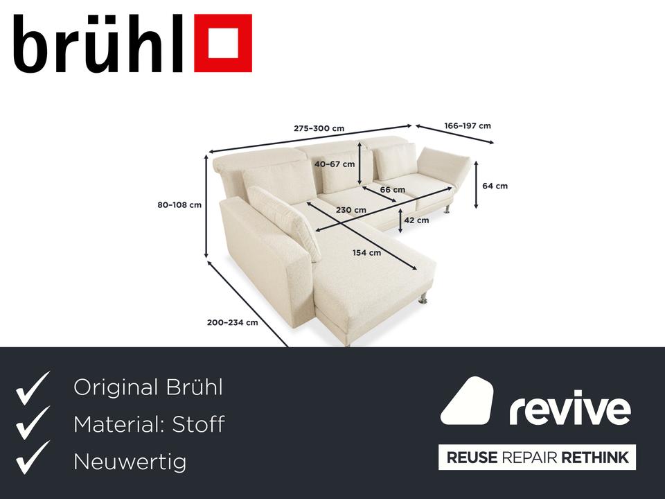 Brühl Moule Stoff Ecksofa Weiß Creme manuelle Funktion Recamiere