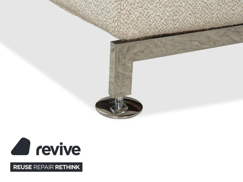 Das Brühl Moule Ecksofa überzeugt durch modernes Design, flexible Funktionalität und höchsten Komfort. Es wurde mit einem weißen Stoff neu bezogen und präsentiert sich in einem frischen, eleganten Look. Die linksseitige Recamiere lädt zum Entspannen ein und bietet gemeinsam mit den verstellbaren Rücken-, Arm- und Fußlehnen vielfältige Möglichkeiten zum Sitzen und Liegen. Die hochwertige Polsterung auf einem stabilen Metallgestell sorgt für optimalen Halt und langanhaltenden Komfort. Durch das Absenken der Rückenlehnen lässt sich das Sofa im Handumdrehen in eine großzügige Liegefläche verwandeln. Verchromte Metallfüße verleihen dem Möbelstück einen modernen Akzent. Mit seiner klaren Formensprache und der anpassungsfähigen Gestaltung fügt sich das Brühl Moule Ecksofa harmonisch in verschiedenste Wohnräume und Einrichtungsstile ein.