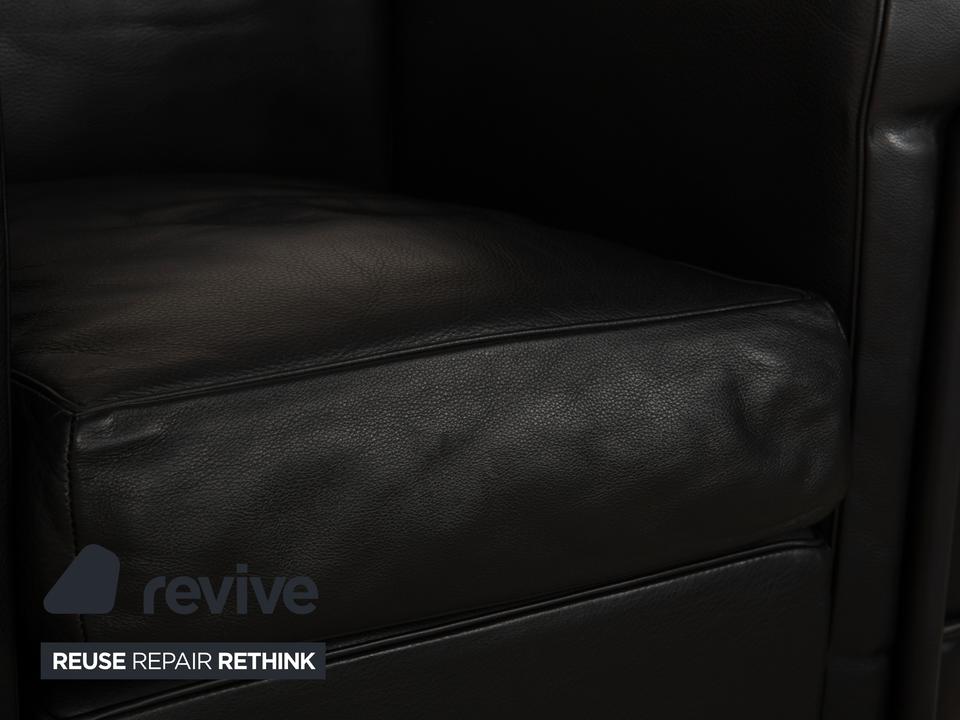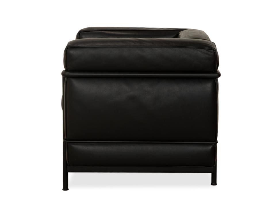 Mit dem LC2 holst du dir nicht irgendeinen Sessel, sondern den Designklassiker des 20. Jahrhunderts in dein Zuhause. Entworfen von Le Corbusier, Pierre Jeanneret und Charlotte Perriand, ist dieses Möbelstück (oft „Petit Confort“ genannt) eine absolute Ikone der Moderne.Das Besondere an diesem Exemplar ist die kompromisslose „All-Black“-Optik: Nicht nur das hochwertige Leder, sondern auch der markante Stahlrohrrahmen (der „Käfig“) sind hier in Schwarz gehalten. Das verleiht dem Sessel eine unglaublich coole, monolithische Präsenz und unterscheidet ihn von den bekannteren Modellen mit Chrom-Rahmen. Das Designprinzip ist genial: Das Gestell ist sichtbar nach außen gekehrt und hält die üppigen, losen Lederpolster zusammen. Trotz seiner strengen, kubischen Form bietet er einen festen, aber sehr bequemen Sitzkomfort. Ein zeitloses Statement-Piece für Minimalisten und Architektur-Fans.