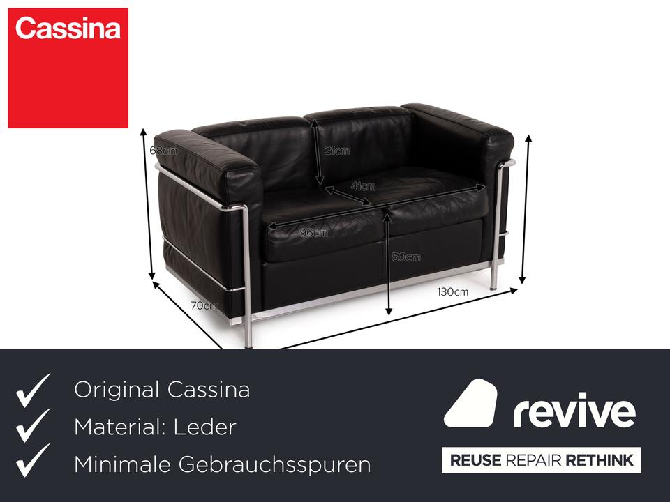 Der zeitlose Designklassiker LC 2 von Cassina wurde bereits 1928 entworfen. Das Sofa ist von einem glänzenden Stahlrohrgestell ummantelt und mit schwarzem Leder bezogen. Das gradlinige, rationale Design und die komfortreiche Polsterung zeichnen den LC 2 Sessel aus.
