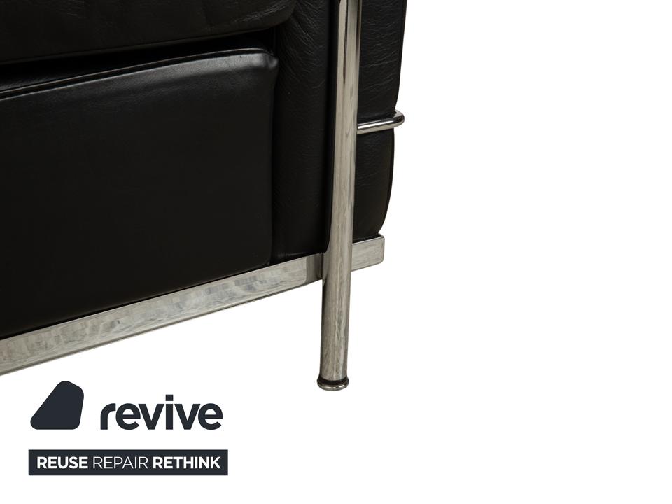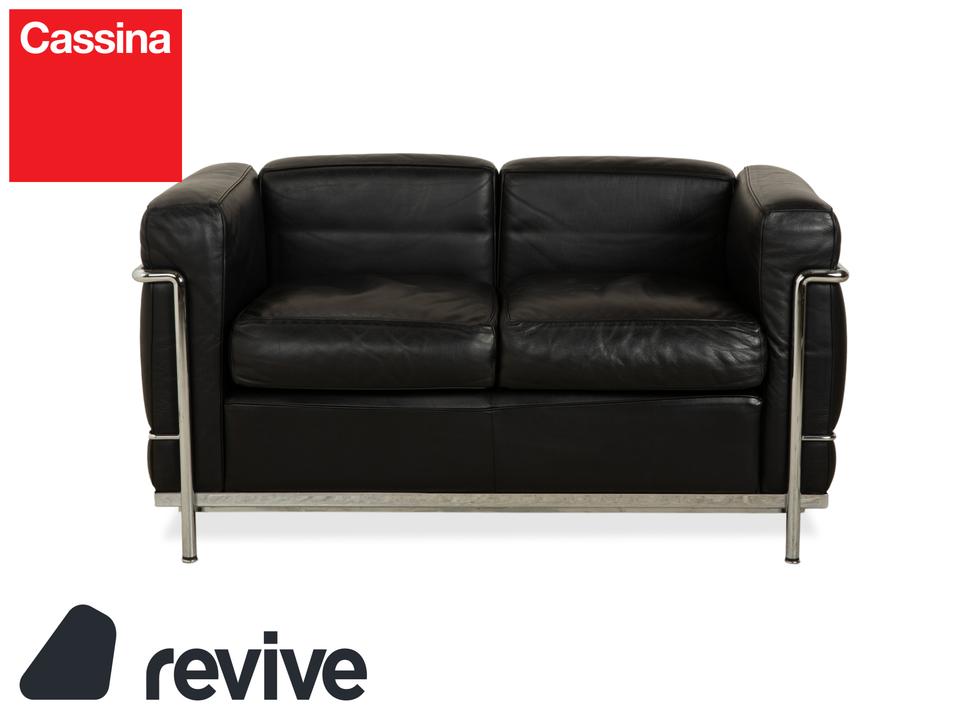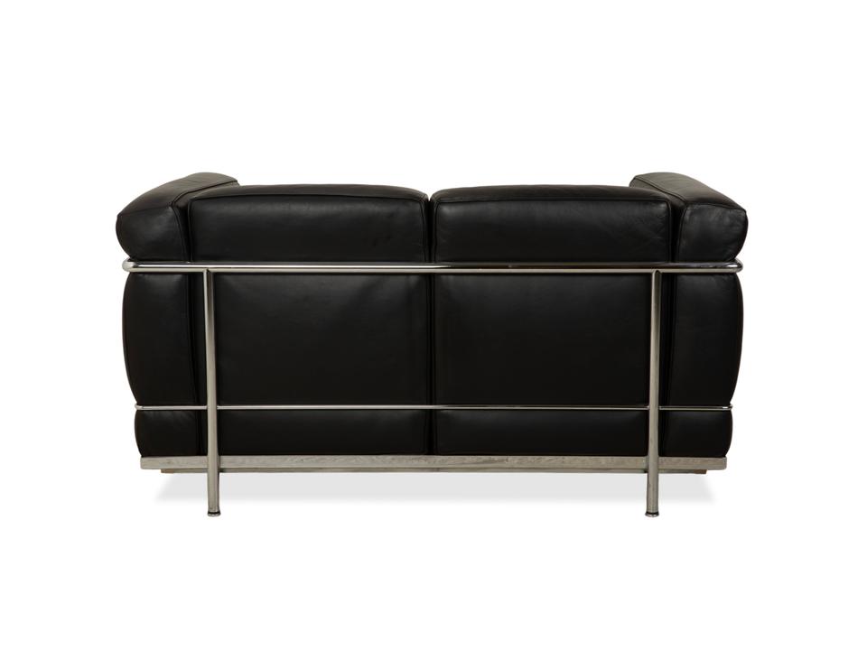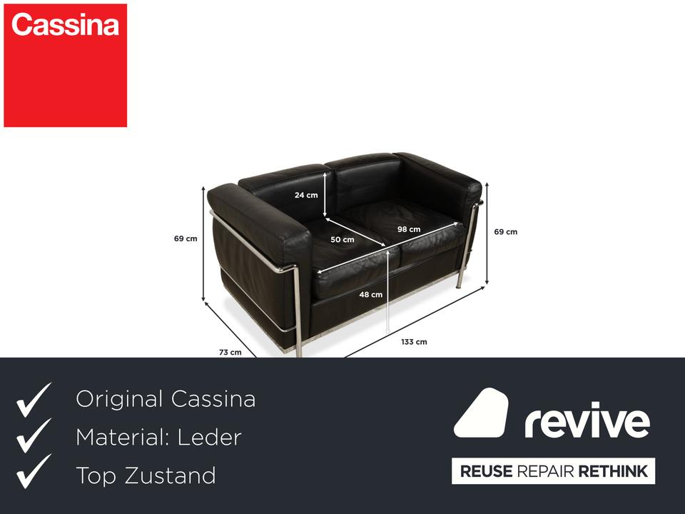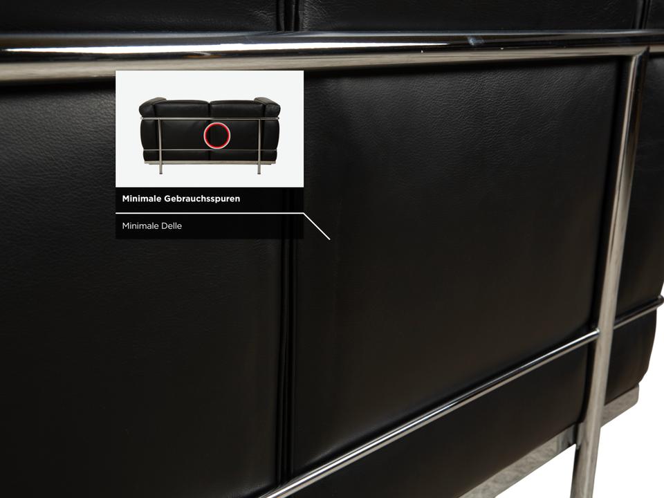 Mit dem Zweisitzer „LC2“ von Cassina holst du dir ein absolutes Stück Architekturgeschichte ins Haus. Der Entwurf von Le Corbusier, Pierre Jeanneret und Charlotte Perriand ist weltberühmt und besticht durch sein radikales Design: Das Gestell wird nicht versteckt, sondern bildet als glänzender Chromstahl-Käfig den sichtbaren Rahmen für die Möbel.In diesem Rahmen liegen die üppigen, schwarzen Lederpolster lose ein. Das sieht nicht nur fantastisch aus, sondern bietet auch den legendären „Grand Confort“ – eine tiefe, bequeme Sitzposition auf kompakter Fläche. Durch die kubische Form wirkt das Sofa sehr aufgeräumt und klar, während das hochwertige Leder für die nötige Eleganz sorgt. Ein zeitloses Meisterwerk, das in jedem Raum sofort als Design-Ikone erkennbar ist.