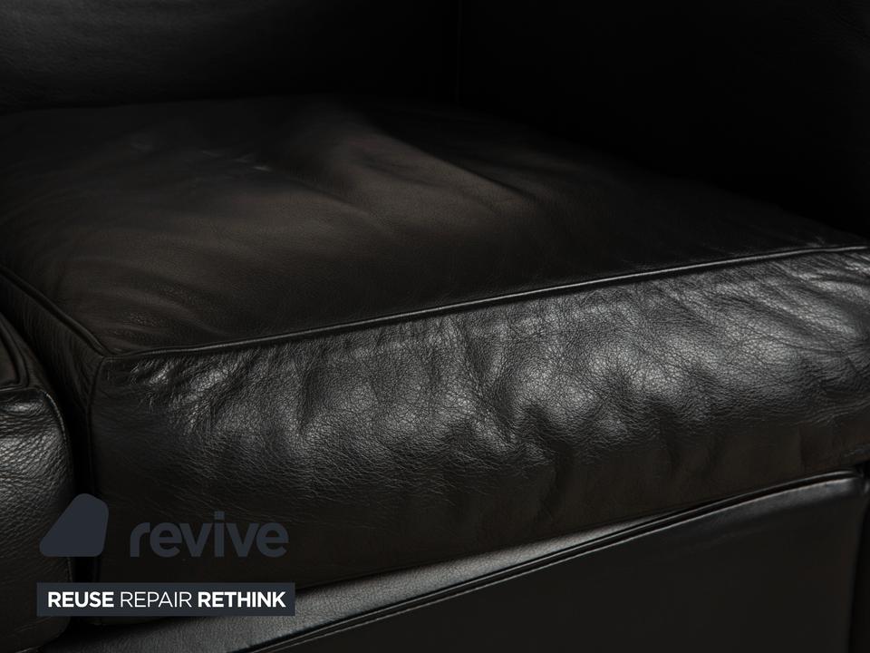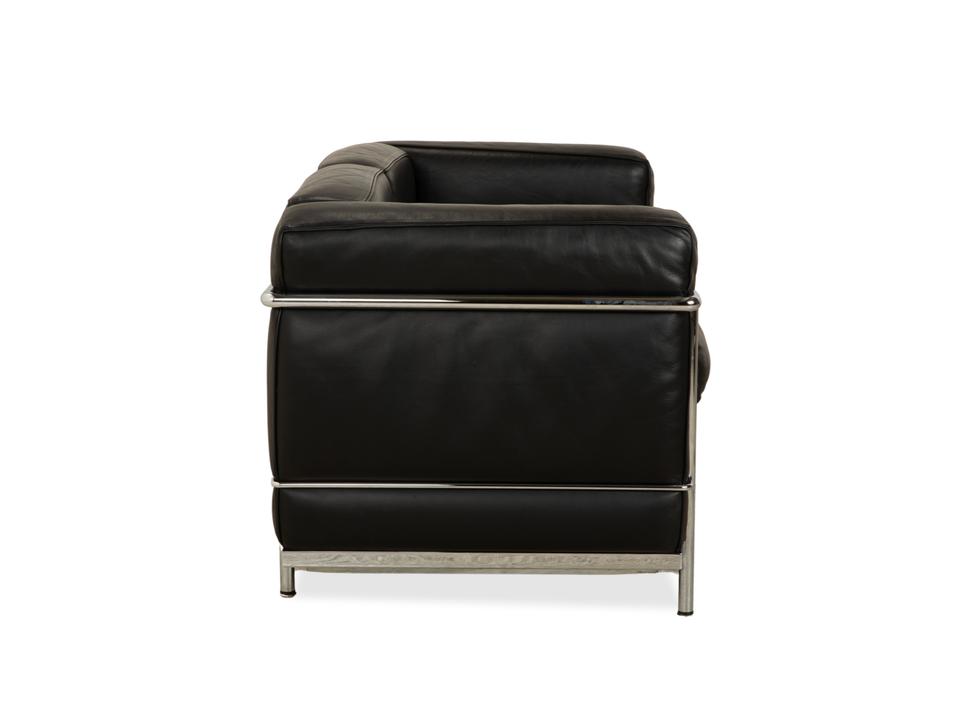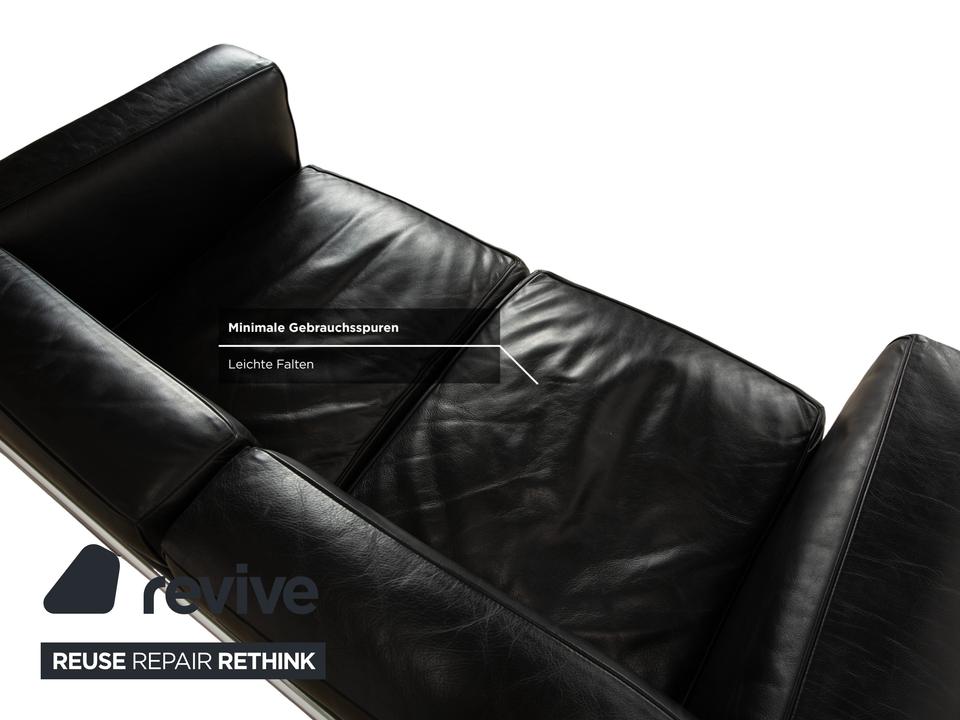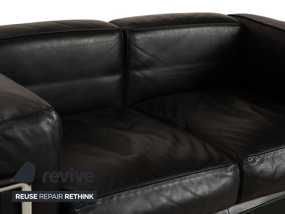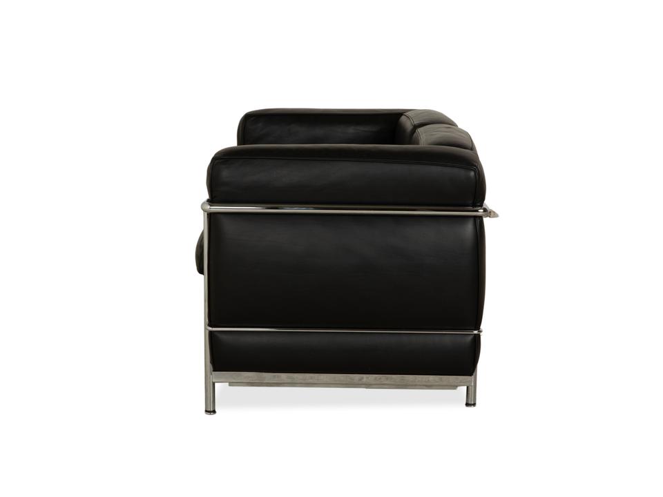 Mit dem Zweisitzer „LC2“ von Cassina holst du dir ein absolutes Stück Architekturgeschichte ins Haus. Der Entwurf von Le Corbusier, Pierre Jeanneret und Charlotte Perriand ist weltberühmt und besticht durch sein radikales Design: Das Gestell wird nicht versteckt, sondern bildet als glänzender Chromstahl-Käfig den sichtbaren Rahmen für die Möbel.In diesem Rahmen liegen die üppigen, schwarzen Lederpolster lose ein. Das sieht nicht nur fantastisch aus, sondern bietet auch den legendären „Grand Confort“ – eine tiefe, bequeme Sitzposition auf kompakter Fläche. Durch die kubische Form wirkt das Sofa sehr aufgeräumt und klar, während das hochwertige Leder für die nötige Eleganz sorgt. Ein zeitloses Meisterwerk, das in jedem Raum sofort als Design-Ikone erkennbar ist.
